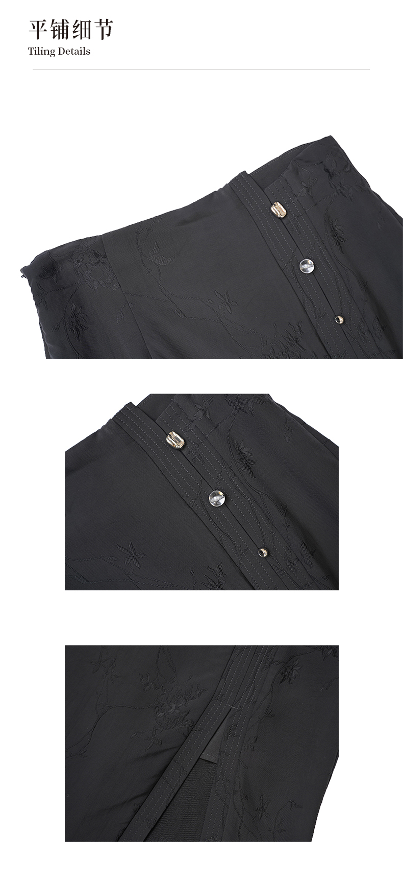 oldcolour黑色高腰半身裙春季新款松紧A字显瘦中长裙女GP11063614