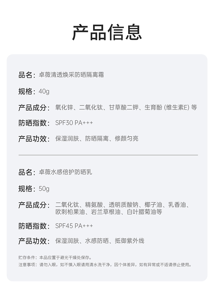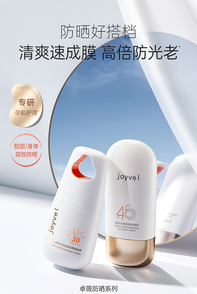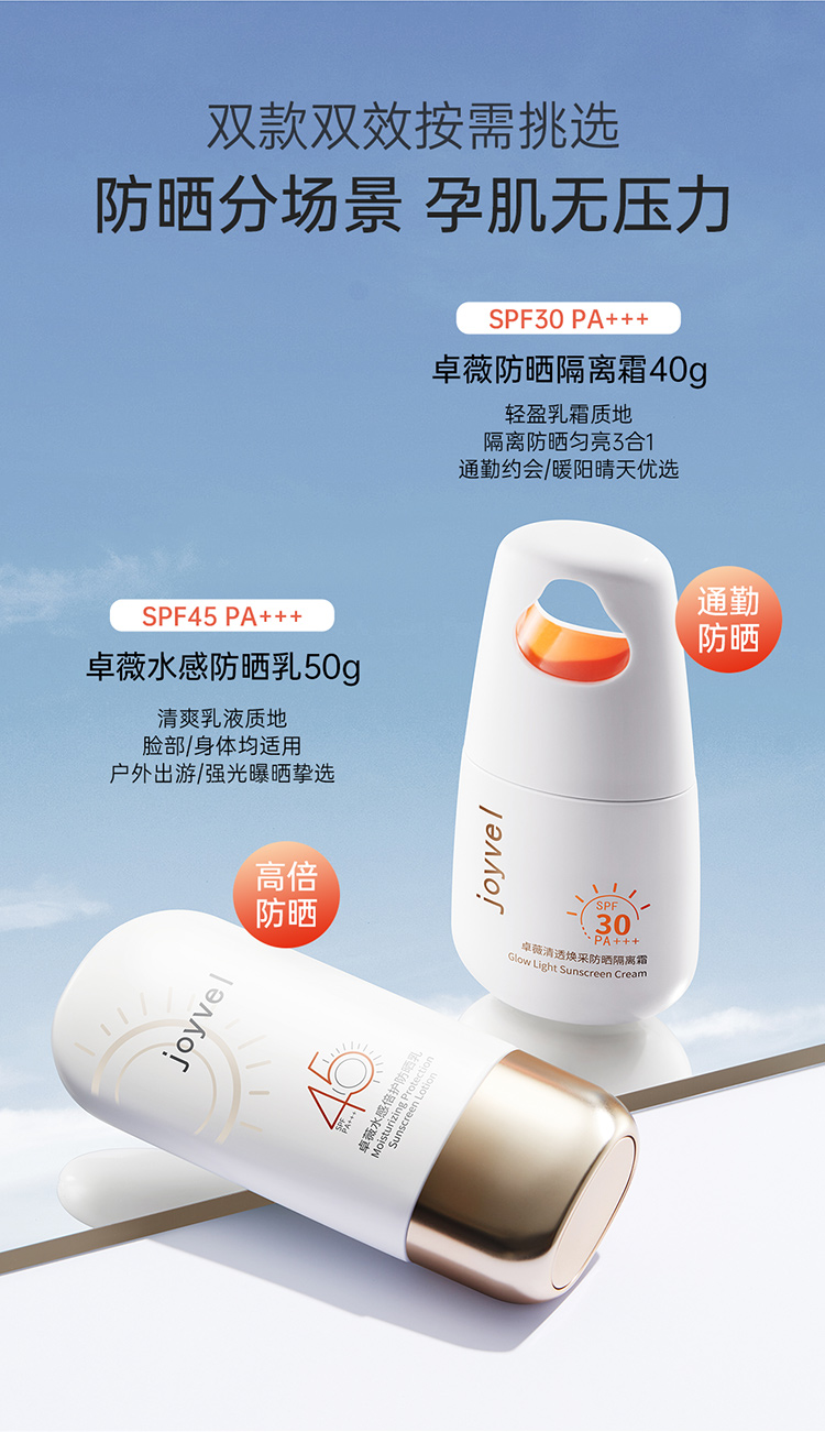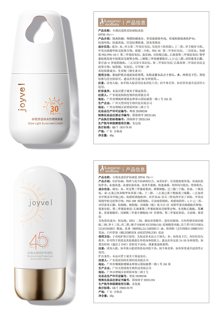 袋鼠妈妈 卓薇清透焕采防晒隔离霜40g+卓薇水感倍护防晒乳50g 全身防护 抵抗日晒