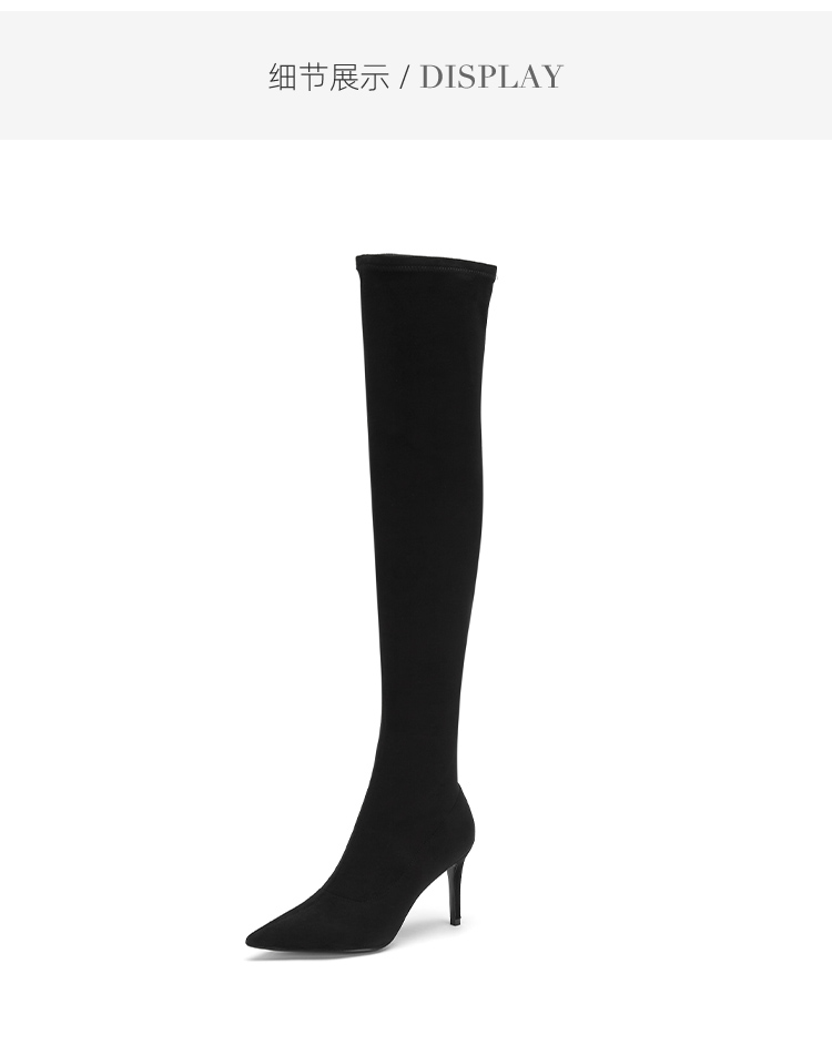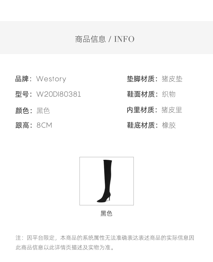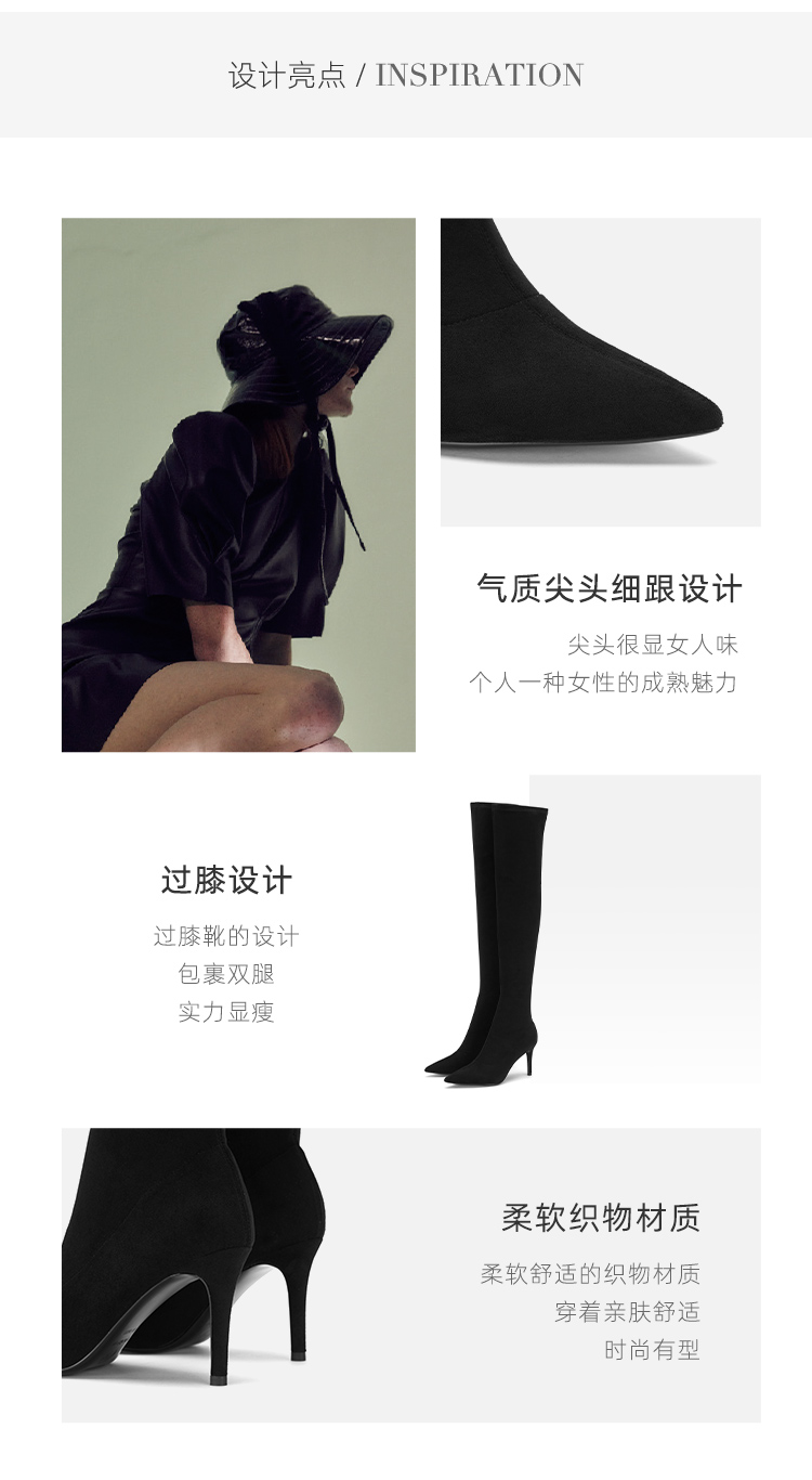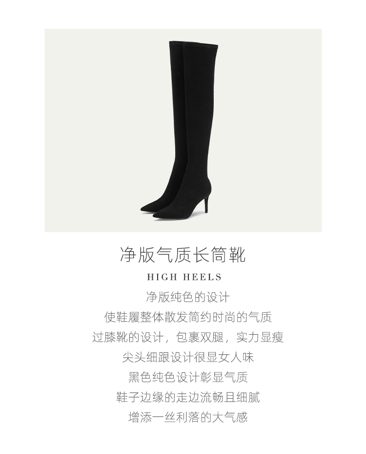 westory2023年秋冬新款黑色粗高跟时装百搭弹力靴高靴女S23DQ82871