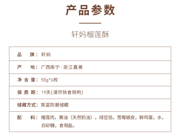轩妈榴莲酥 6枚装 330g 保质期19天