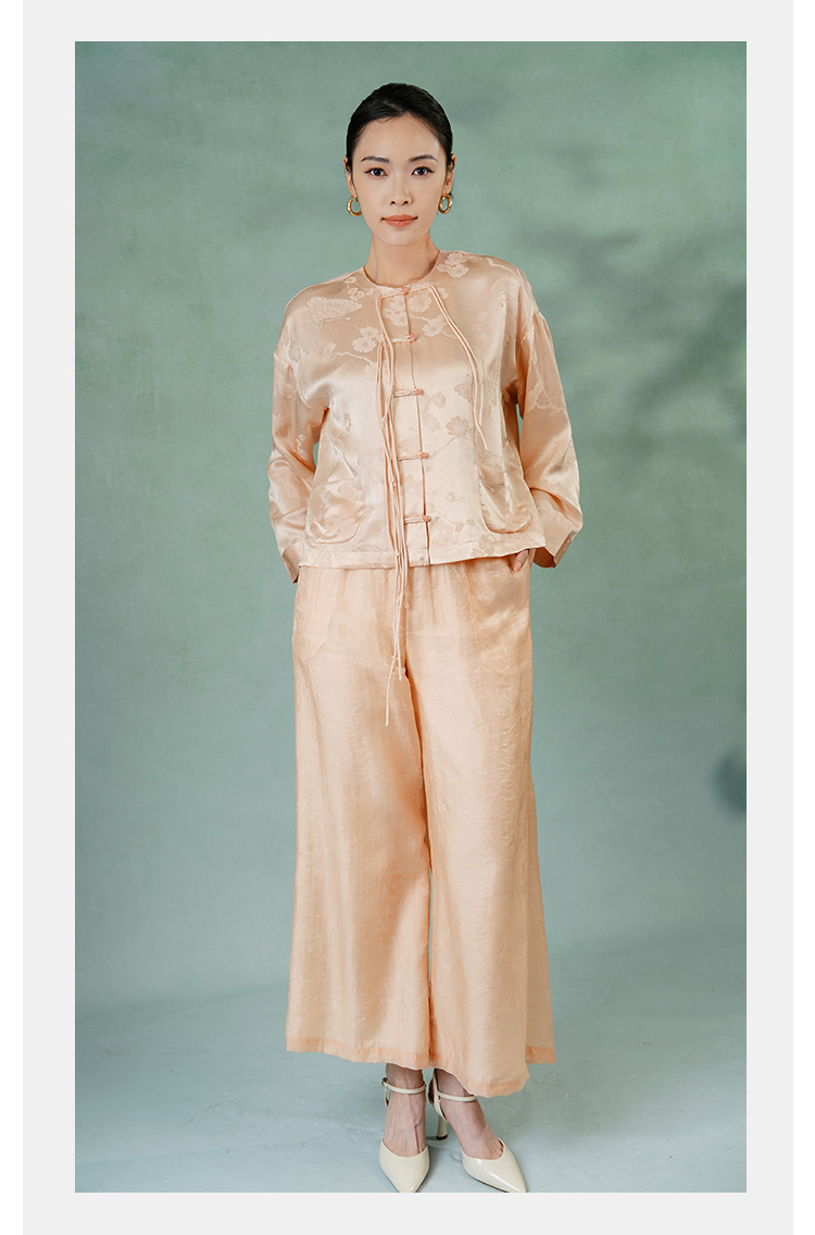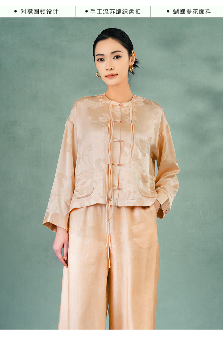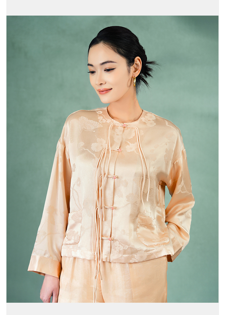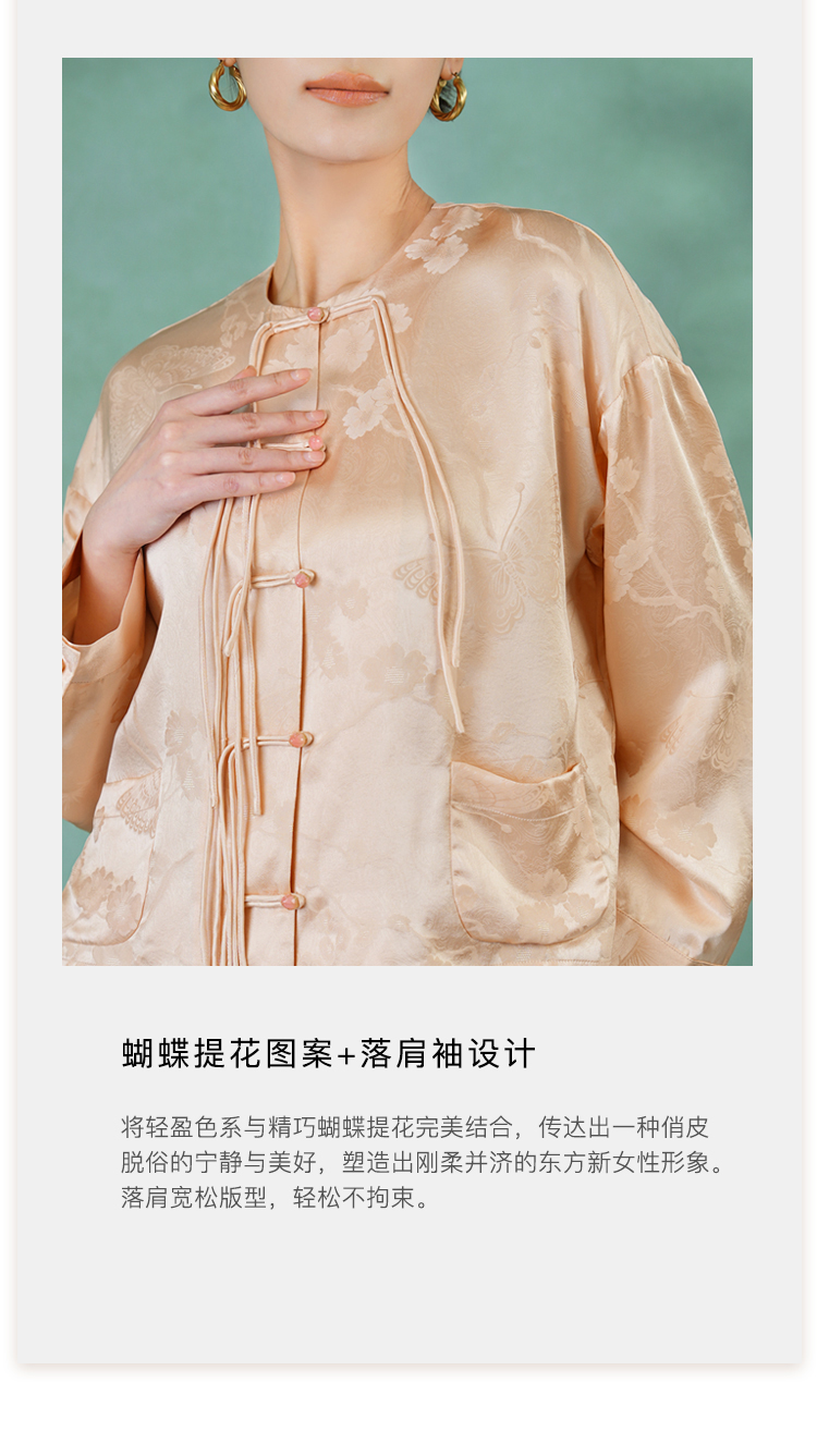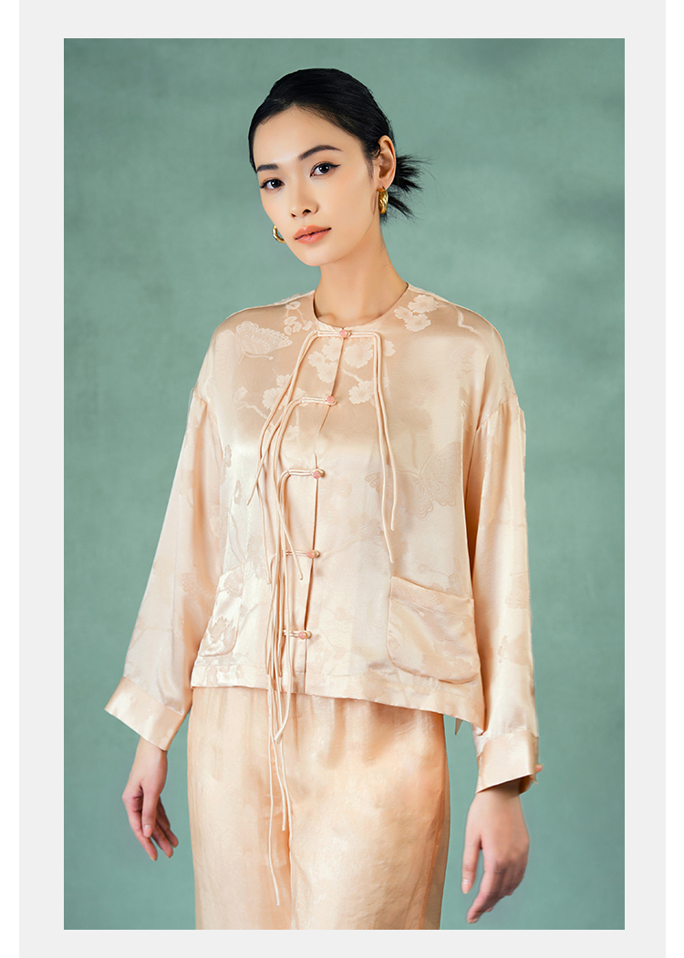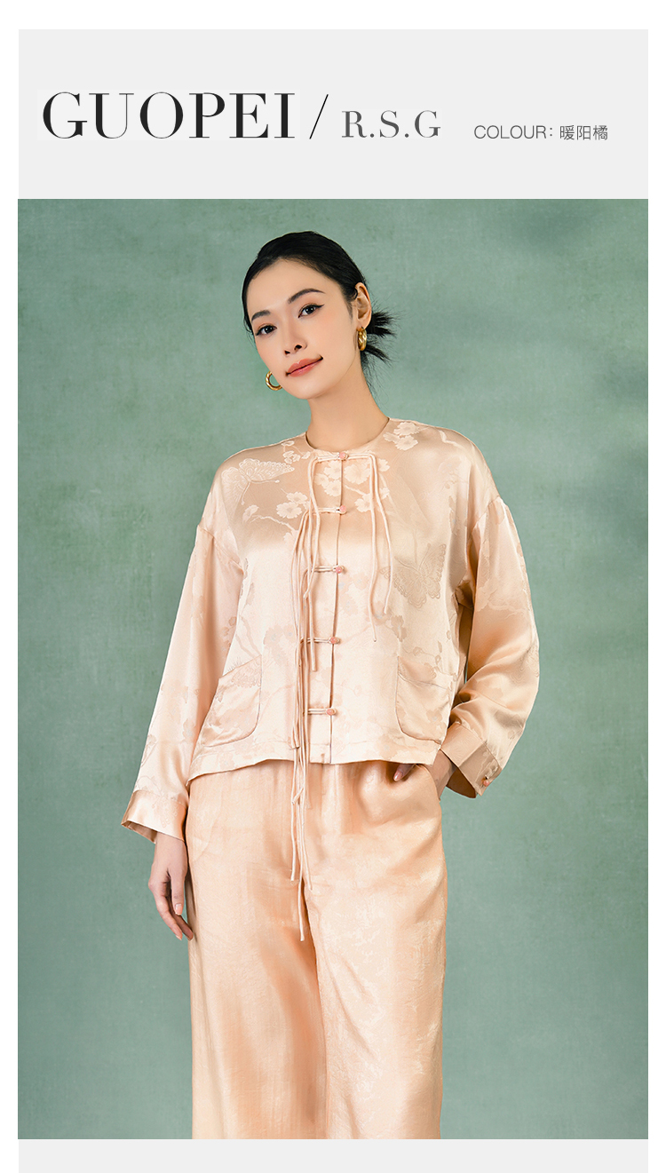 郭培成衣品牌精品系列粉黛婉婉桑蚕丝国风薄外套