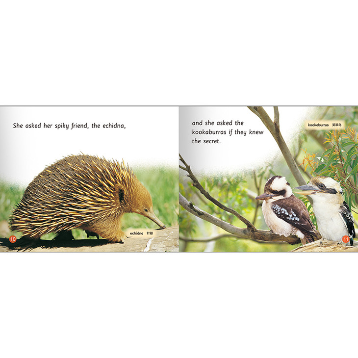 巨蜥安娜成功找到食物了吗?鹦鹉们有没有团结起来守护好家园?狐蝠弗雷迪为什么屡次遭到同伴们嘲笑?鲨鱼内德是最后的赢家吗?竹节虫有没有被饥饿的鸟发现?袋熊宝宝寻找的秘密究竟是什么?快跟萌趣有爱的动物们,一起去书中寻找答案,体验成长的快乐与烦恼吧!
