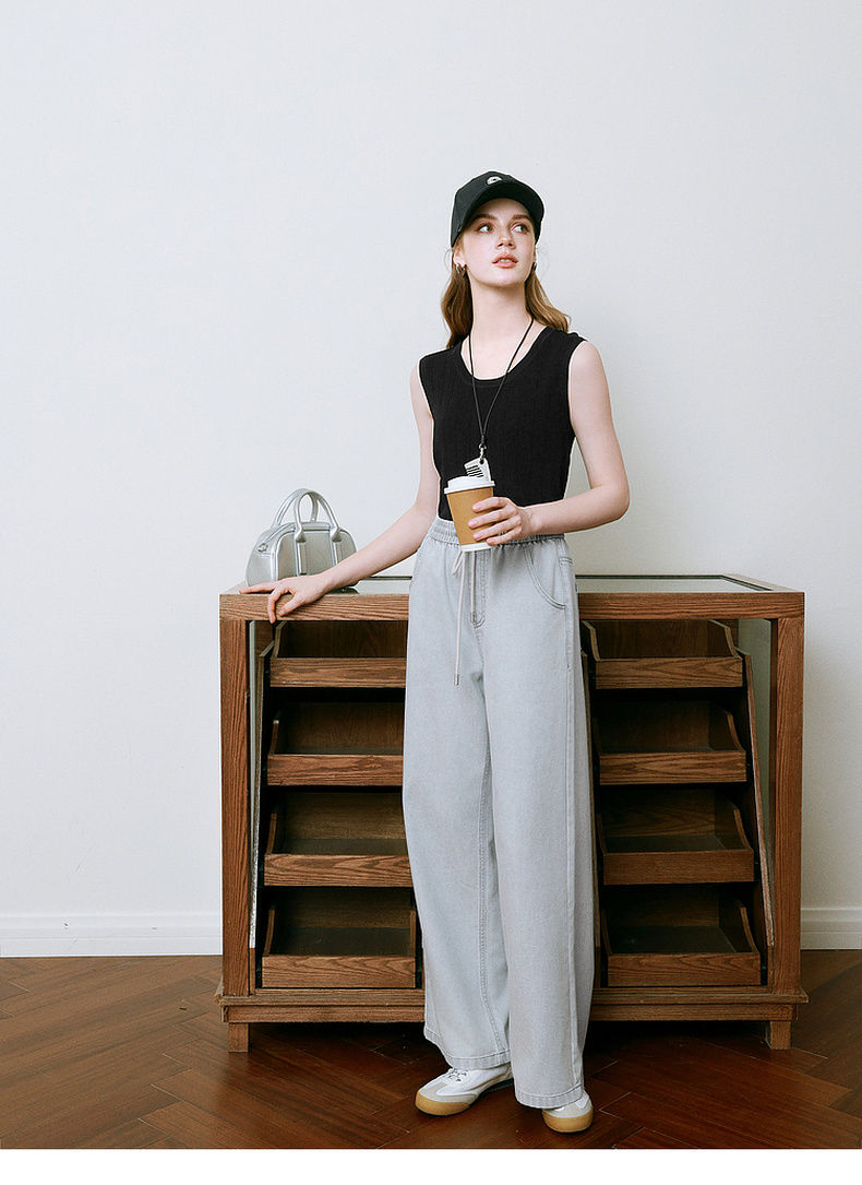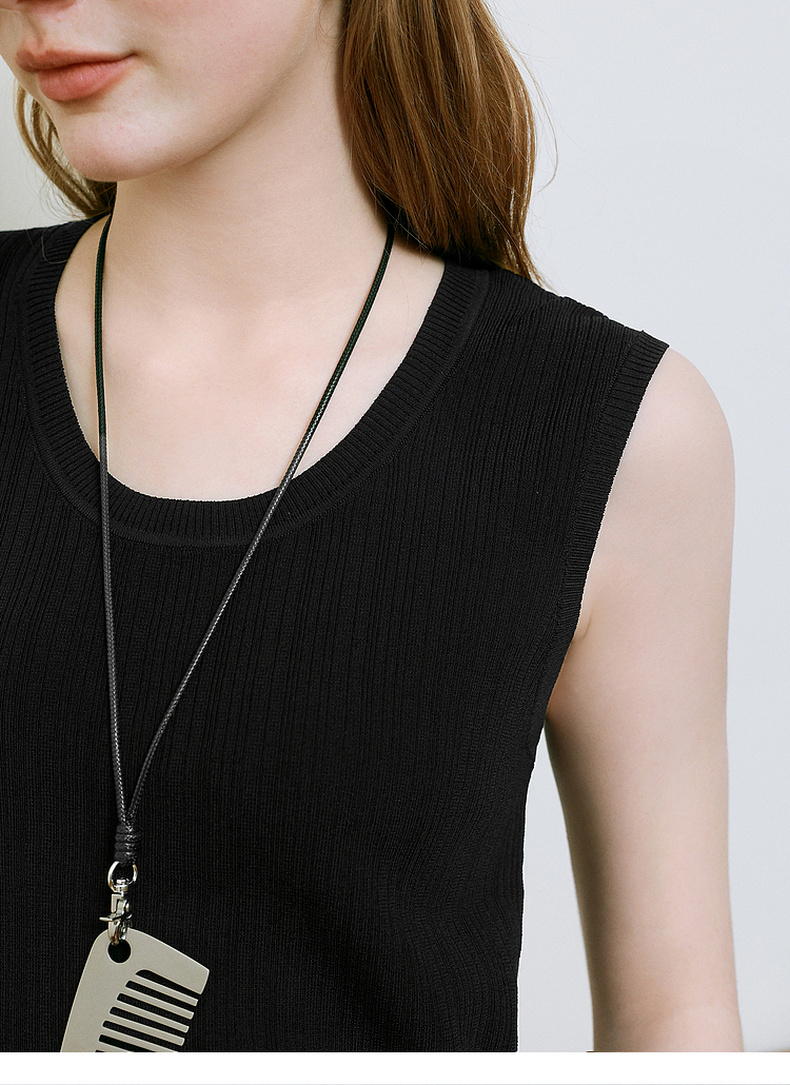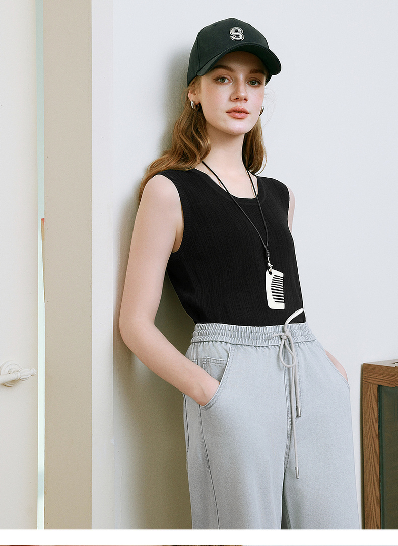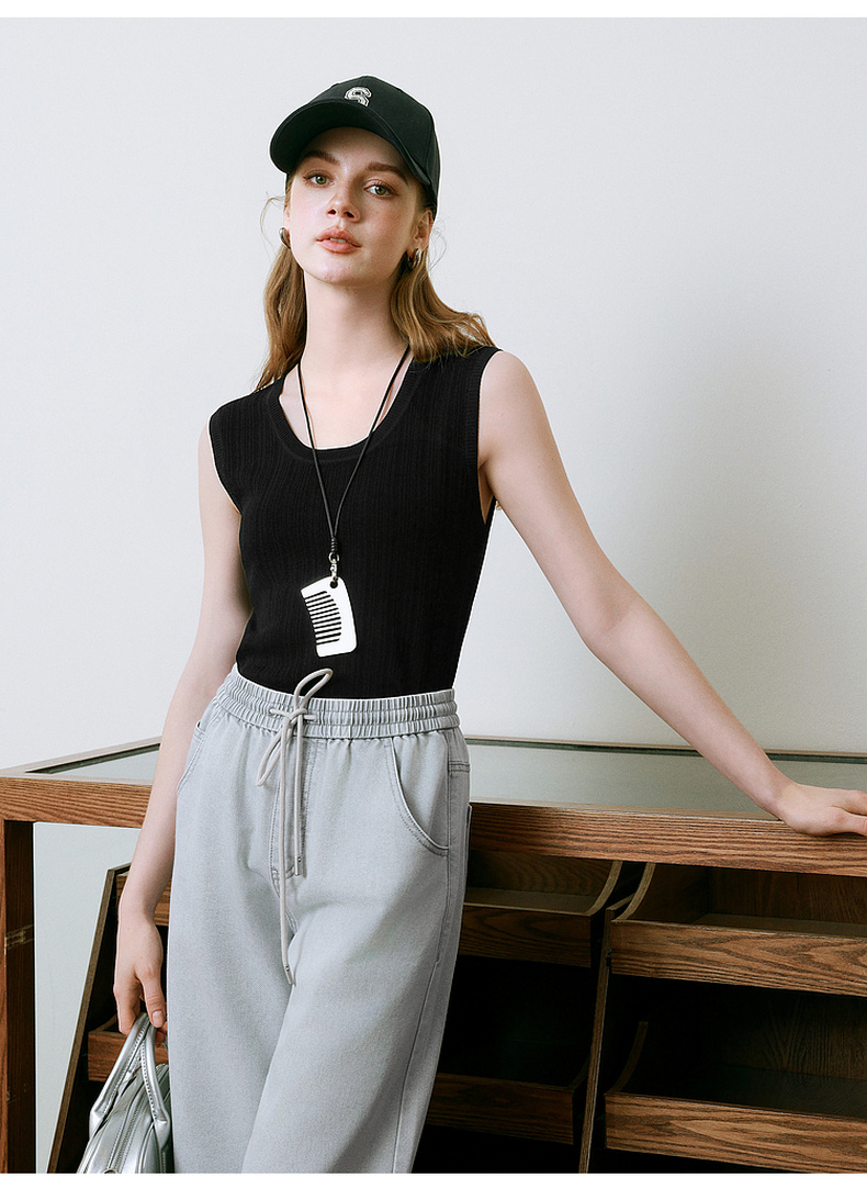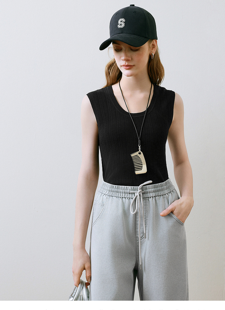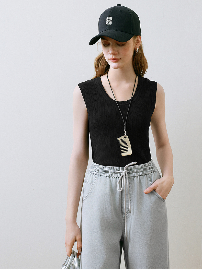 【商场同款】诗凡黎黑色U领针织背心2025夏新款坎肩上衣3G4230652
