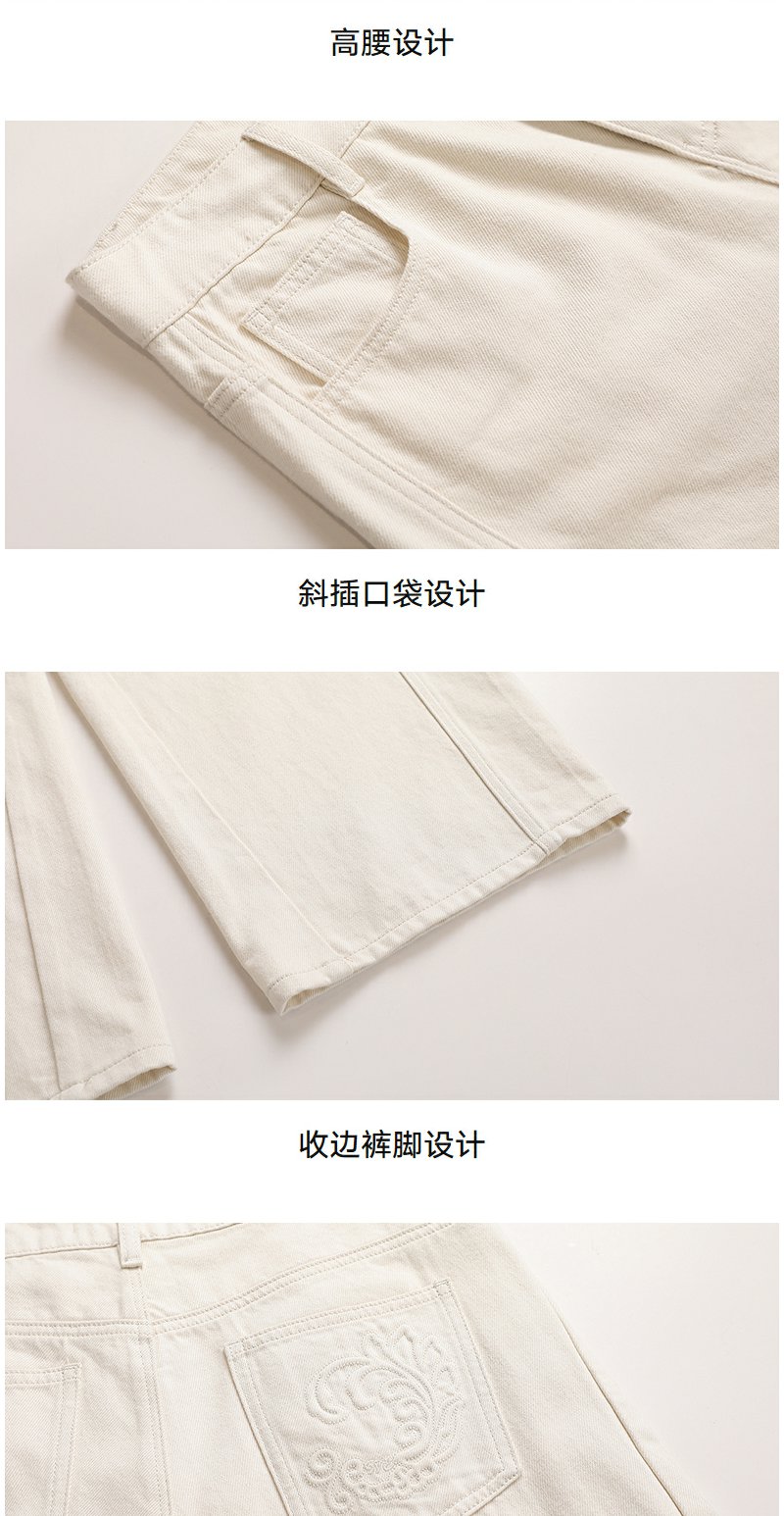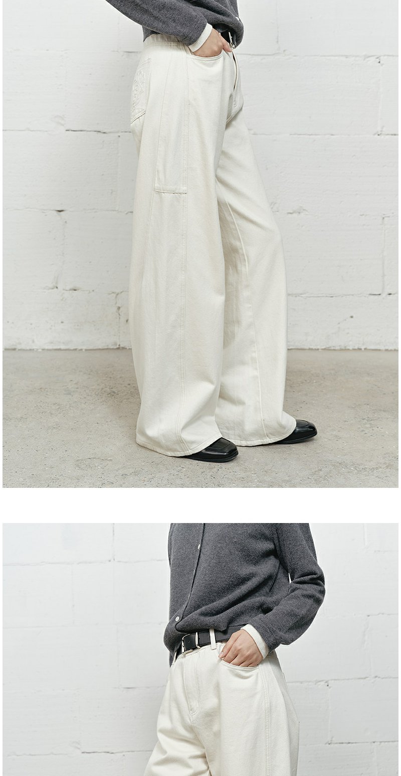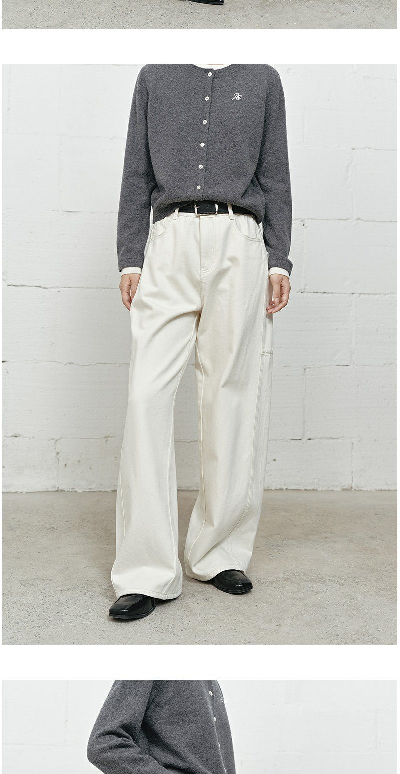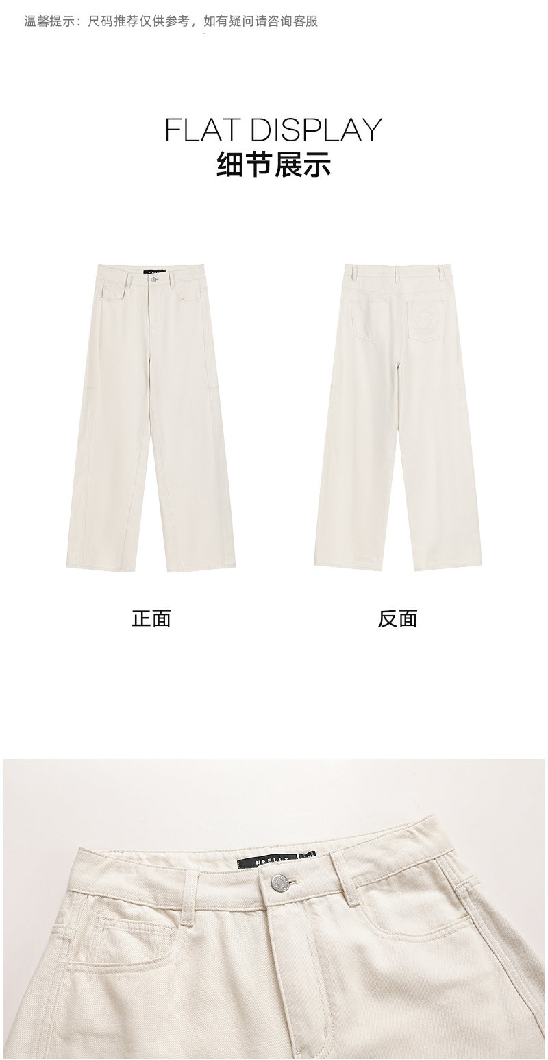 NEELLY纳俪商场同款冬新款白色高腰直筒牛仔裤女通勤出游阔腿长裤N25101H01023