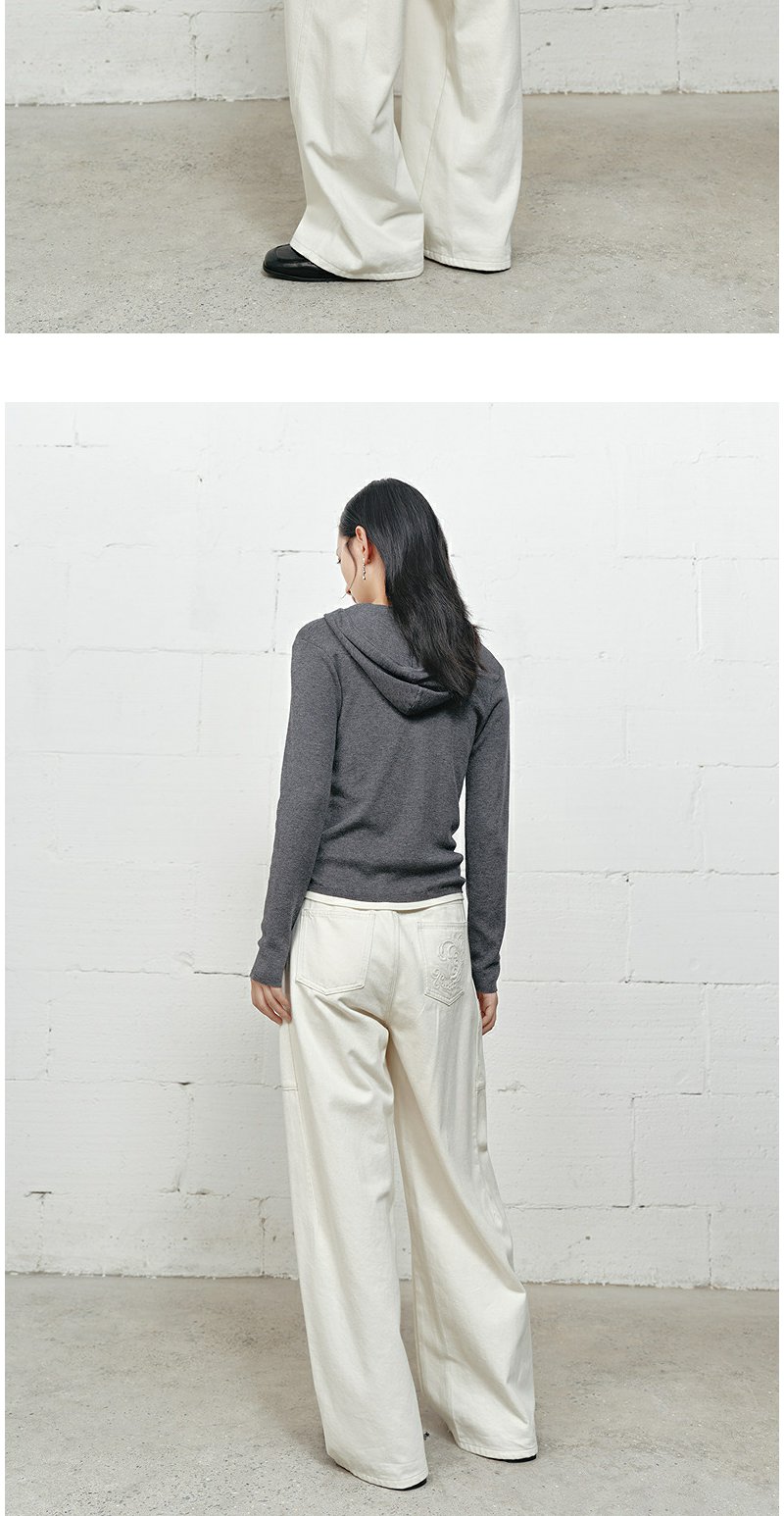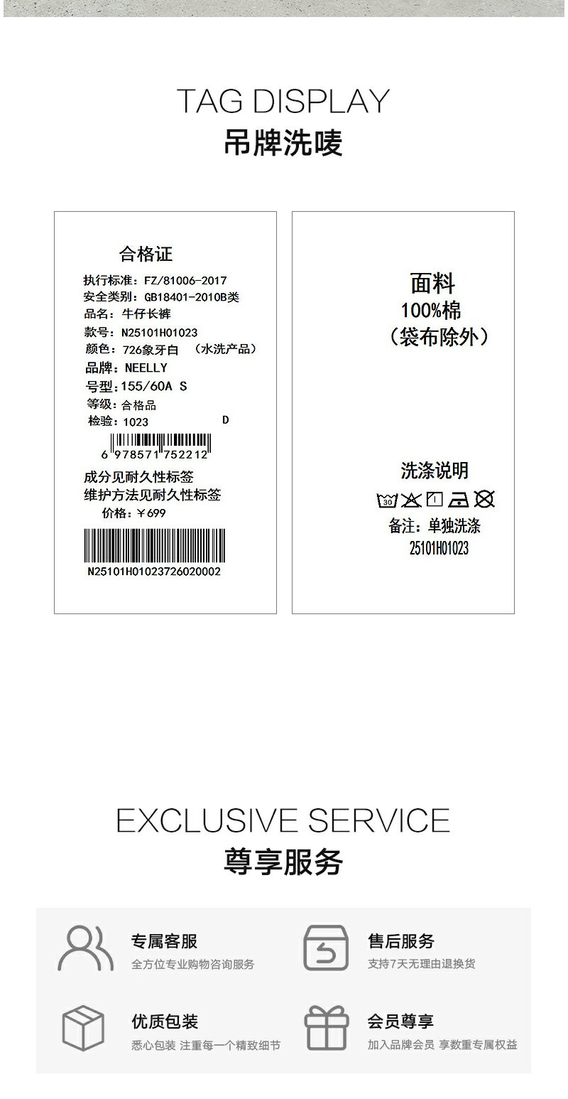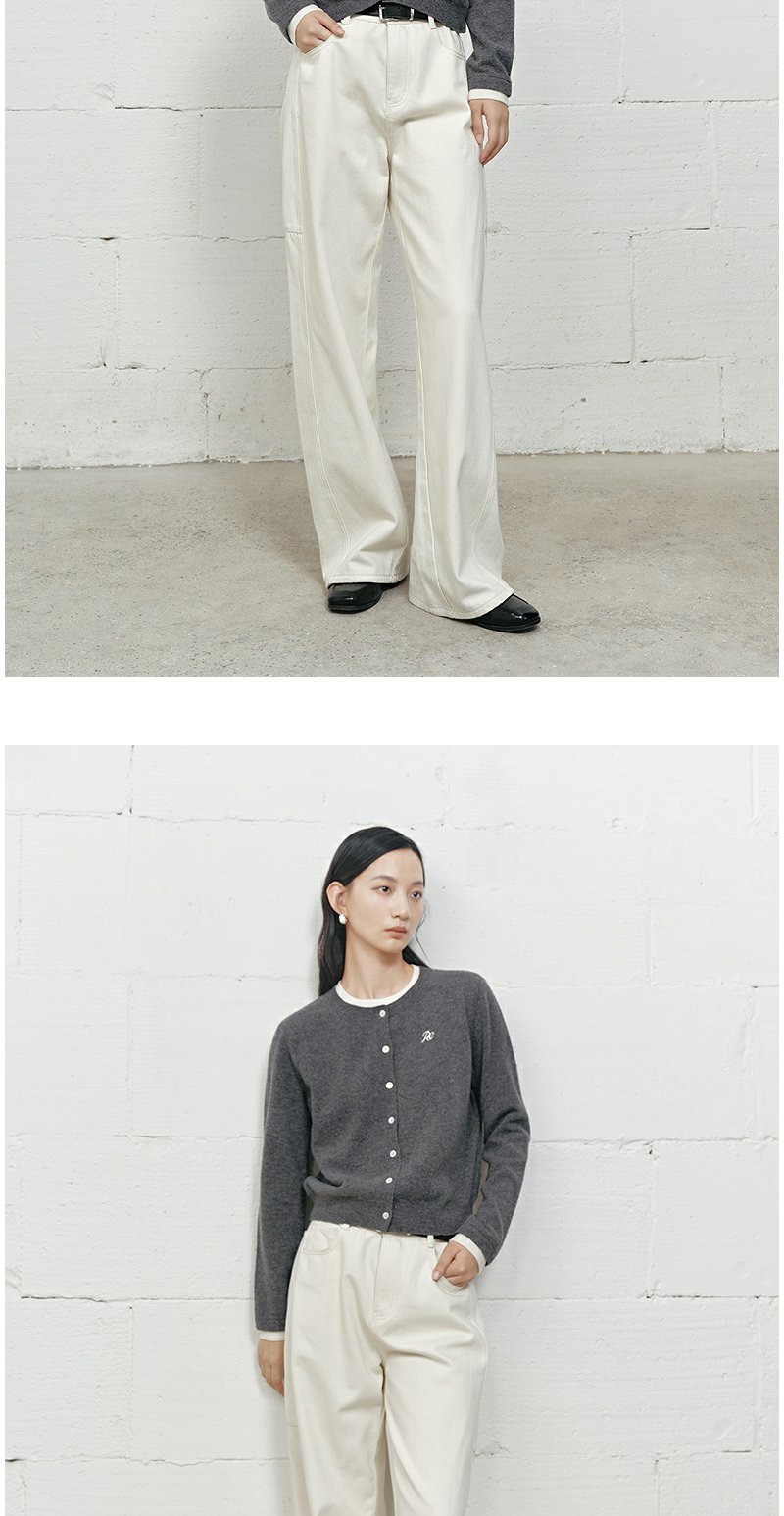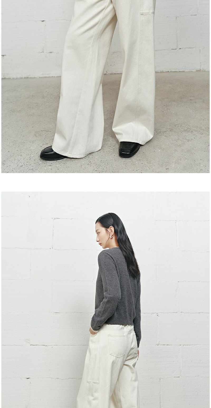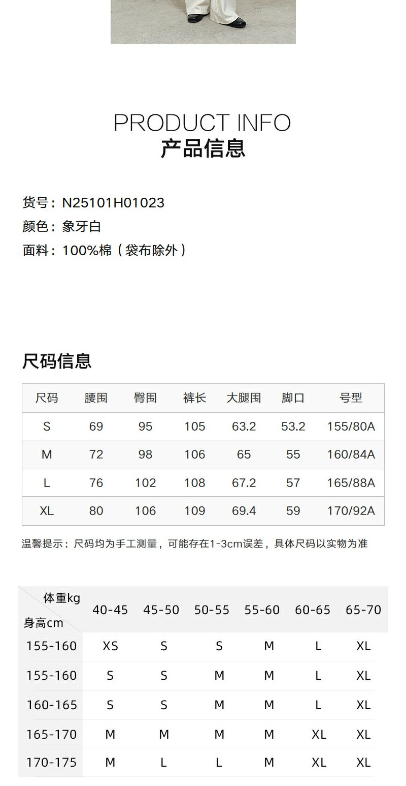 NEELLY纳俪商场同款冬新款白色高腰直筒牛仔裤女通勤出游阔腿长裤N25101H01023