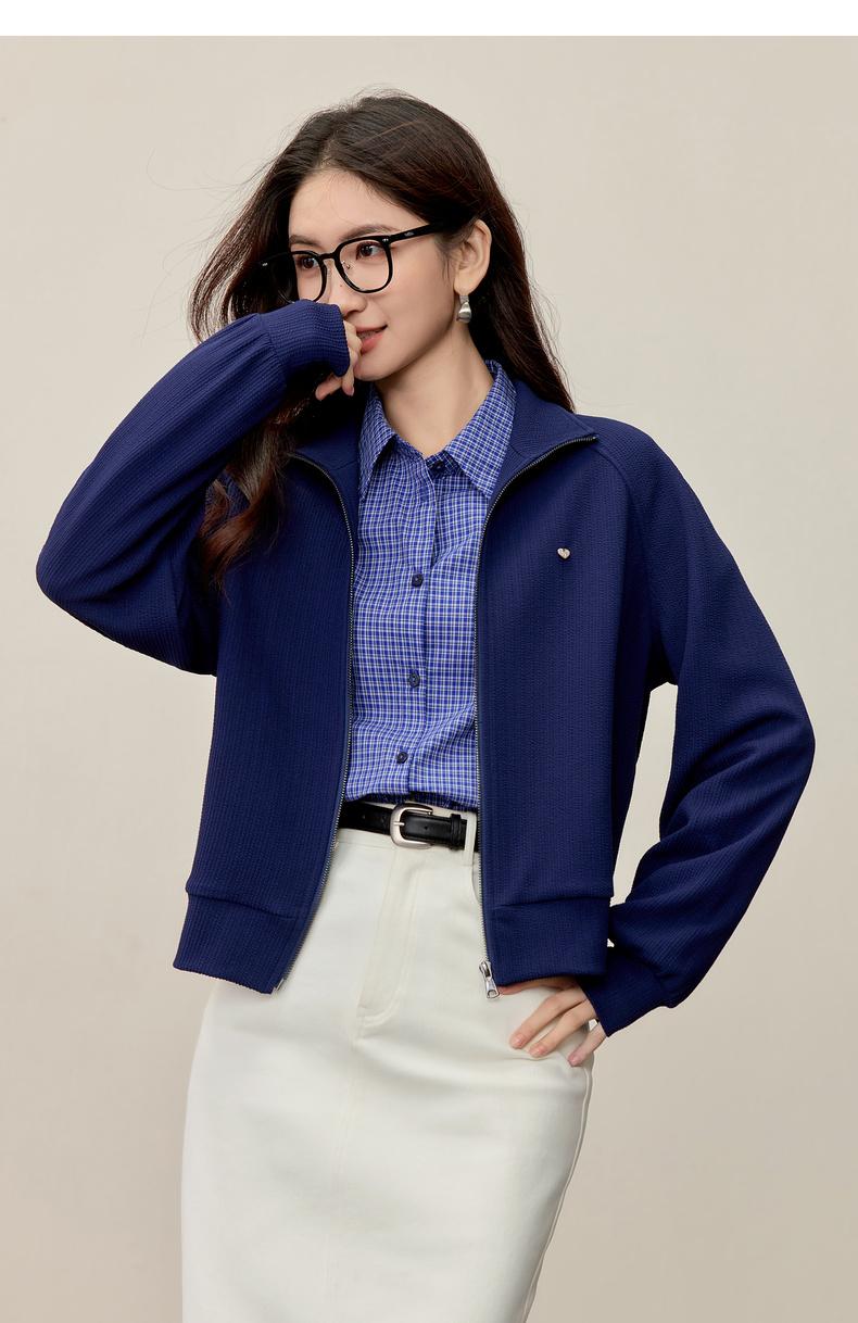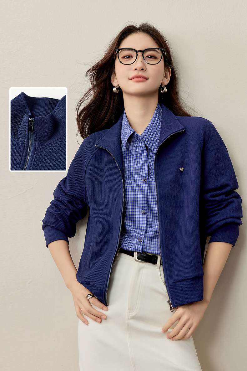 【内购】【两穿领】简约通勤立领/翻领金属拉链爱心标牌装饰宽松卫衣外套-153WG2896