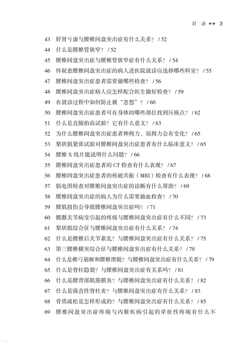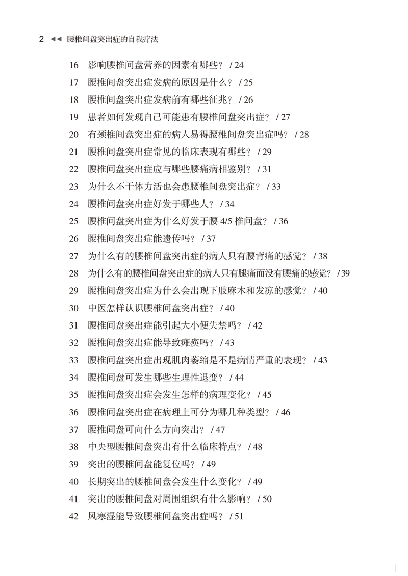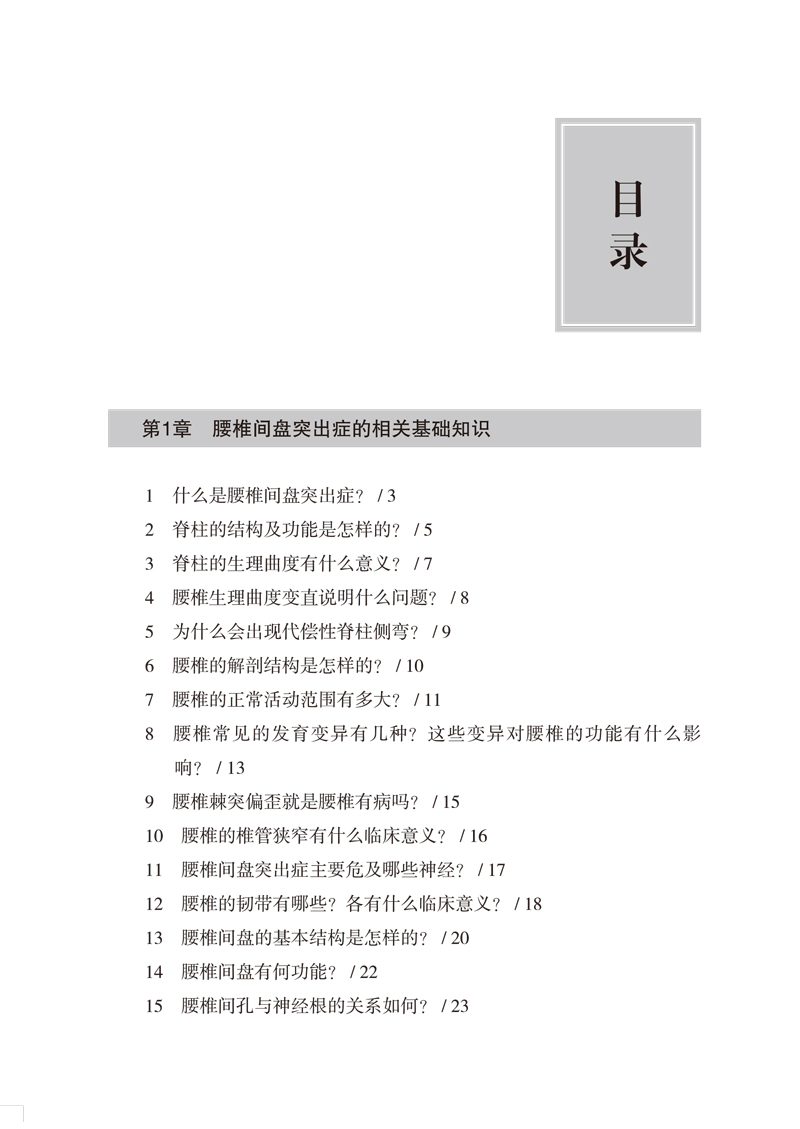 本书以问答形式针对椎间盘患者及家属编写,涉及腰椎间盘突出症的相关基础知识、腰椎间盘突出症的自我治疗及其他治疗方法的选择等,重点介绍腰椎间盘突出症的自我治疗。