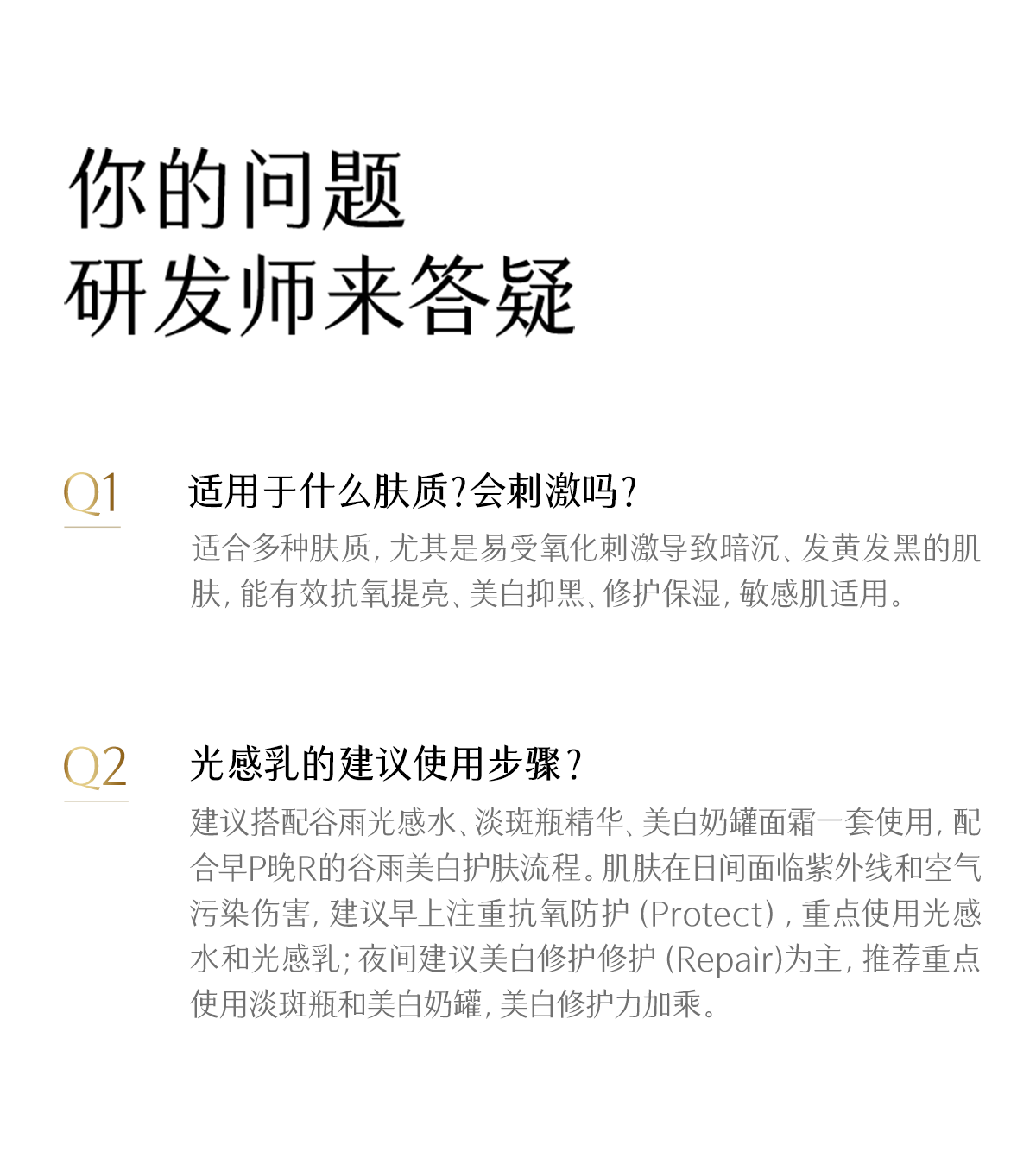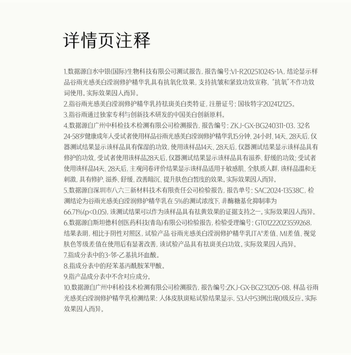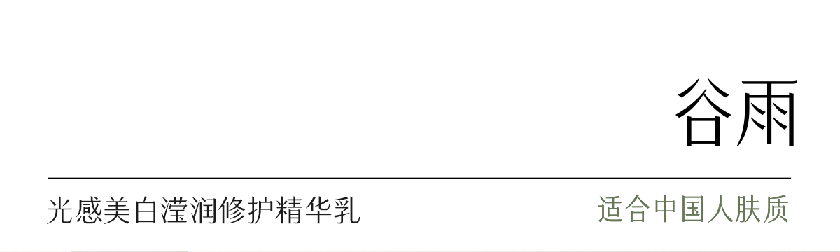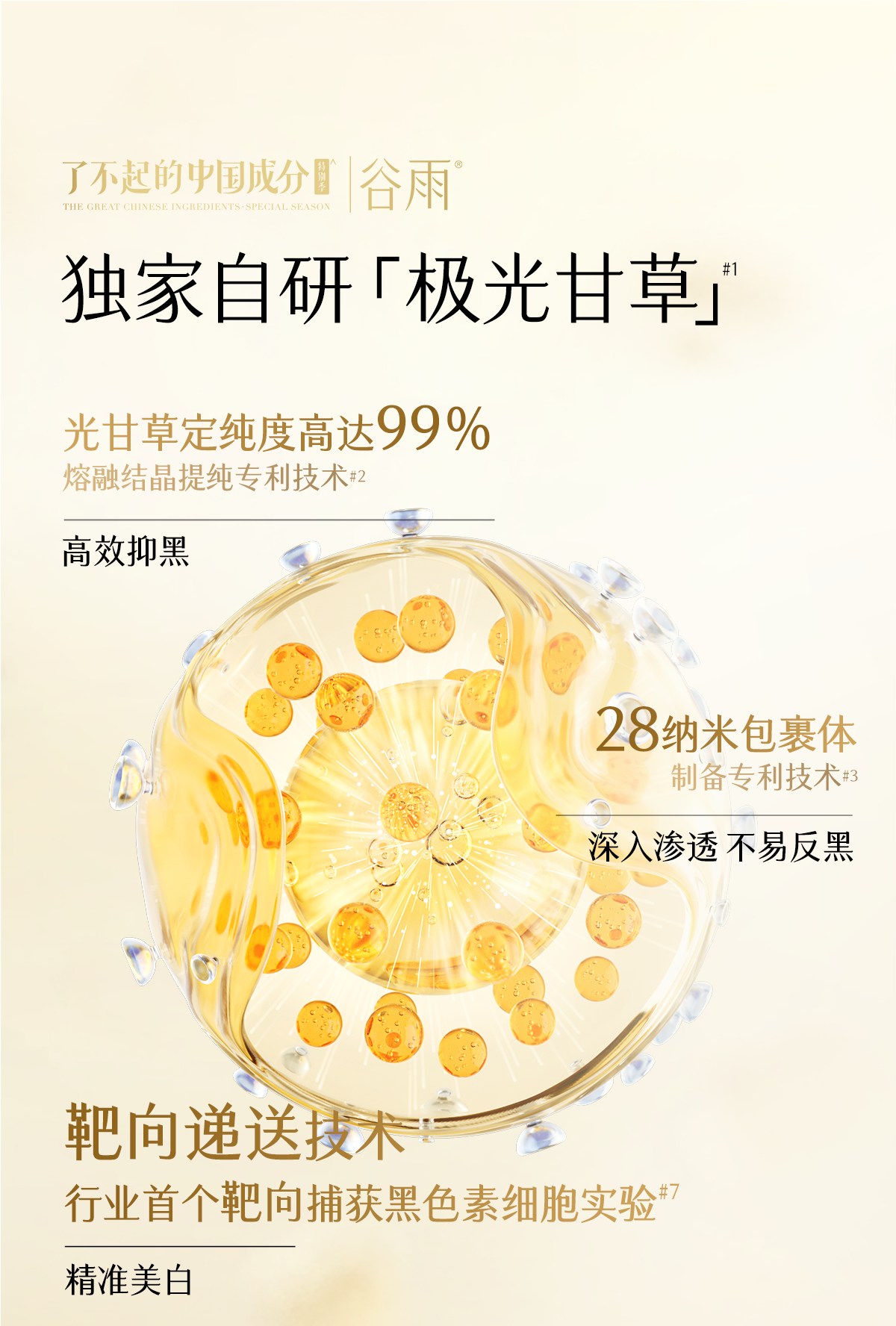 - 谷雨,更适合中国人肤质的植萃美白。专研中华珍稀美白植萃光甘草定,深入研究中国人肤质特点,打造中国女性独有的仙气白。