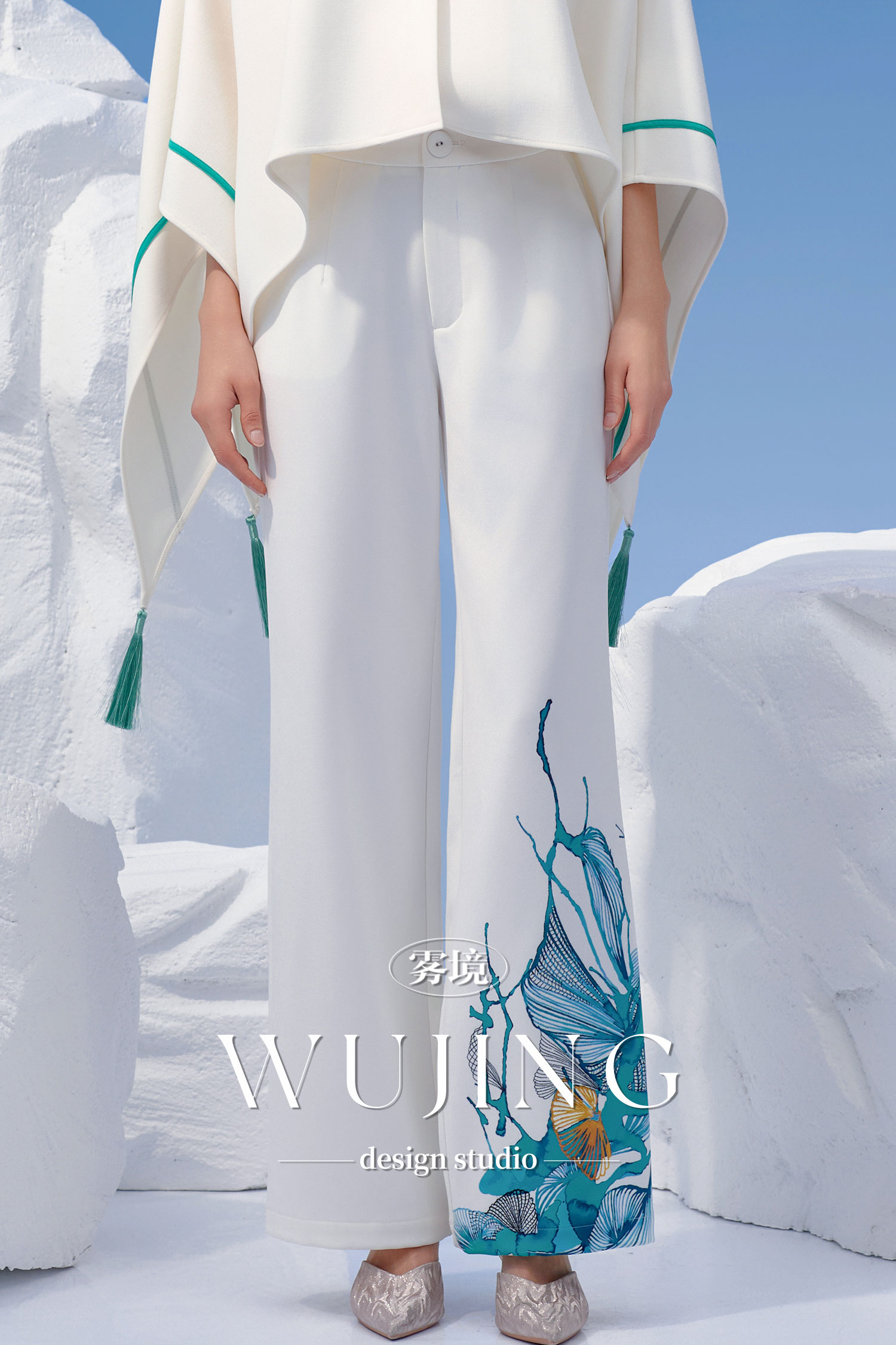 4202098 浑金白玉 加密水晶西装斜纹料裤子 雾境