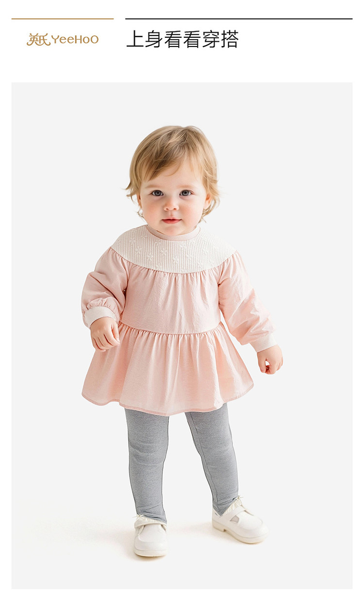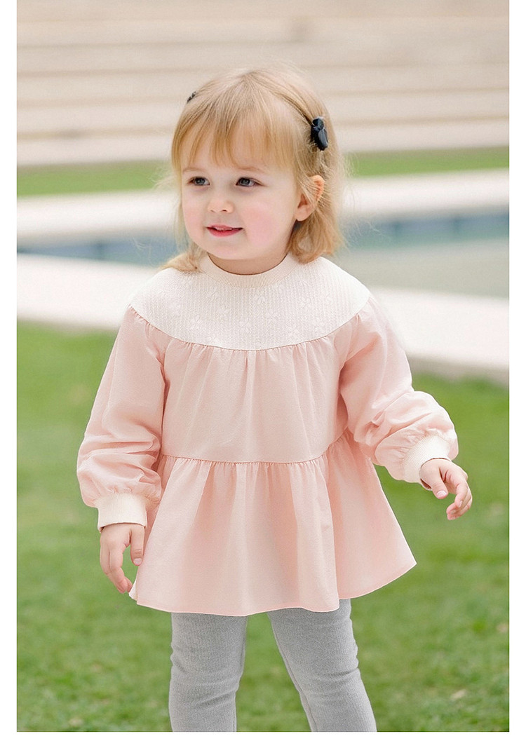 英氏童装女童长袖上衣花边公主T恤春秋可爱春季衣服YRTAJ1S004A