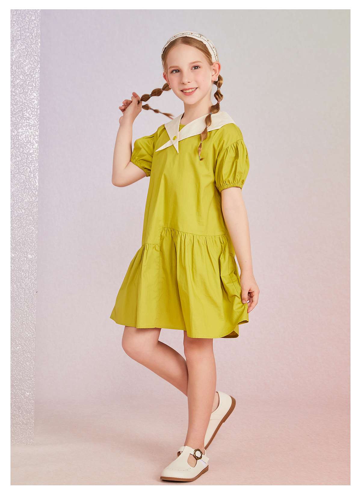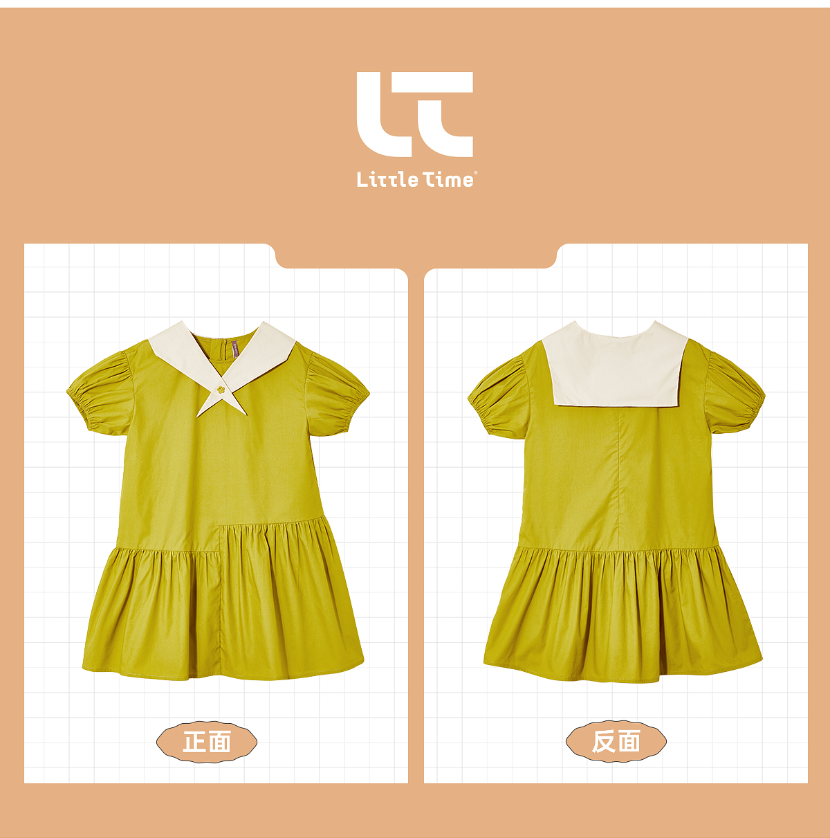 littletime女童海军领连衣裙夏季2022新款纯棉短袖洋气儿童裙子