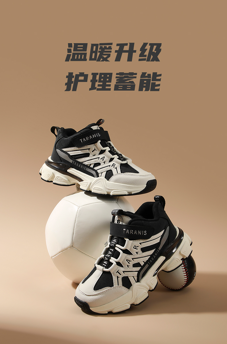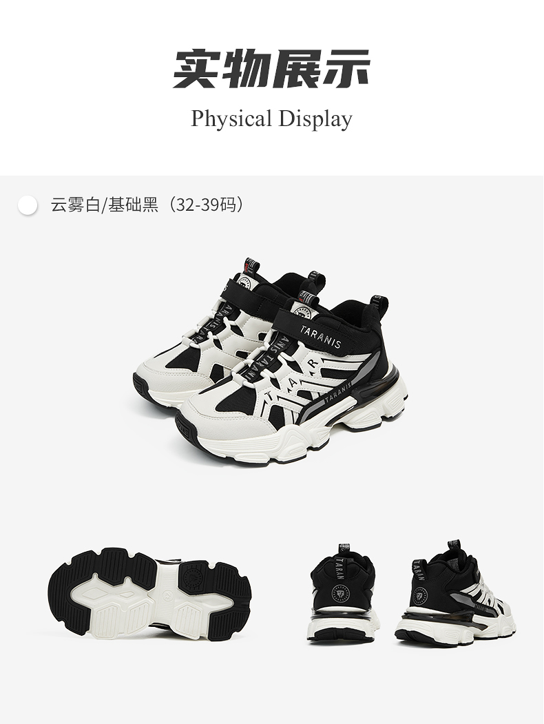 泰兰尼斯冬季新款中大童跑步鞋男女童户外加绒保暖运动鞋老爹鞋T01D5D6684