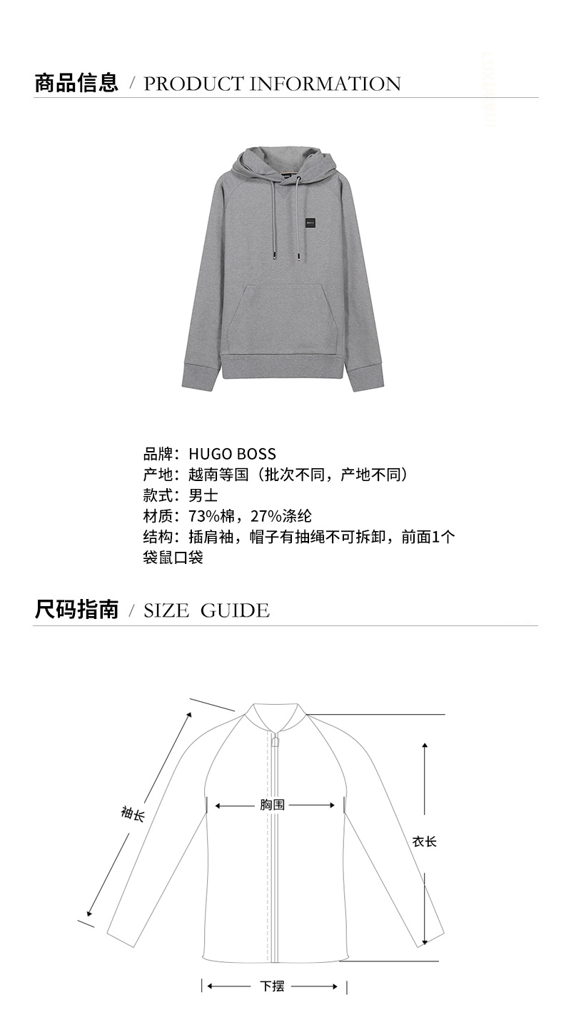 HUGO BOSS/雨果博斯【22春夏新款】男士棉质连帽长袖卫衣运动衫 50468984