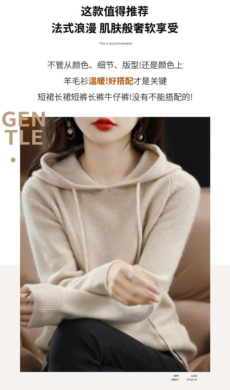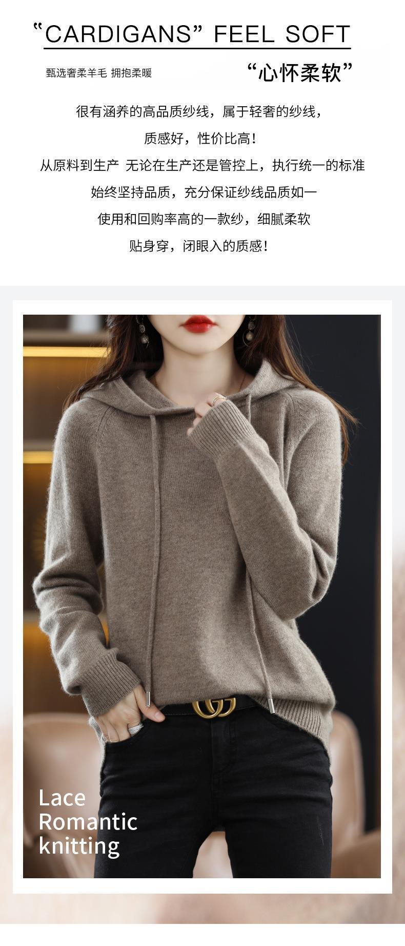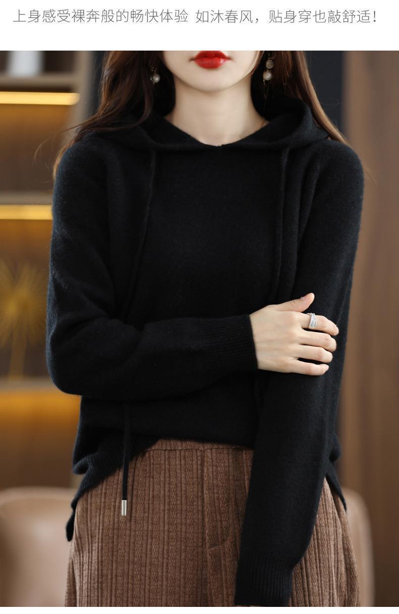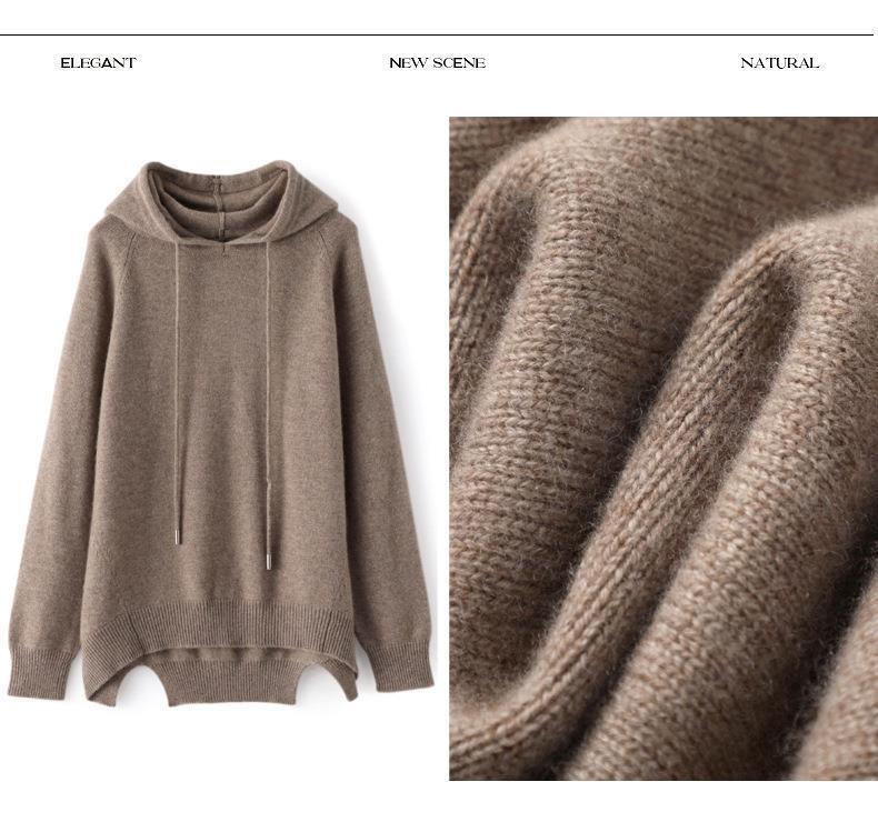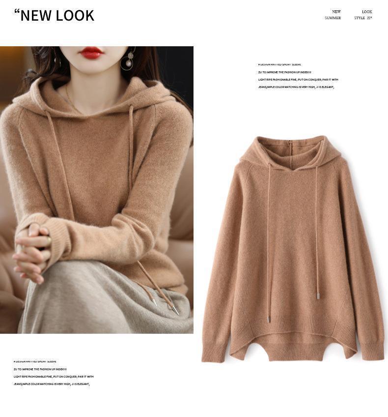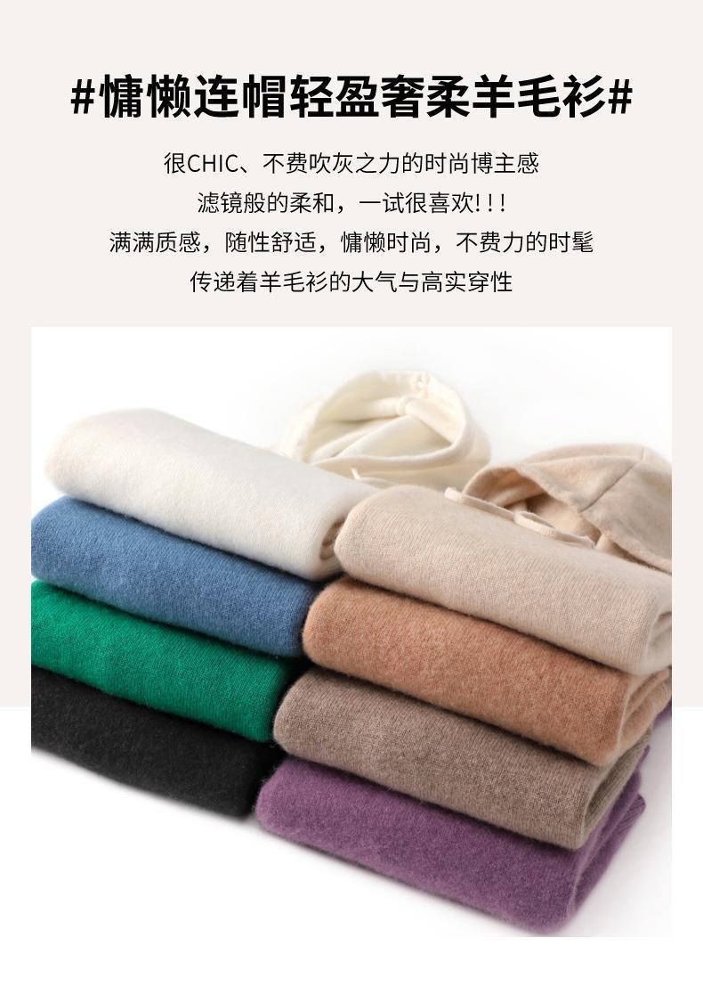 羊毛女士休闲宽松不规则加厚毛衫连帽纯色针织打底衫长袖毛衣