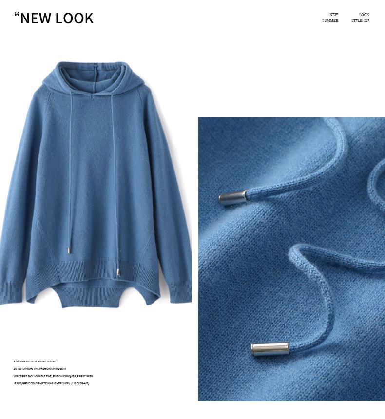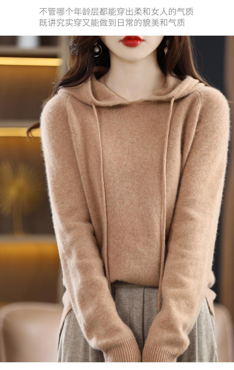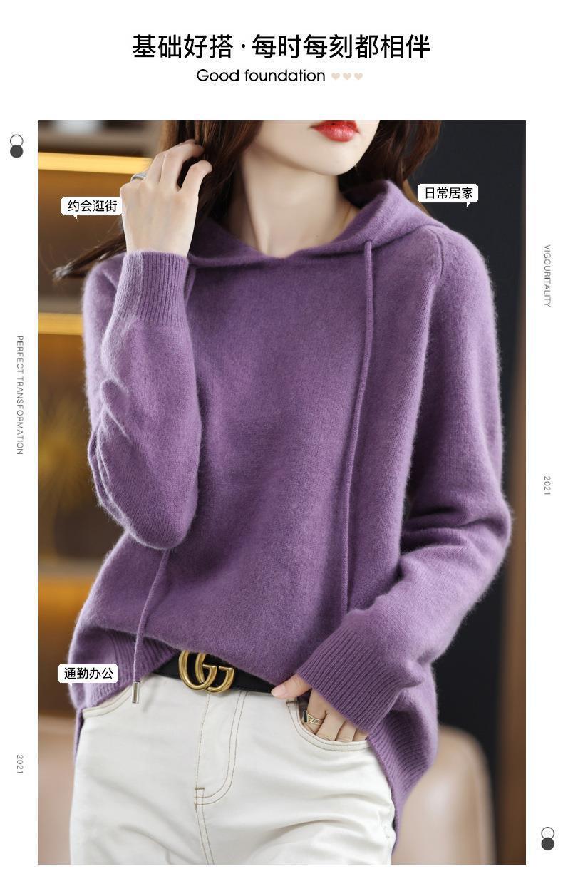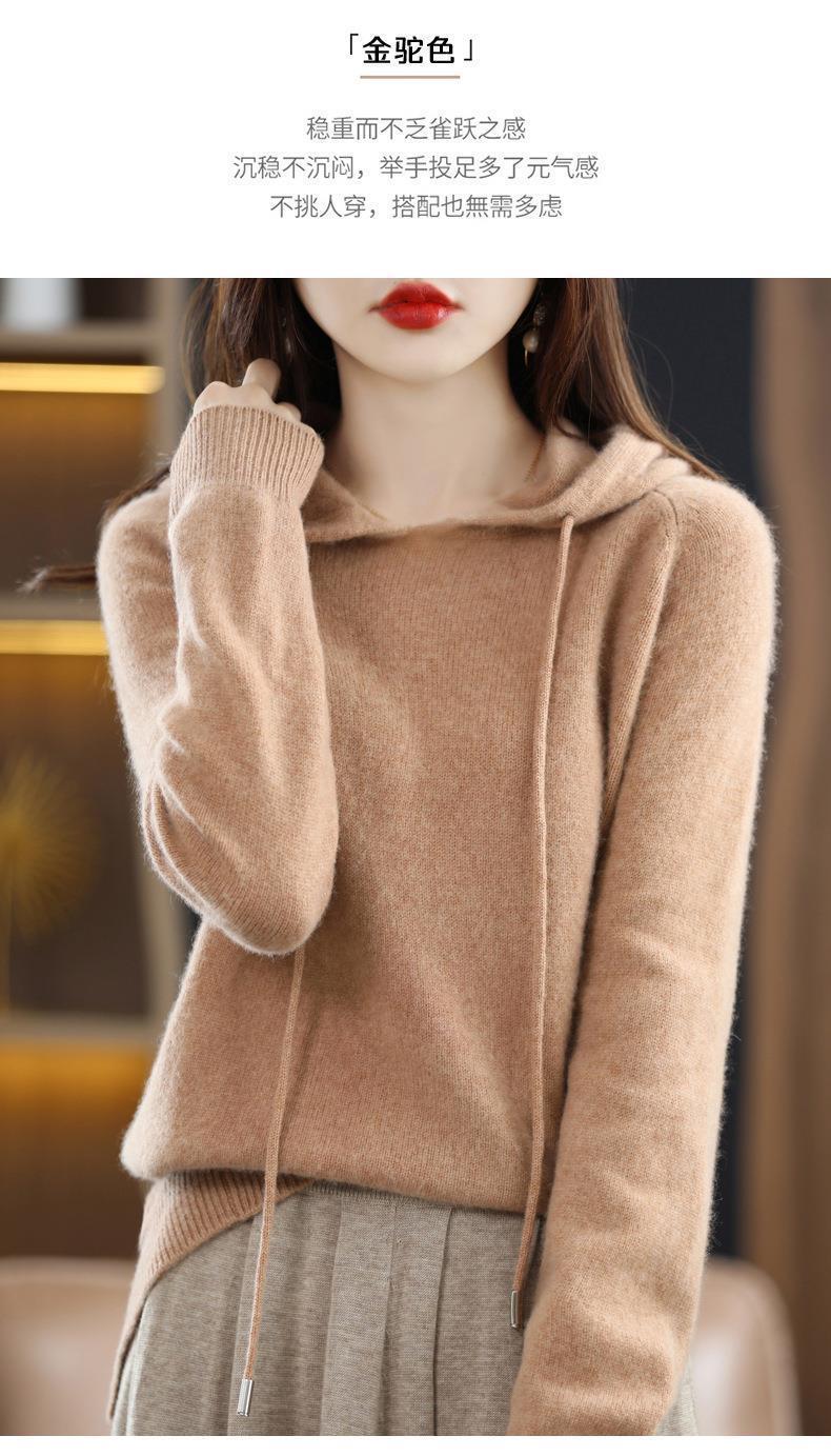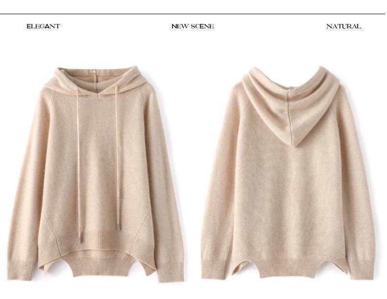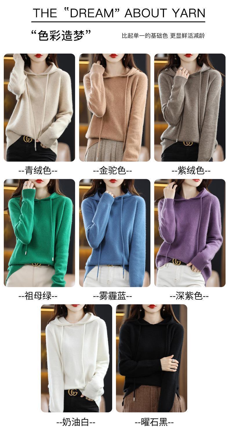 羊毛女士休闲宽松不规则加厚毛衫连帽纯色针织打底衫长袖毛衣