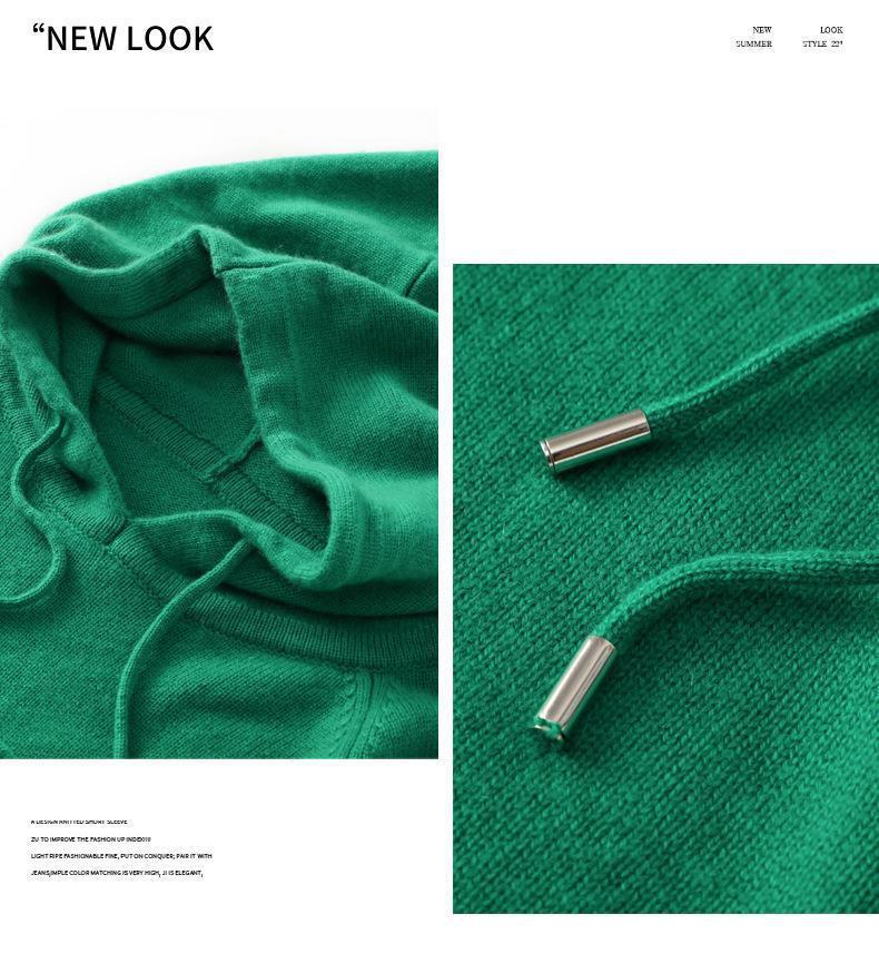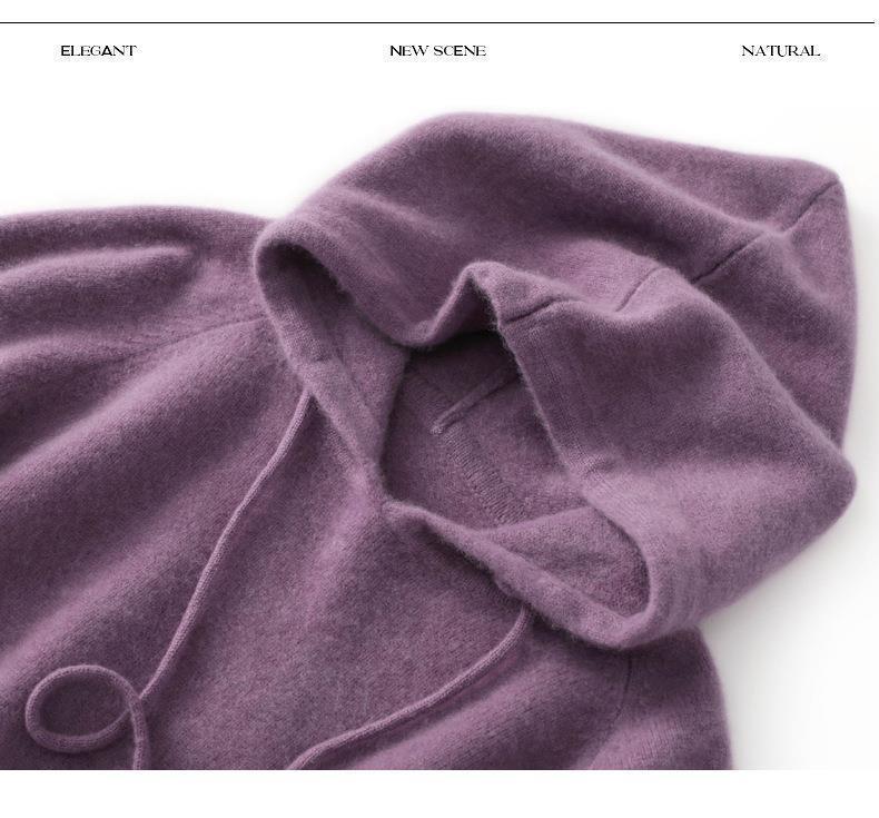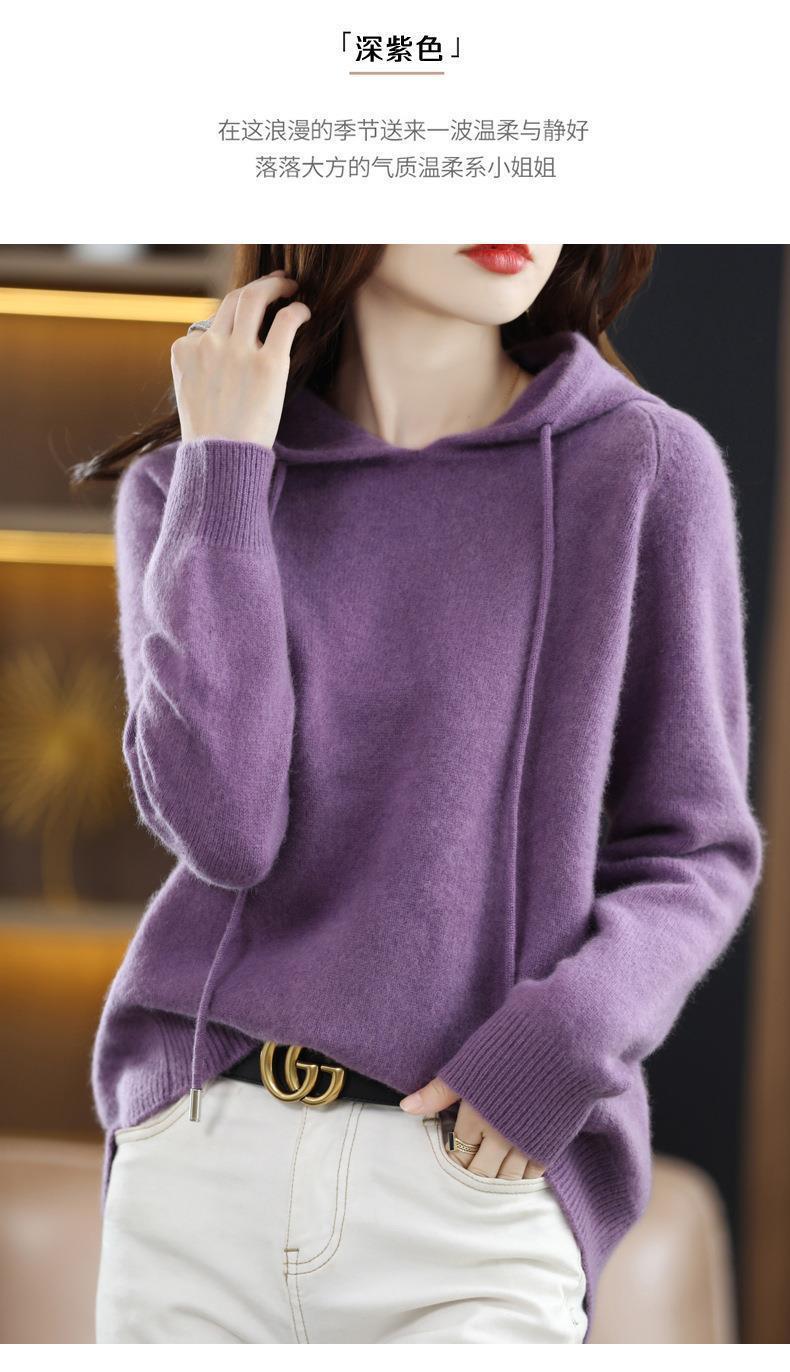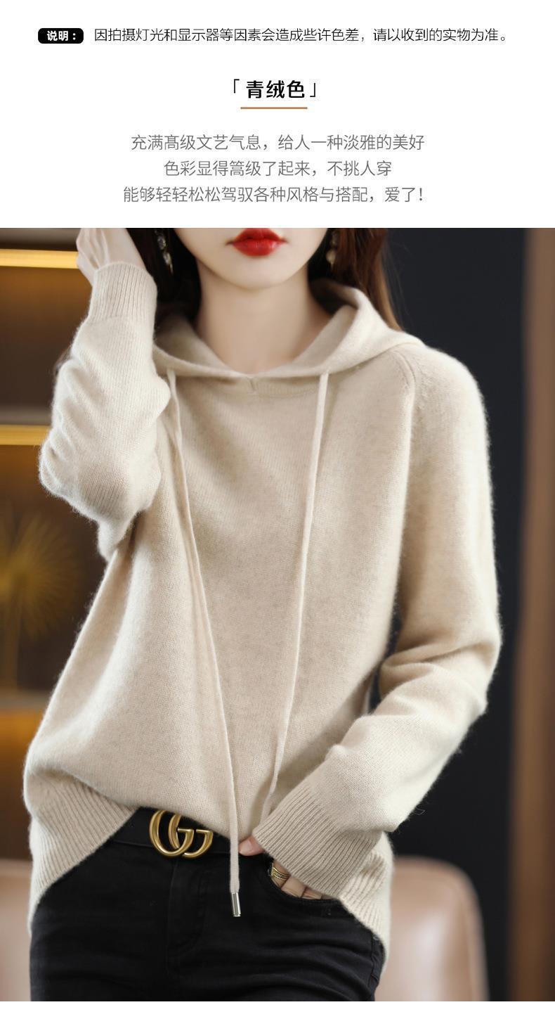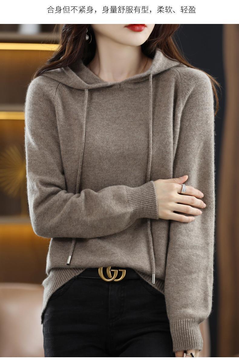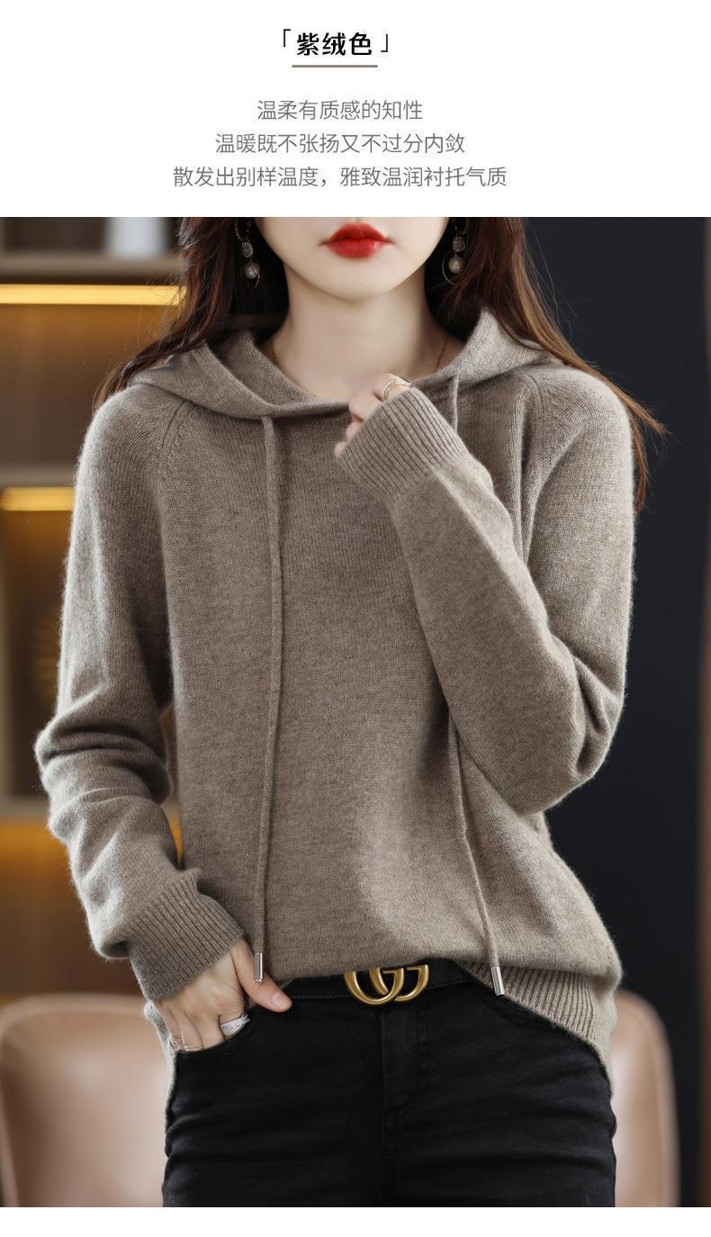 羊毛女士休闲宽松不规则加厚毛衫连帽纯色针织打底衫长袖毛衣