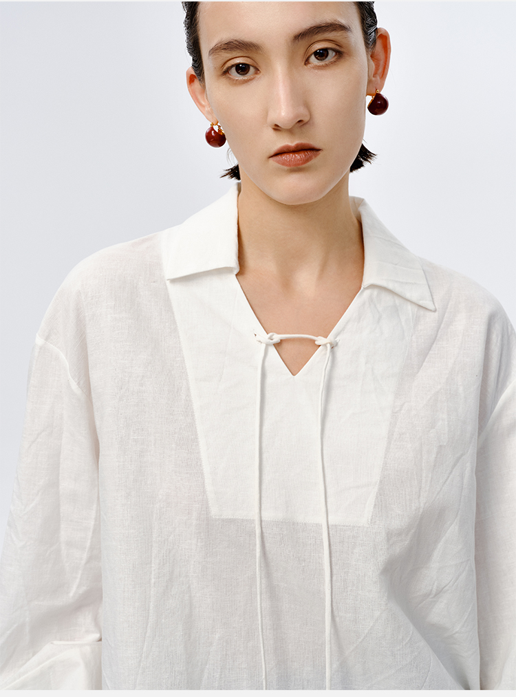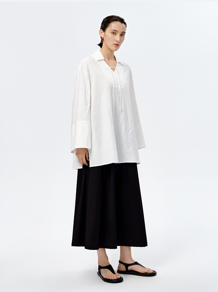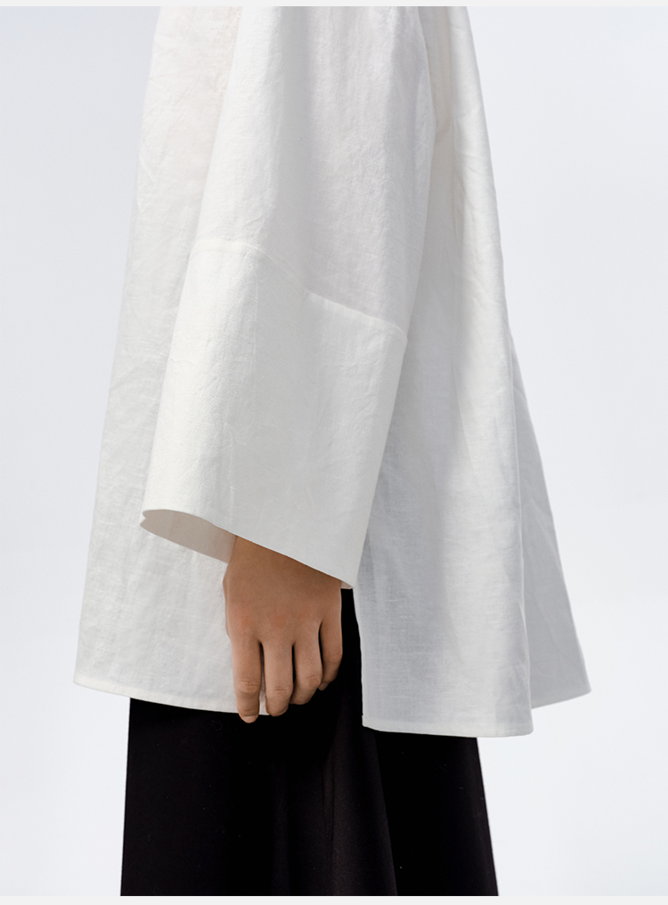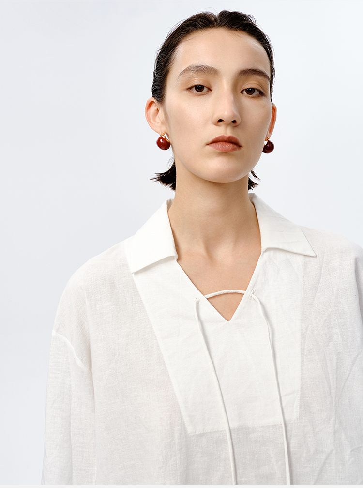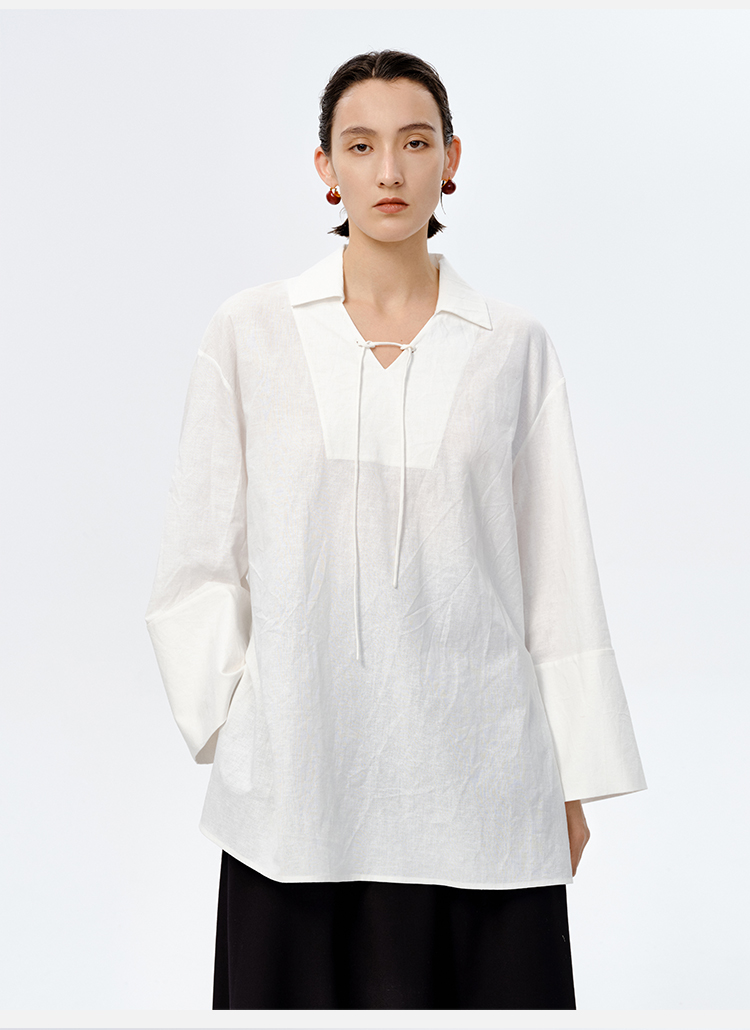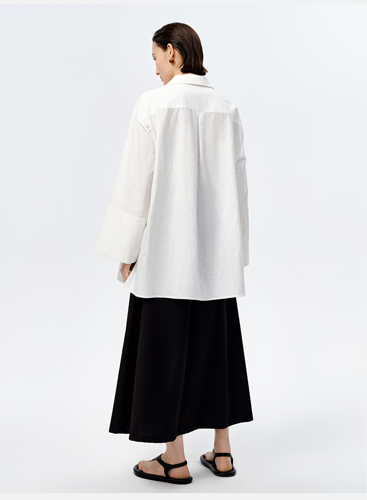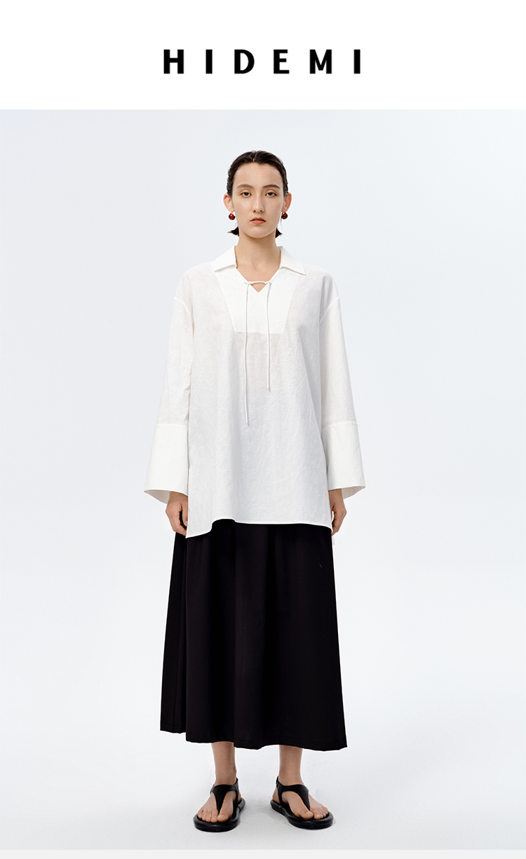 HIDEMI 水洗艺术感亚麻翻领廓形衬衫