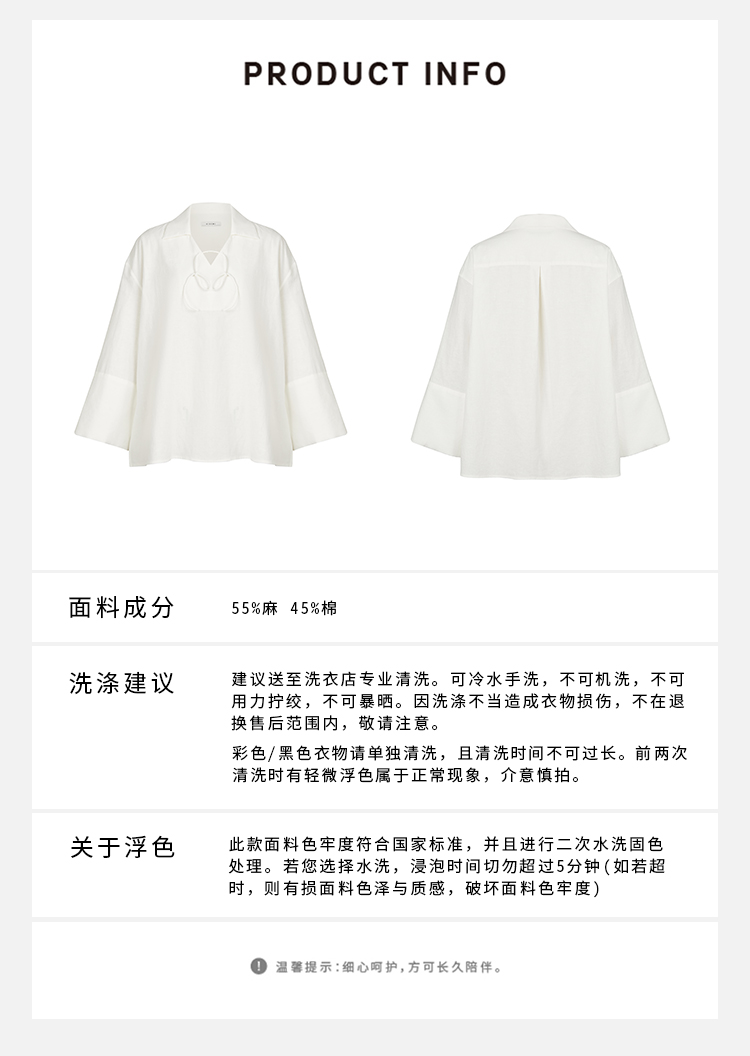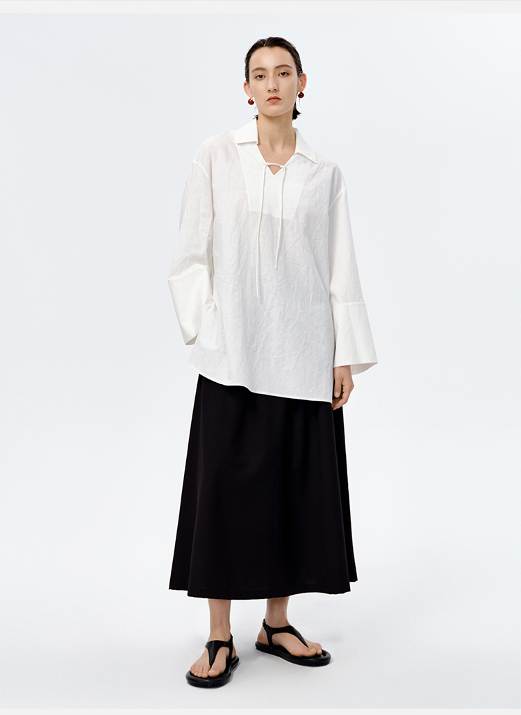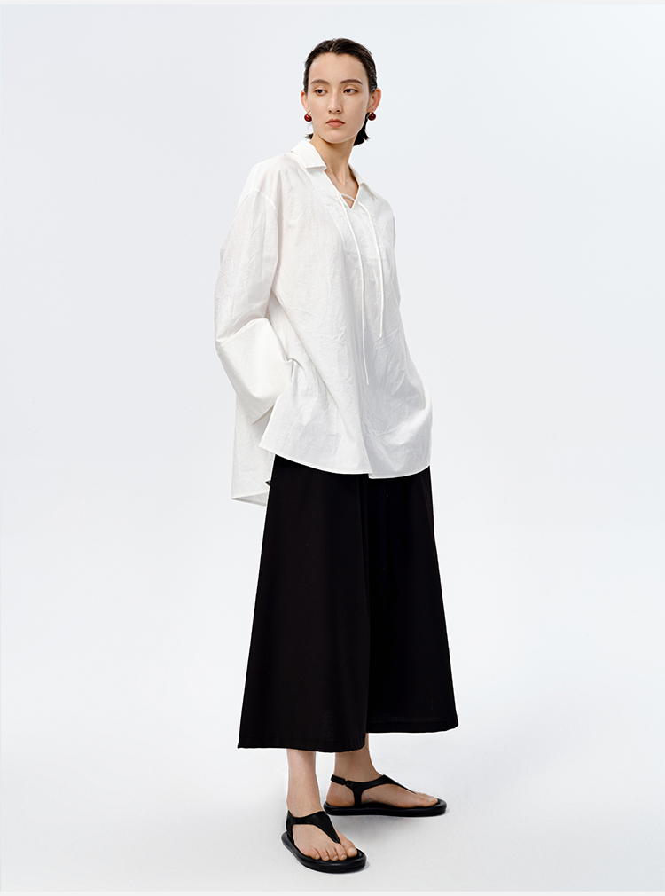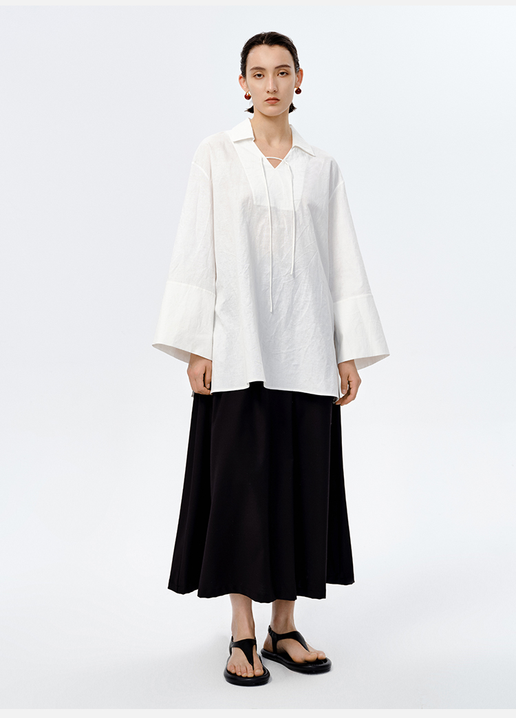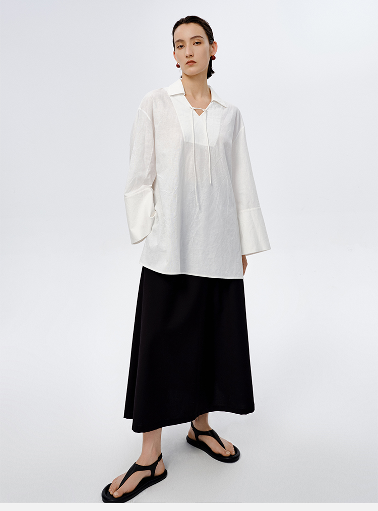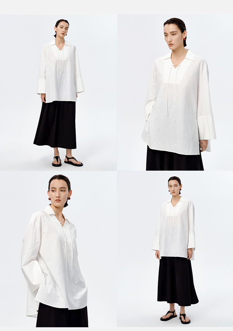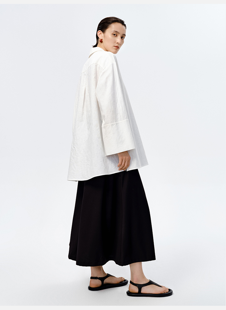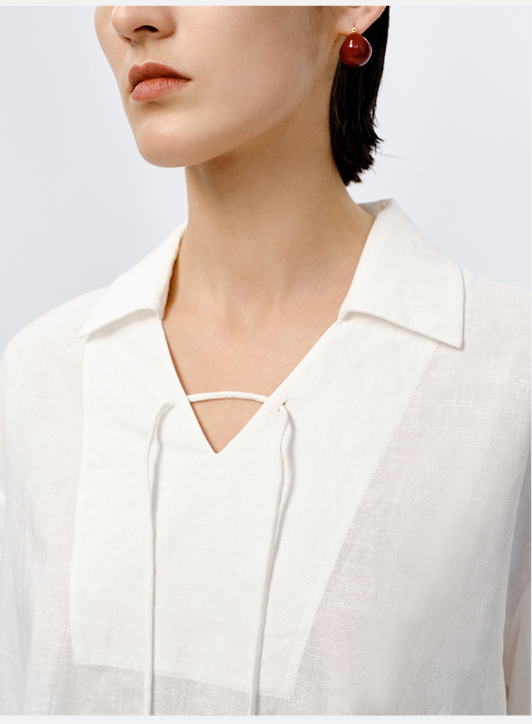 HIDEMI 水洗艺术感亚麻翻领廓形衬衫
