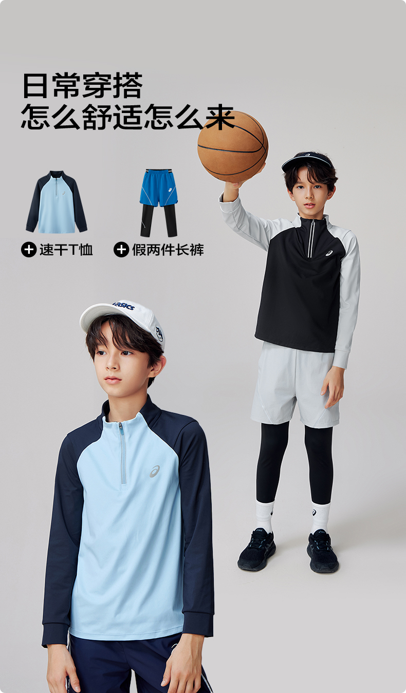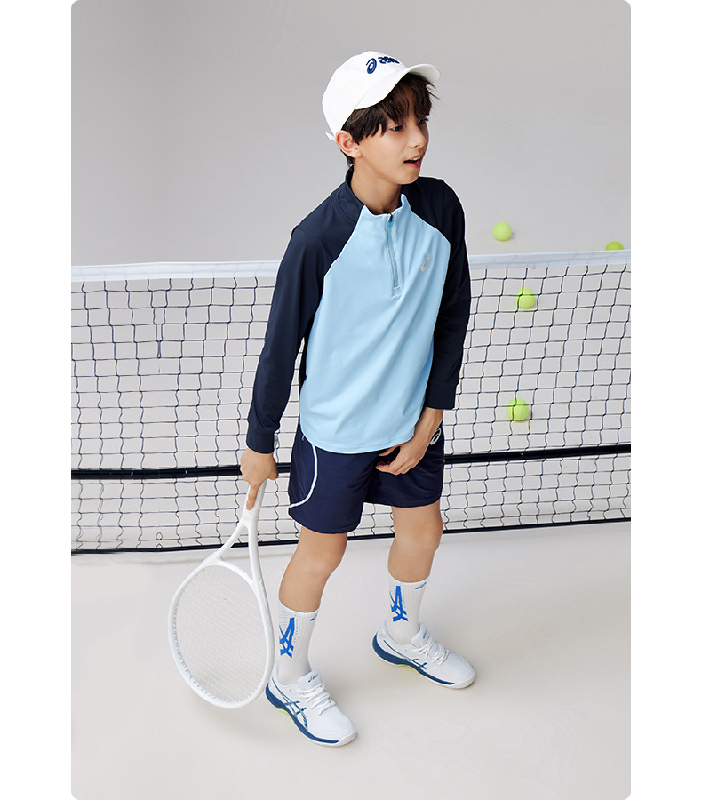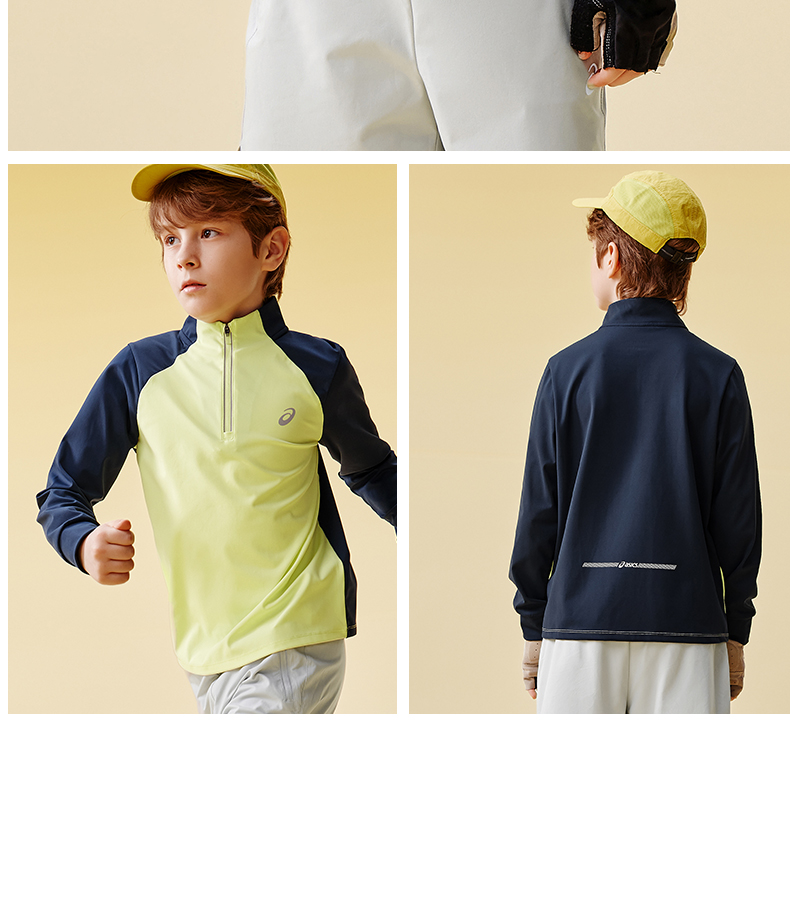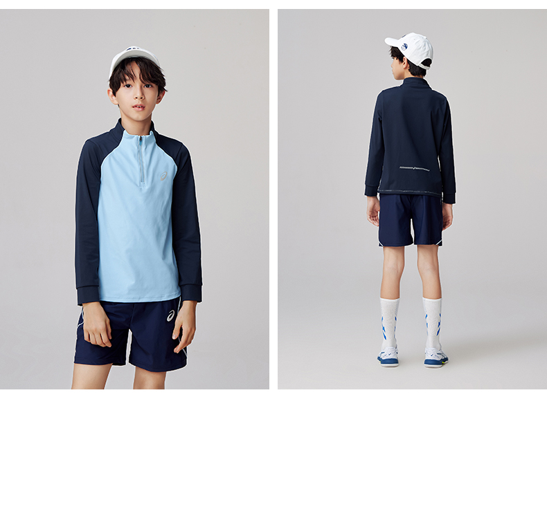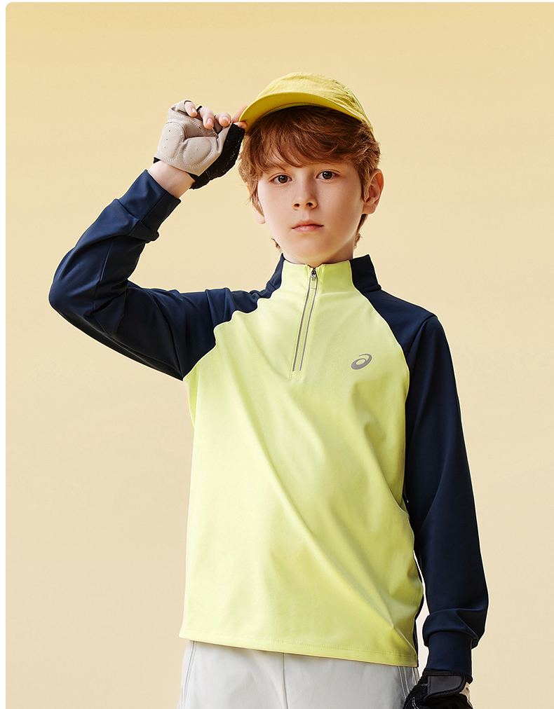 Asics/亚瑟士童装针织拉链T恤吸湿速干运动舒适内搭25年春季新款