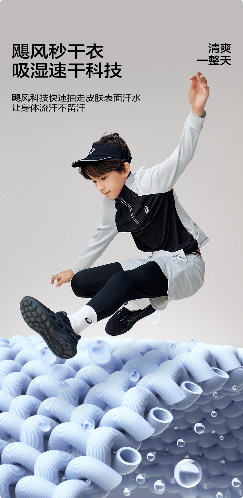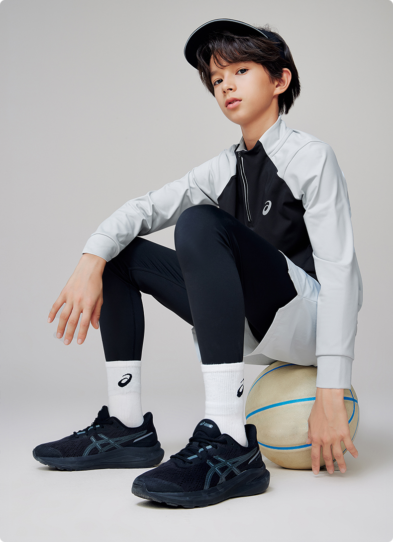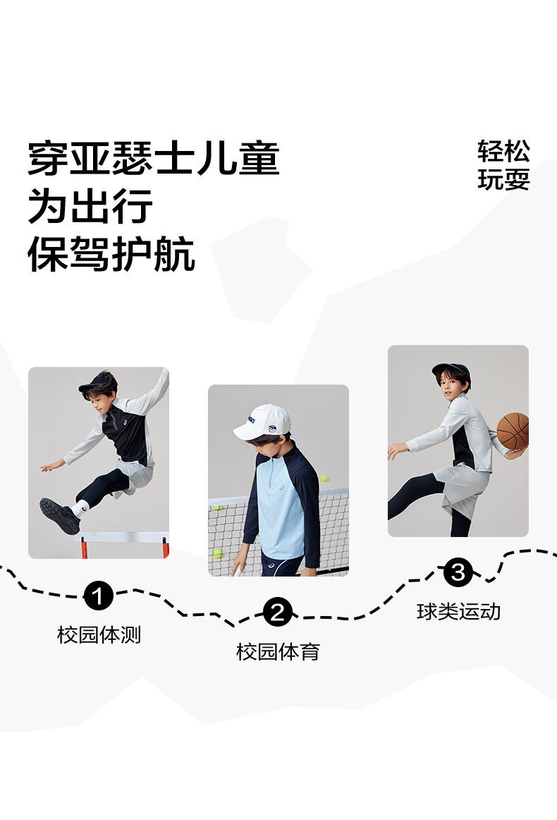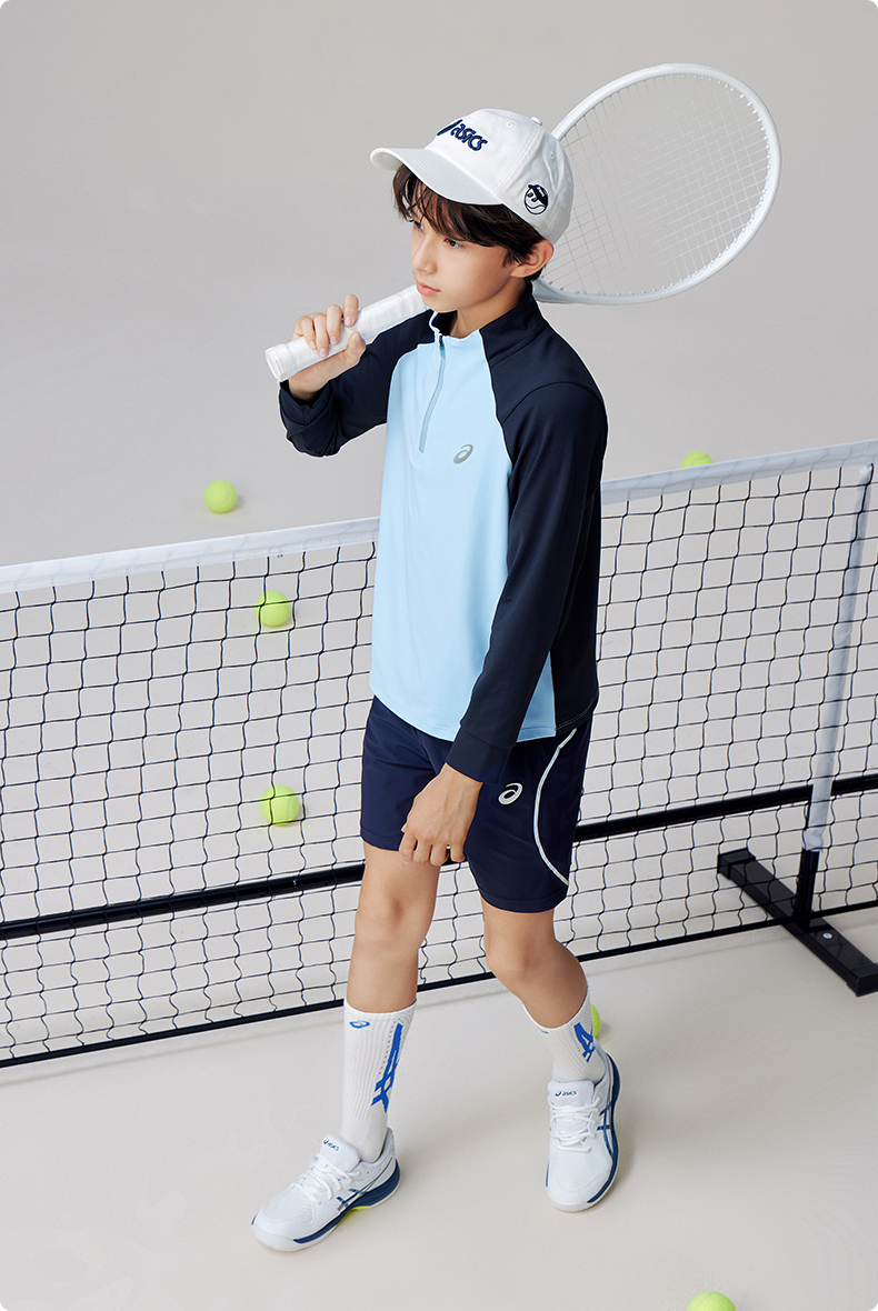 Asics/亚瑟士童装针织拉链T恤吸湿速干运动舒适内搭25年春季新款