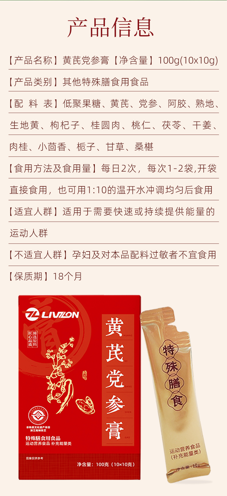 ³ 【丽珠药业黄芪党参膏】黄芪+党参+阿胶+枸杞等 200g/瓶 10袋/盒XN03-SD-LZ