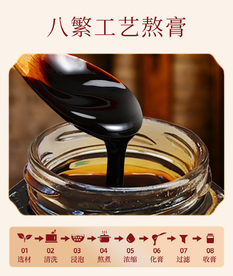 【适用人群】:适用于需要快速或持续提供能量的运动人群成分是黄芪和党参、阿胶、桂圆等15味食药同源的中药材通过中国非遗八繁三段古法炮制而成,黄芪富含多糖类、皂苷、黄酮、甲苷等有效成分,能补气升阳、固表止汗等,党参可健脾益肺、养血生津。此外,膏方中可能还添加了其他知名药材配伍,以保证口感和膏体的稳定性。