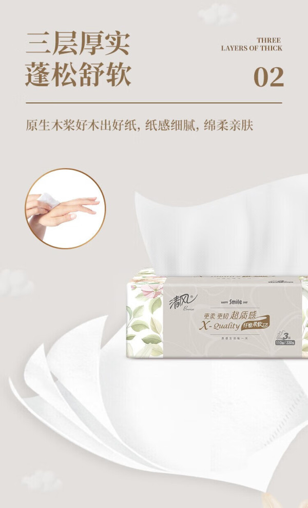 清风 超质感抽纸110抽3包
