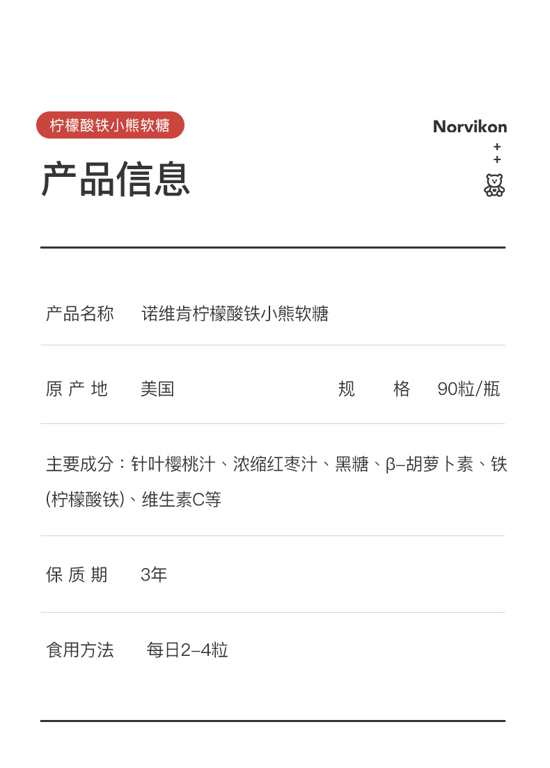 【1颗≈30颗红枣/200颗枸杞❗】【美国补铁神器】 Norvikon诺维肯补铁软糖