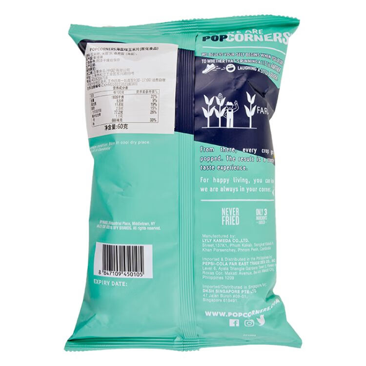 哔啵脆(POPCORNERS) 海盐味玉米片60g/袋