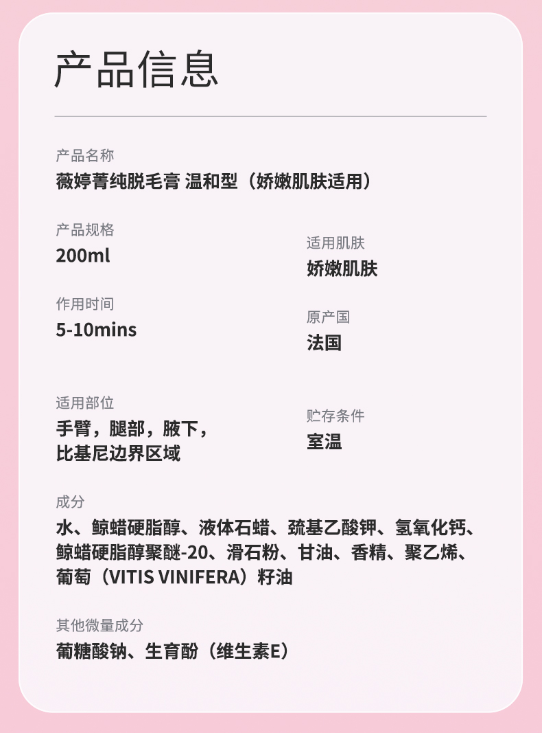 薇婷菁纯脱毛膏温和型(娇嫩肌肤适用)50ml/100ml
