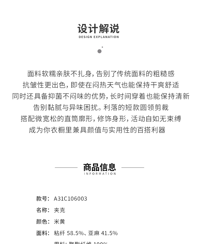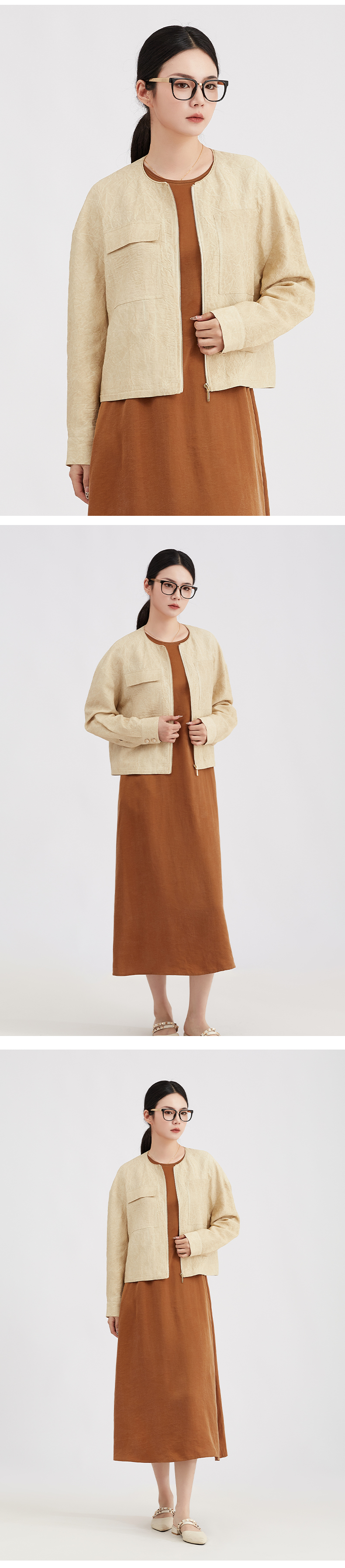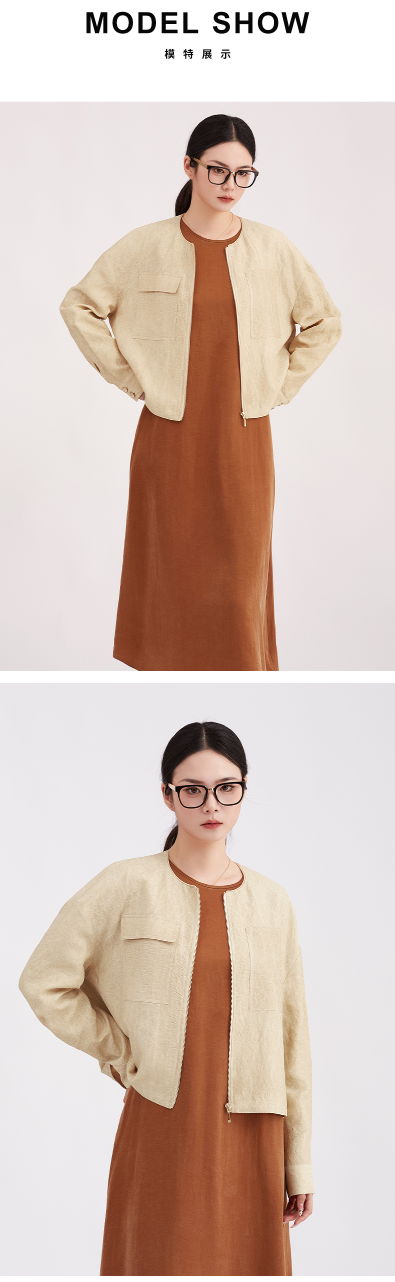 【商场同款】阿菁娜春季新款老钱风亚麻纹理感圆领短款外套A31C106003