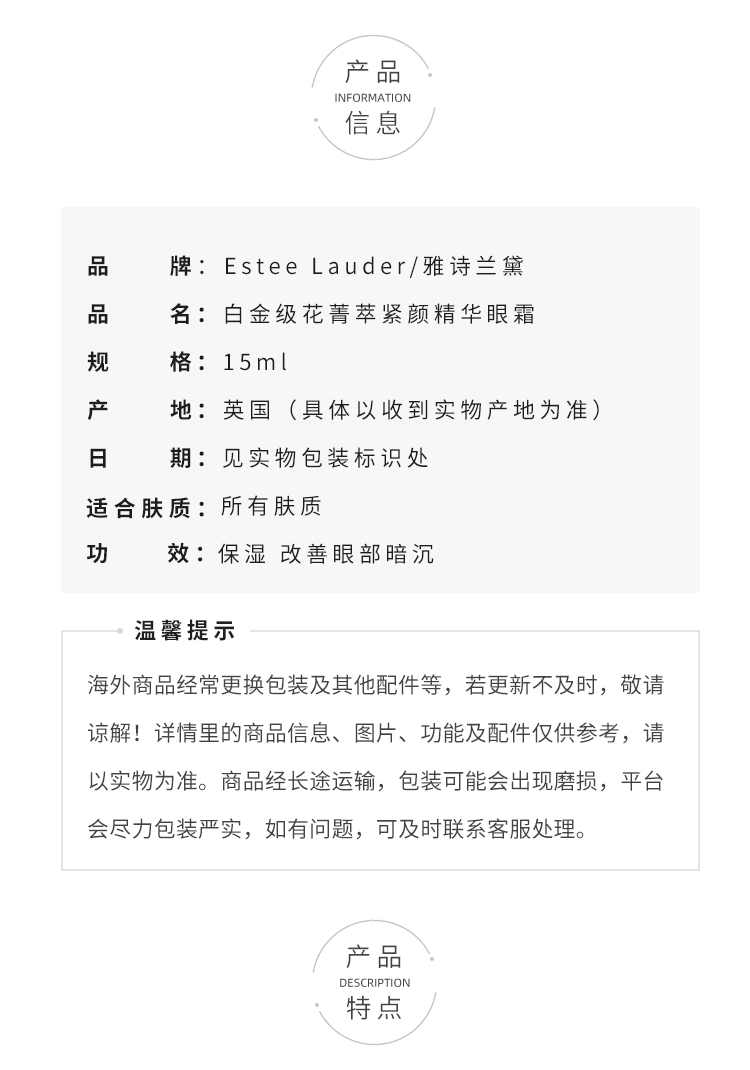 雅诗兰黛白金级紧颜眼霜15ml 轻盈型/滋润型 保湿紧致提眼角