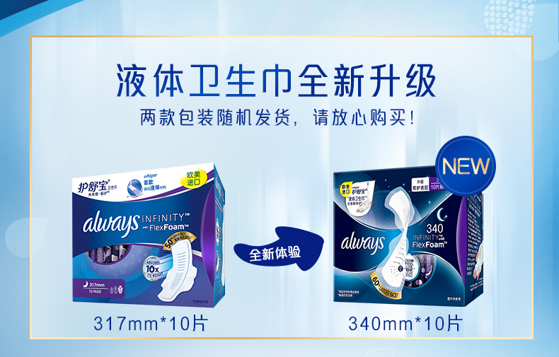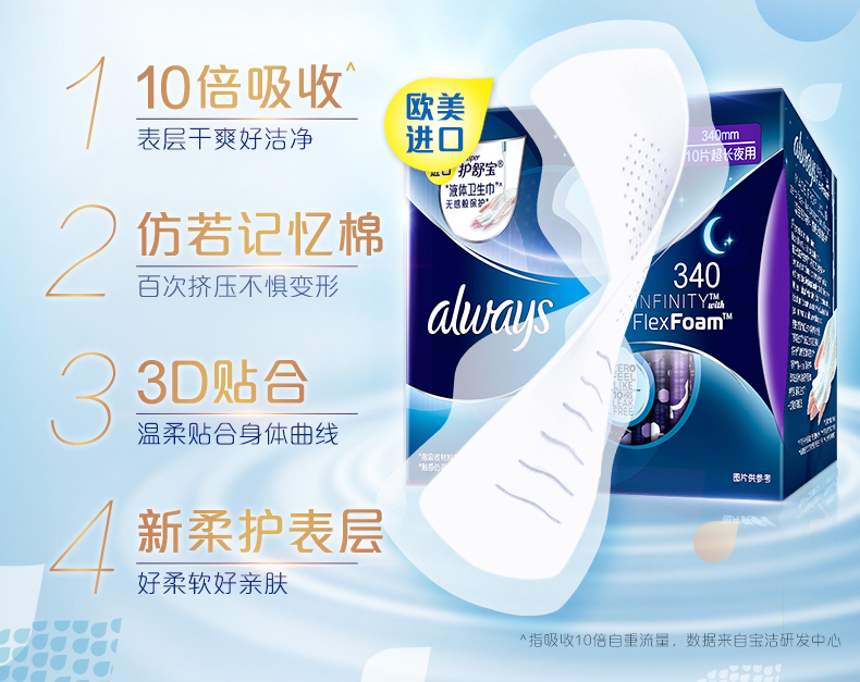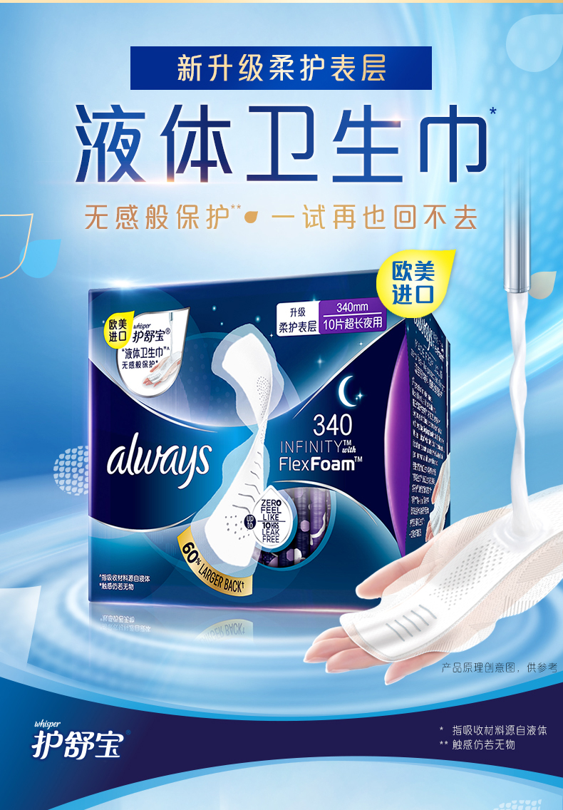 护舒宝未来感极护液体卫生巾夜用340MM10片(BJ)