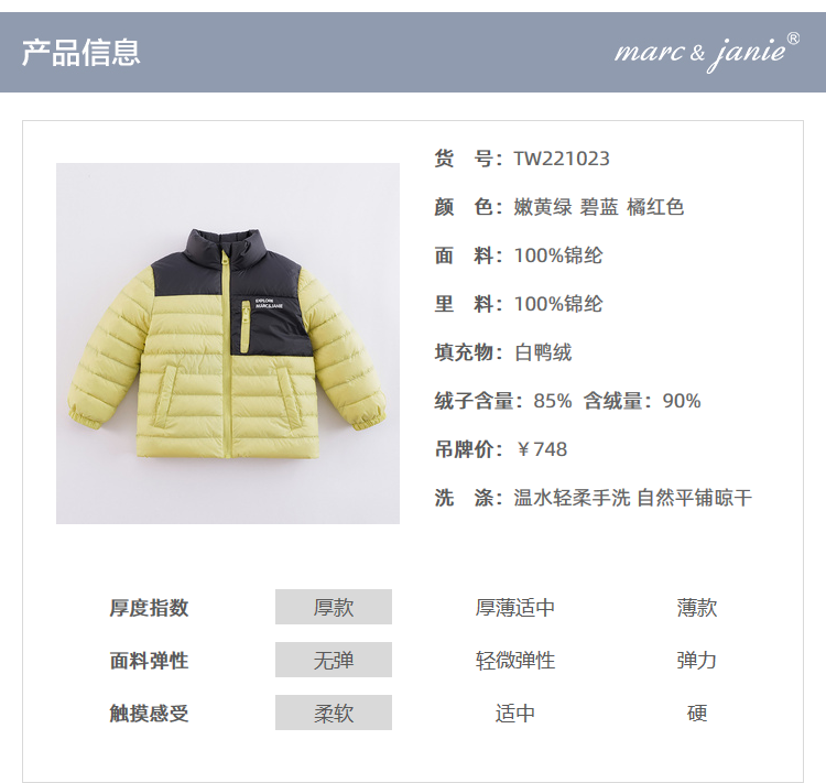 【三防】马克珍妮冬装新款 男童石墨烯蓄热保暖羽绒服221023
