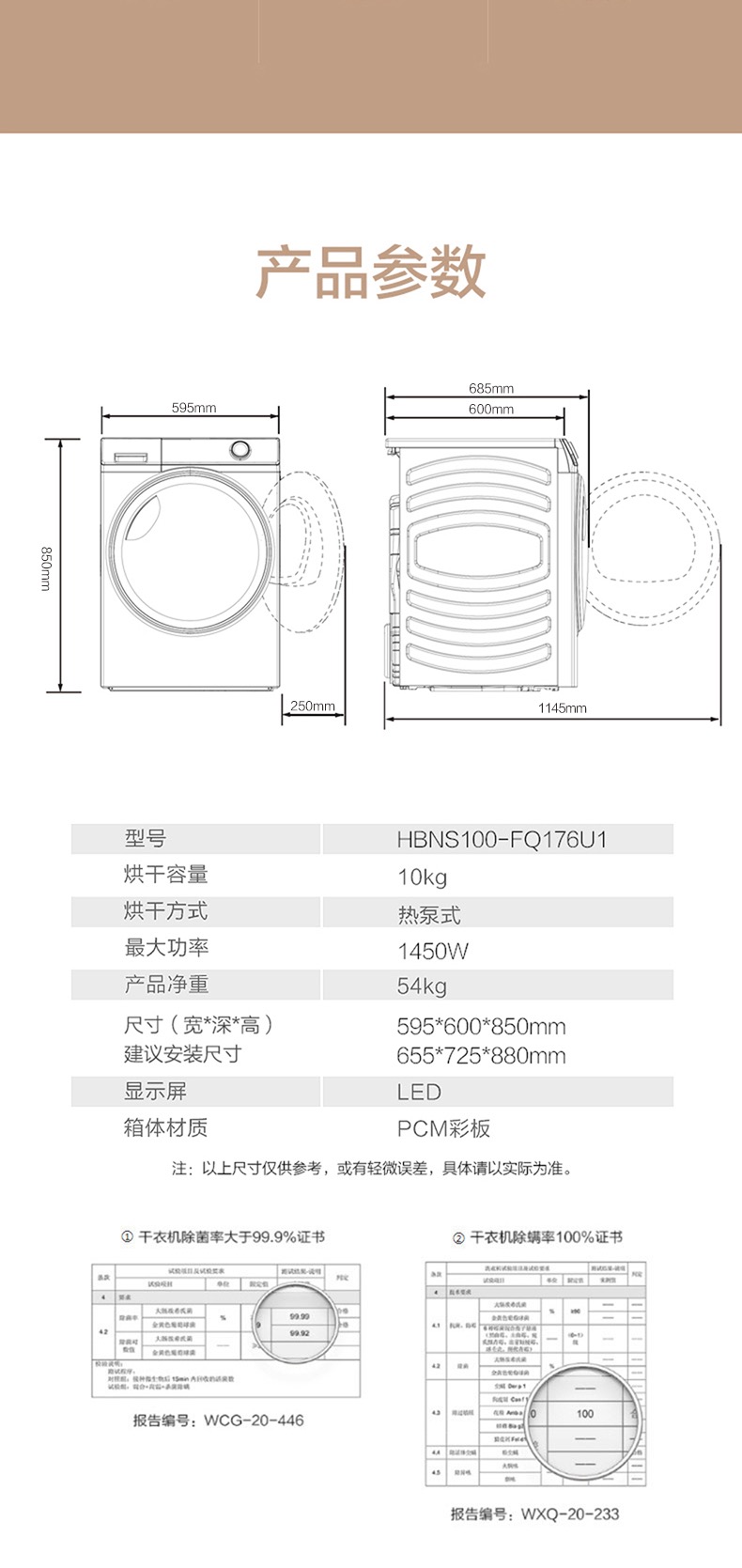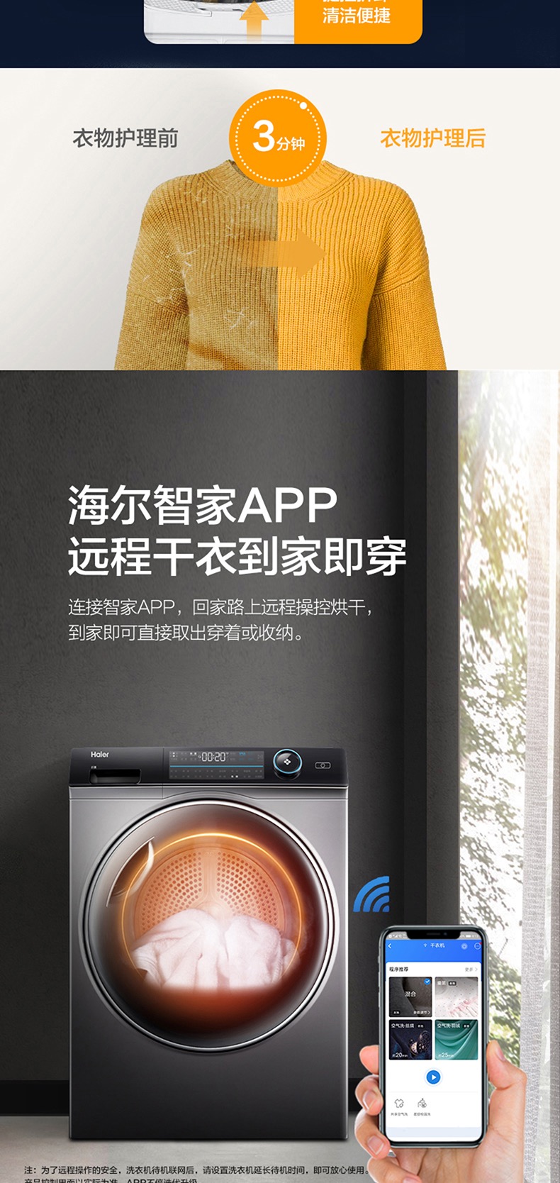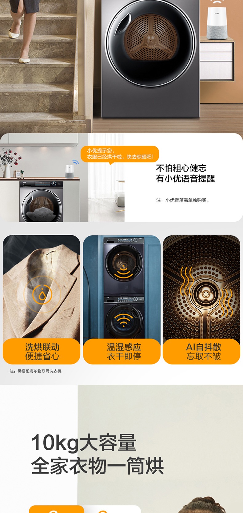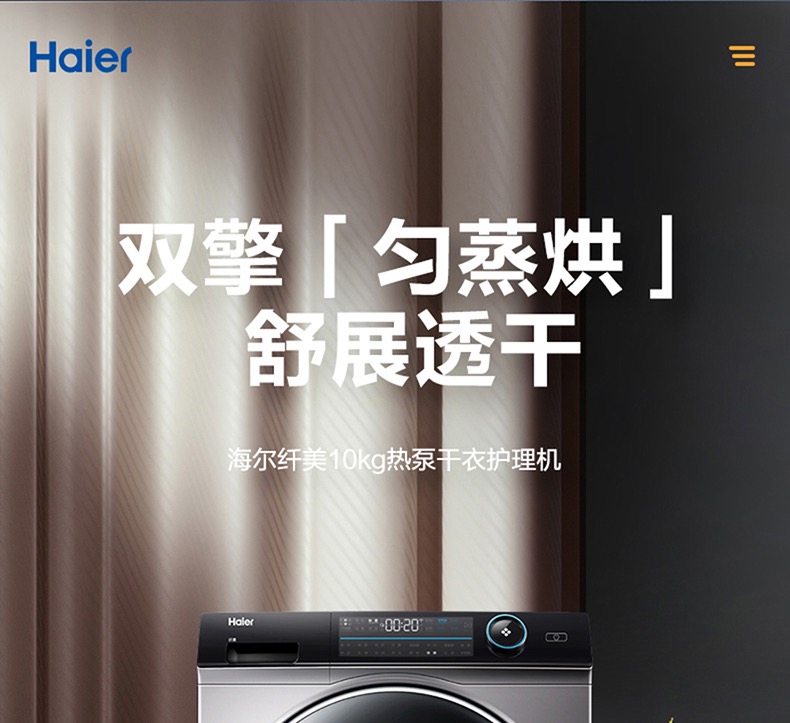 海尔纤美热泵干衣机(10kg)HBNS100-FQ176U1【包邮直发】