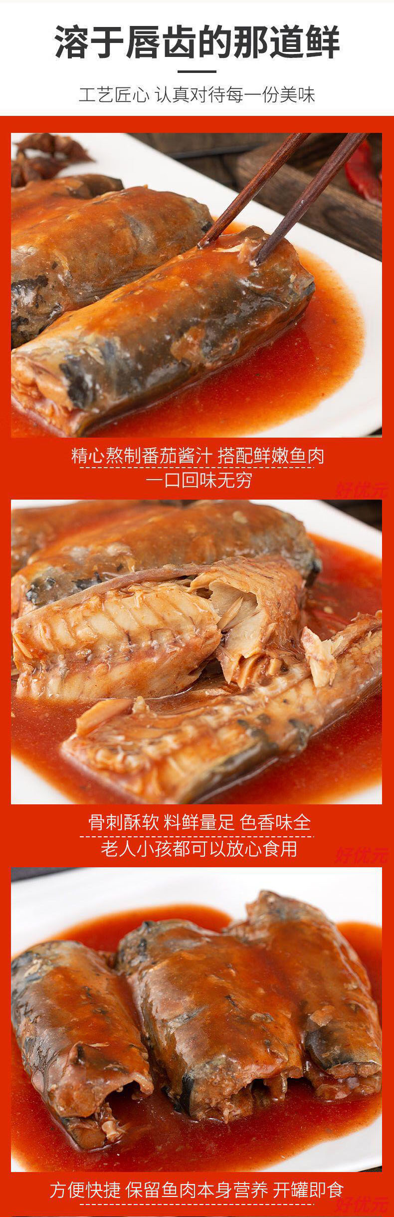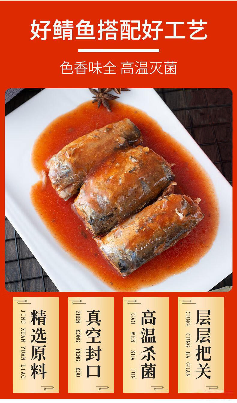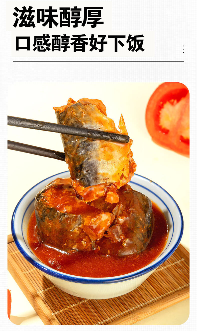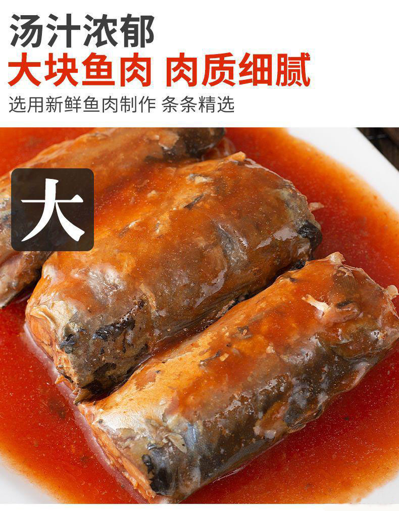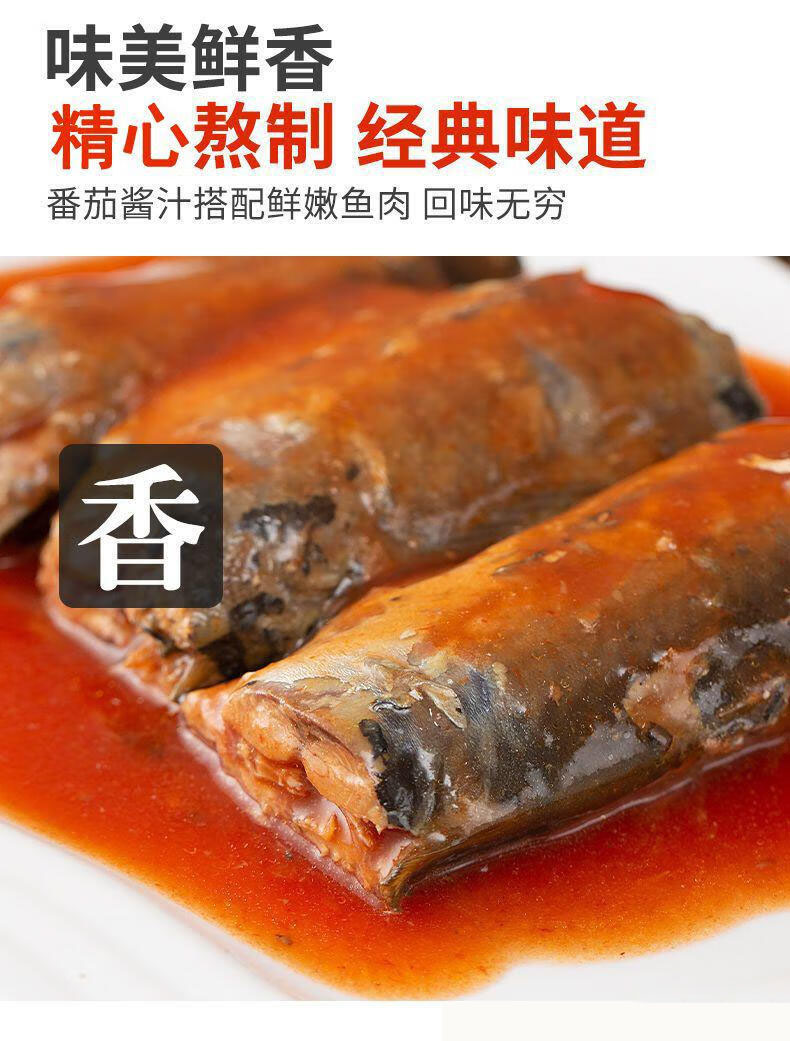 茄汁鲭鱼罐头,18罐组合,番茄酱汁搭配鲜美鱼肉,传统工艺,精心熬制,骨刺酥软,鱼肉紧实,肉质肥美,老人小孩都可以食用,滋味醇香好下饭M