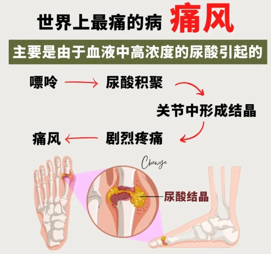 导致体内的尿酸猛涨,痛风来势汹汹