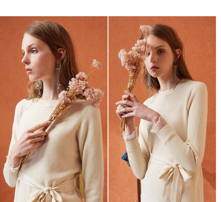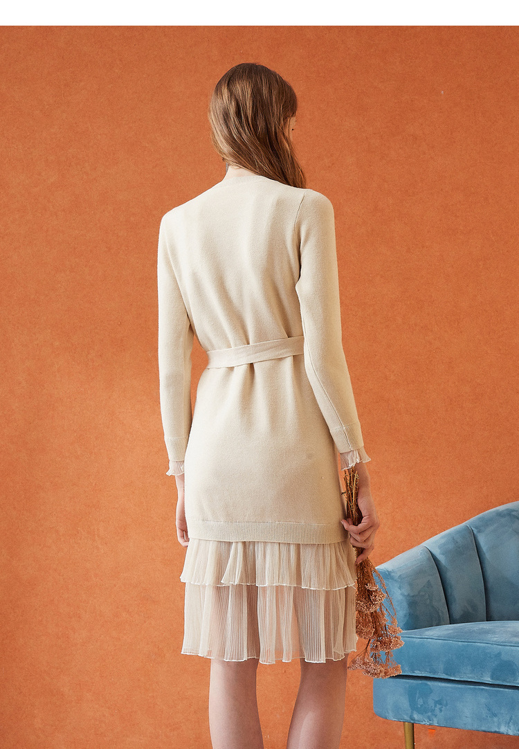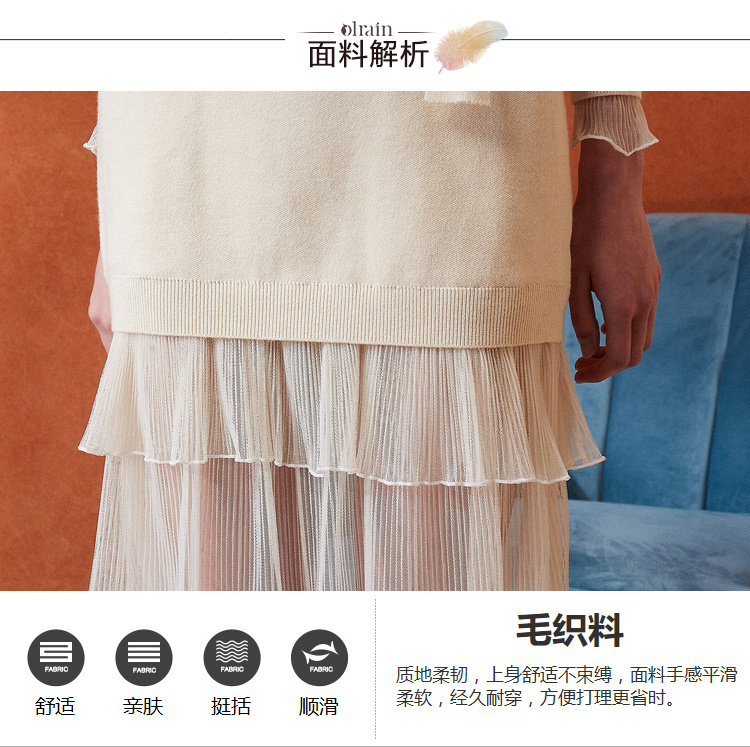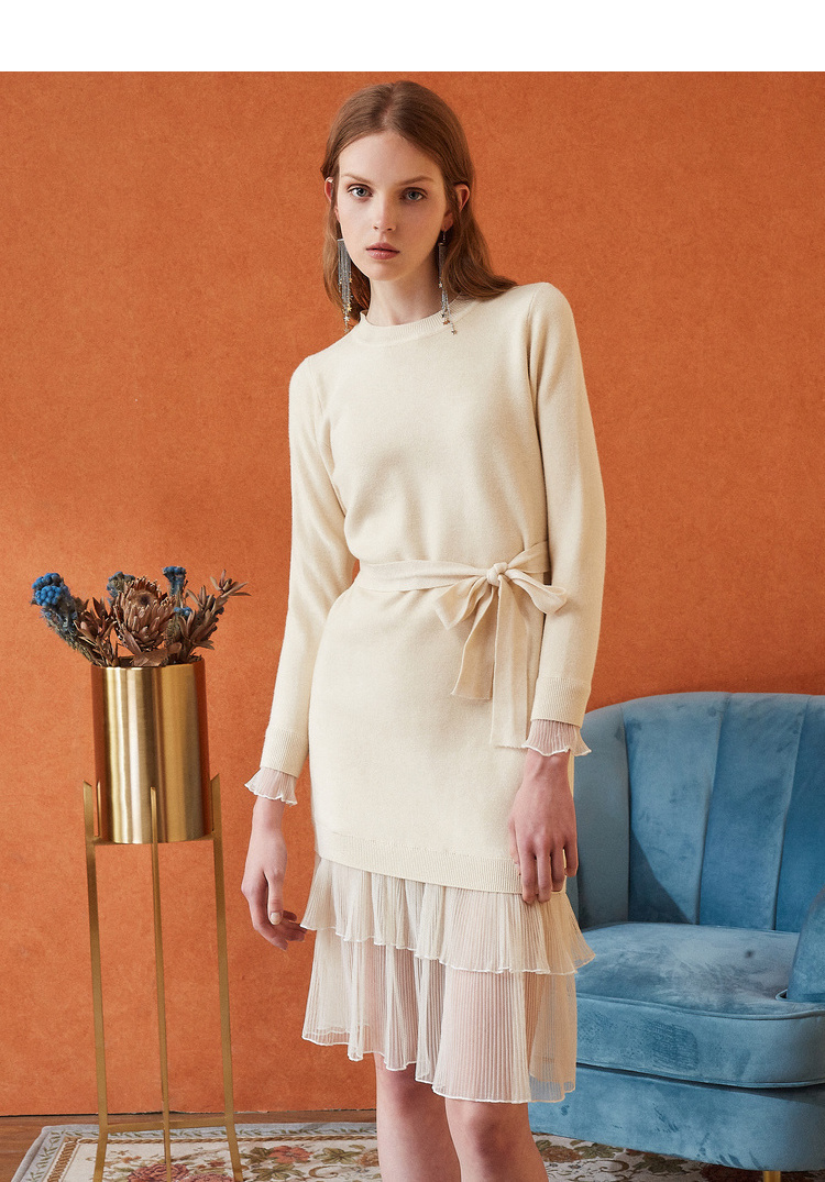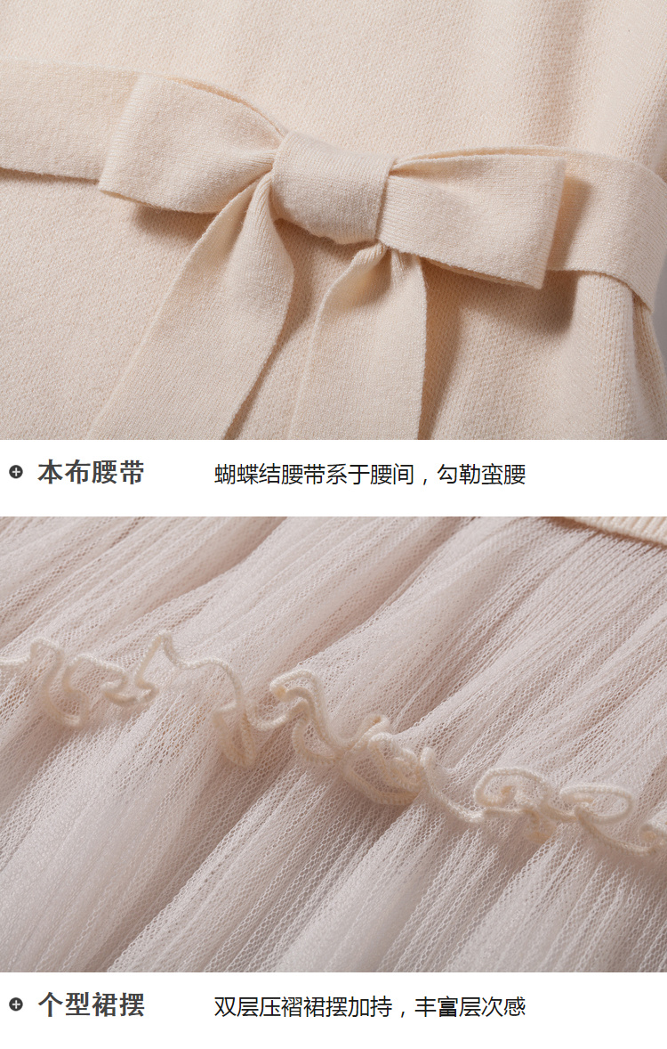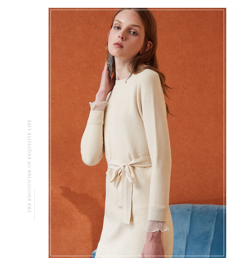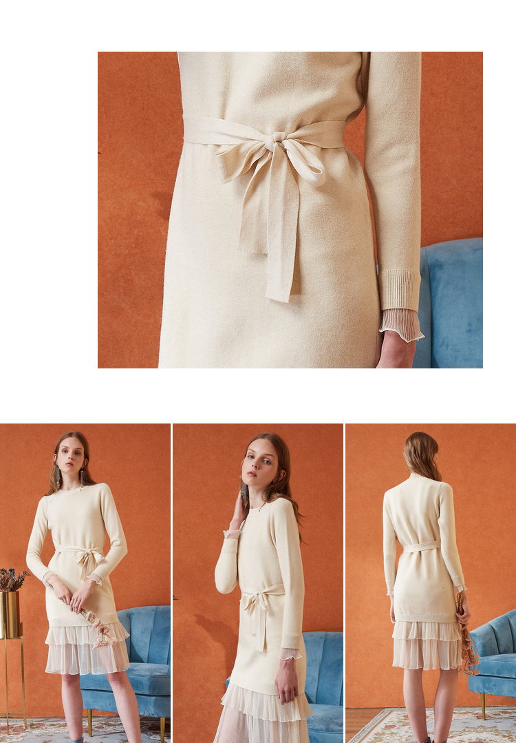 欧芮儿女秋装2018拼接荷叶边收腰毛衣针织连衣裙女中长