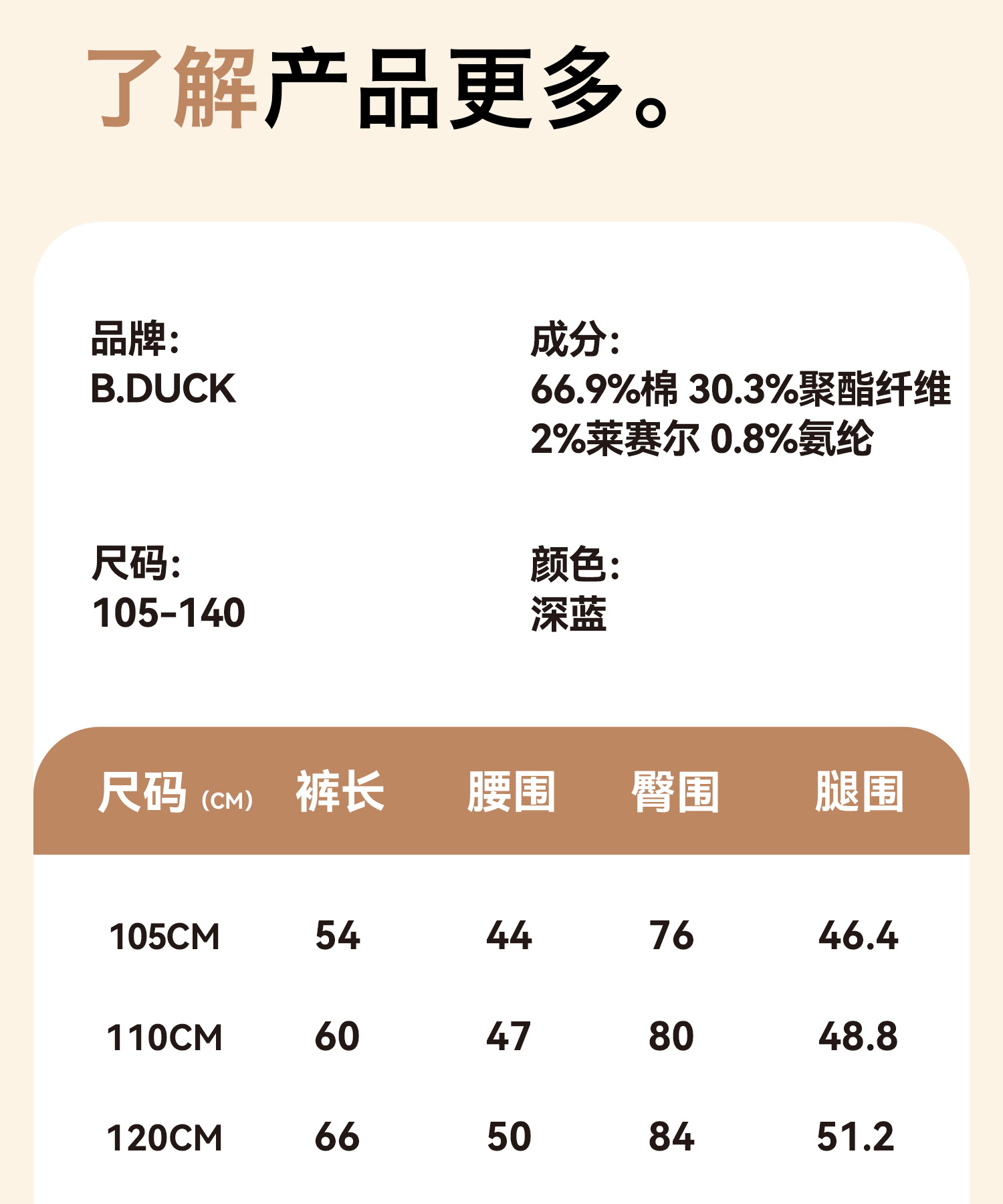 【防褪色】B.Duck小黄鸭童装春秋休闲牛仔裤105-140 BF3656001