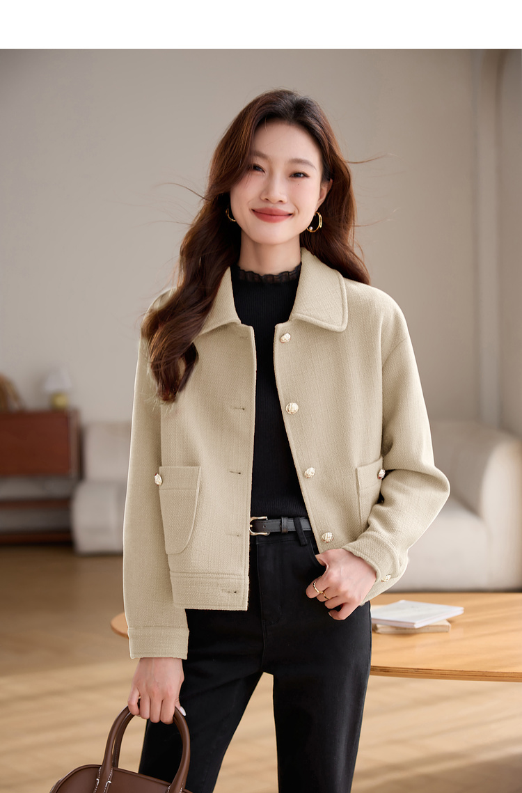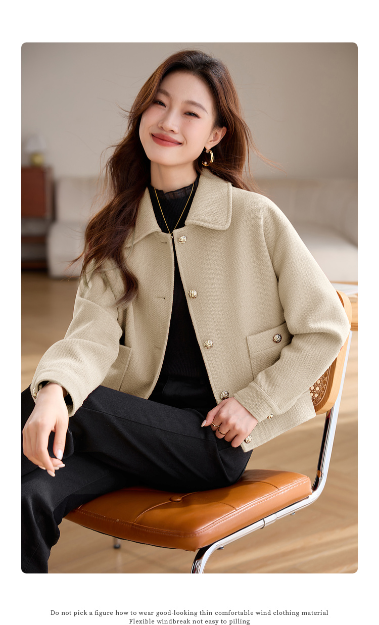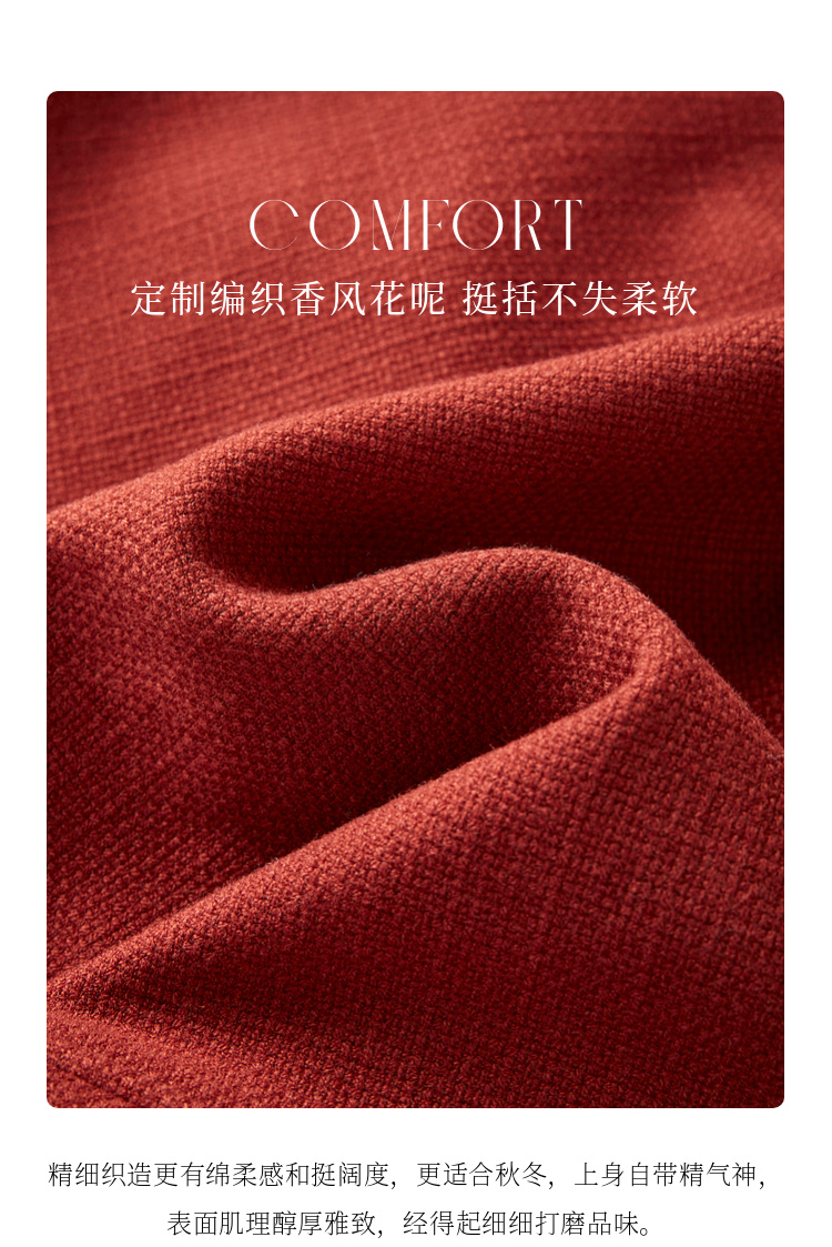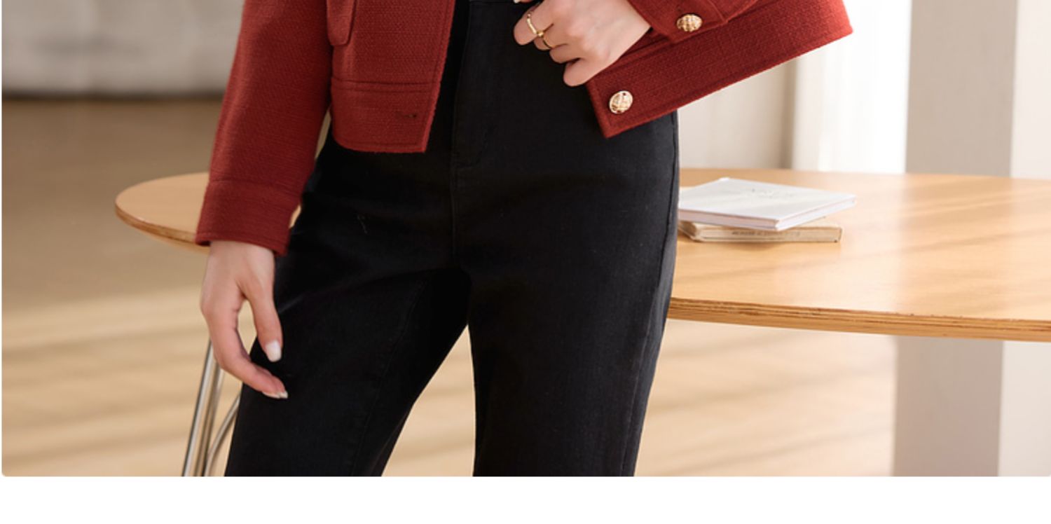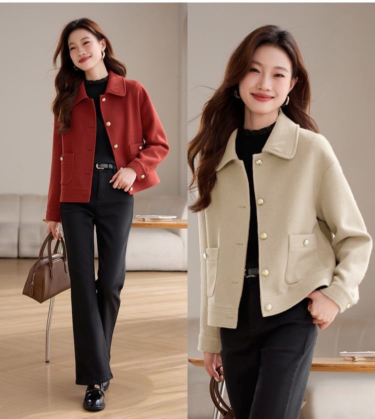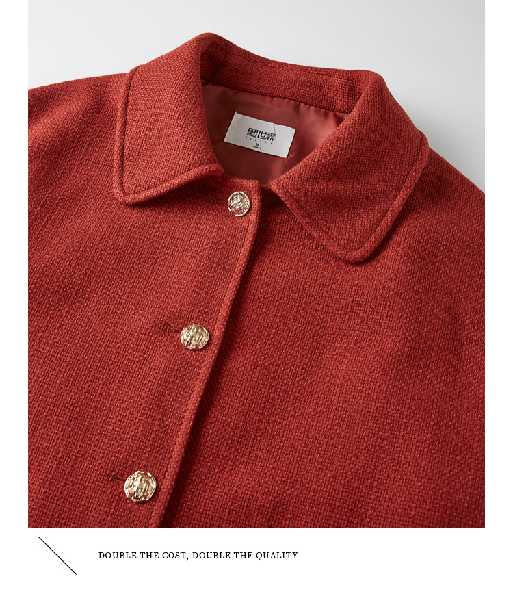 【年货节】熙世界复古红色小香风毛呢外套女秋冬法式气质粗花呢夹克短款上衣