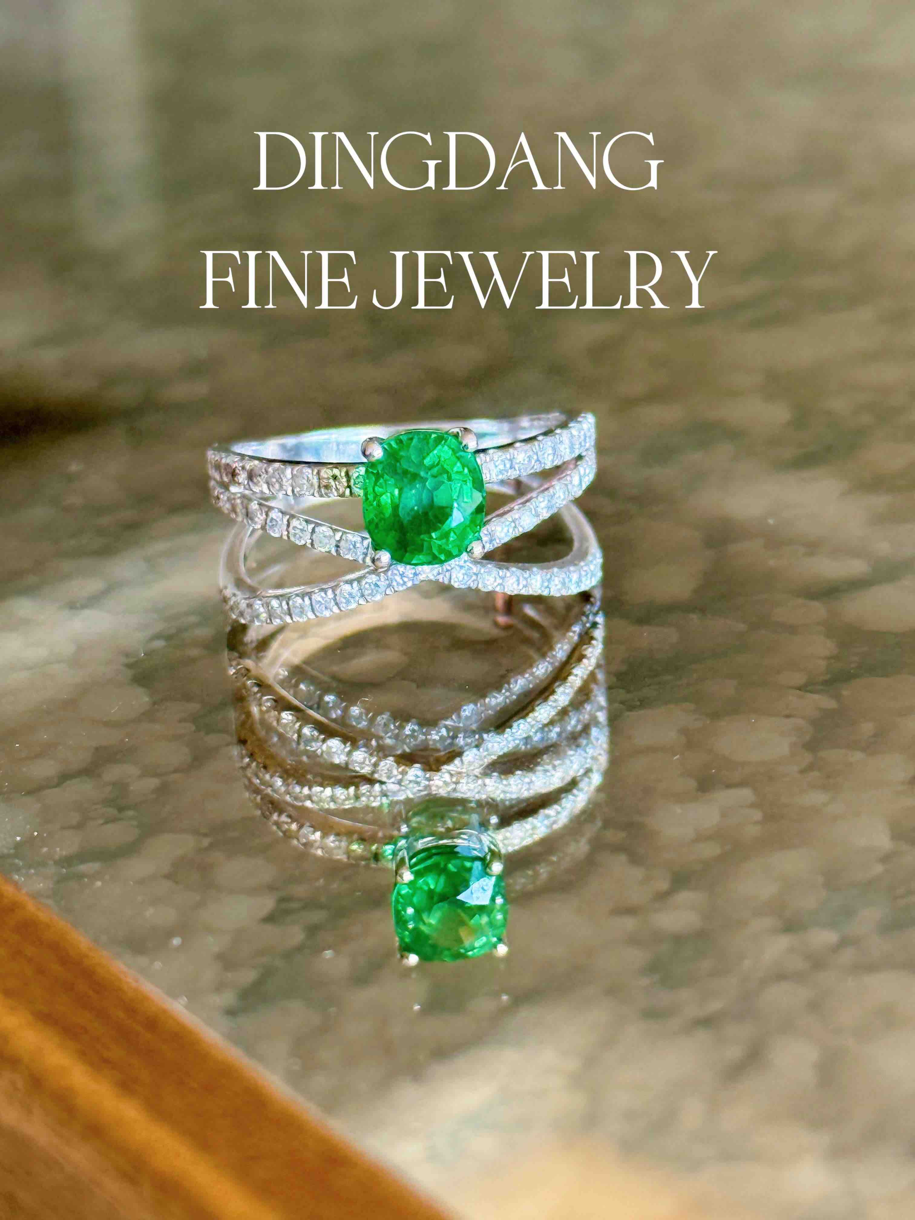 沙弗莱 阿鲁沙翠绿 1.34ct 皇冠交叉设计款式 戒指