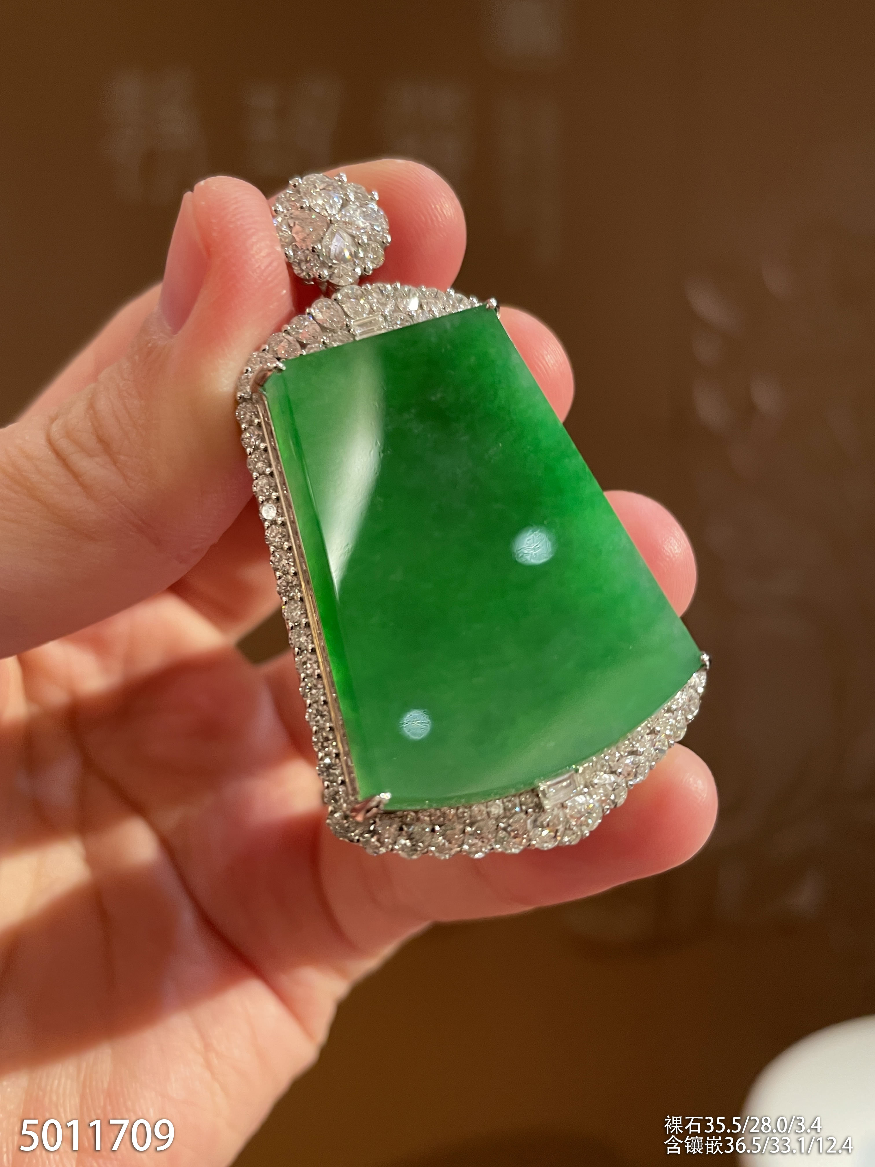 冰艳绿无事牌吊坠【5011709】具体价格微信咨询