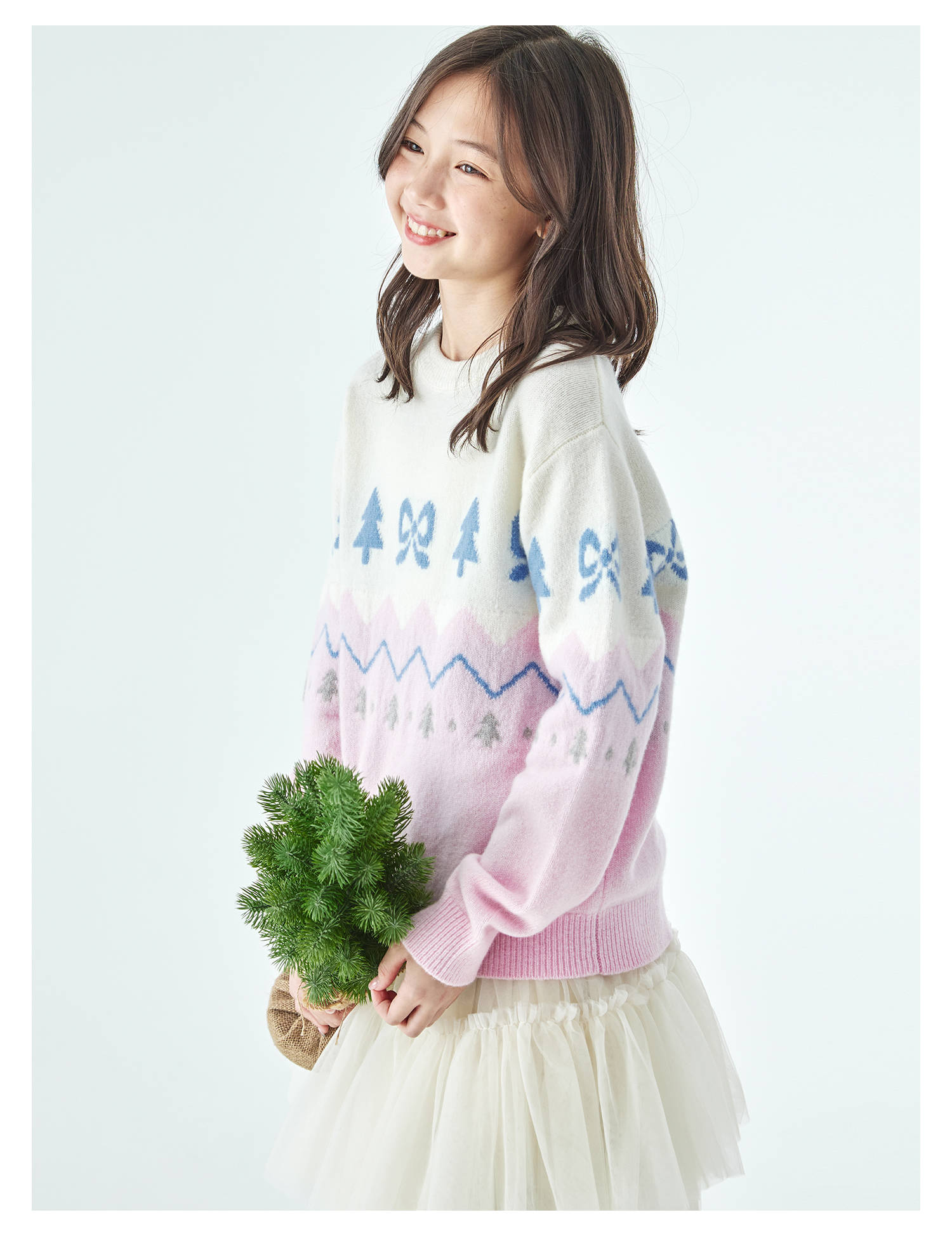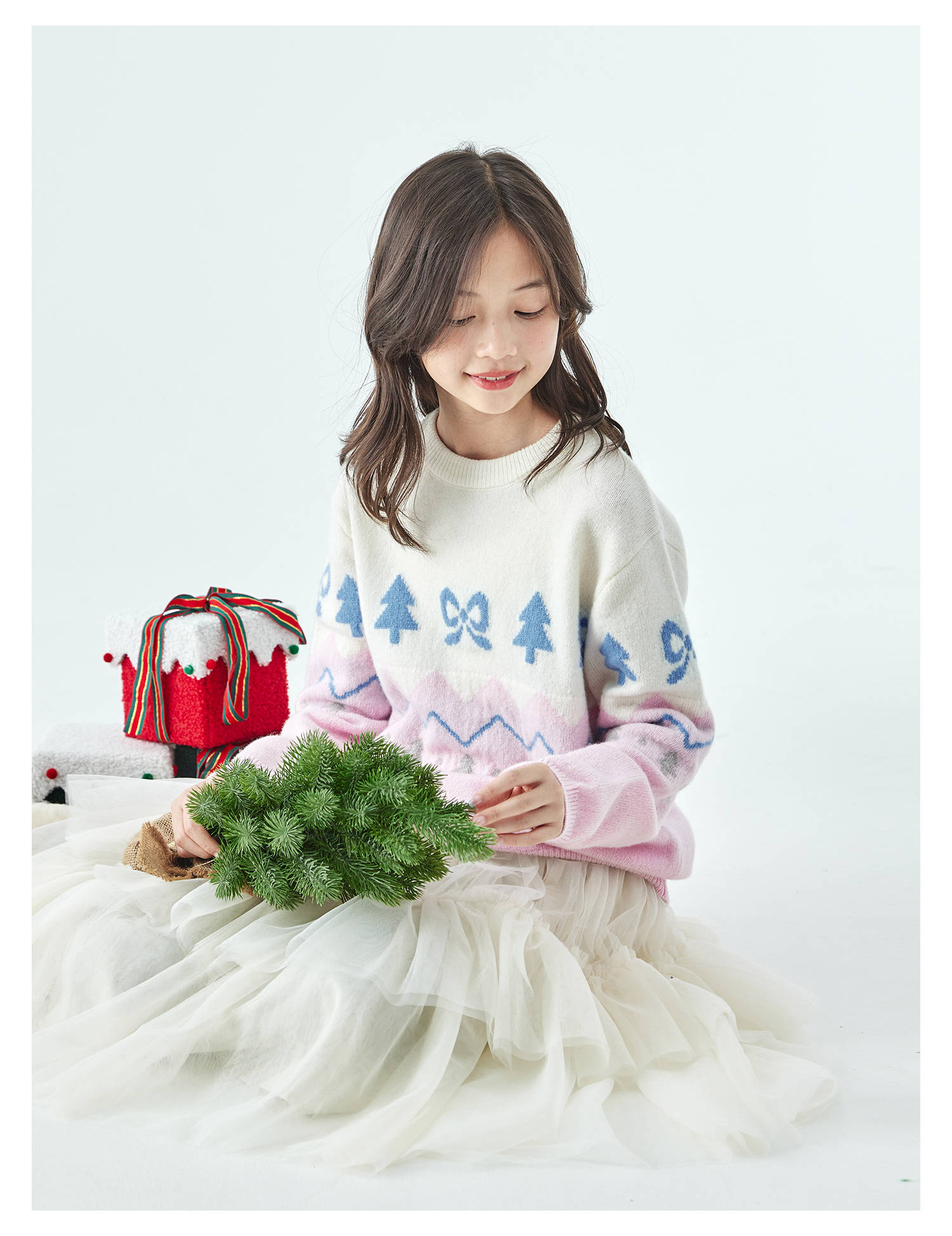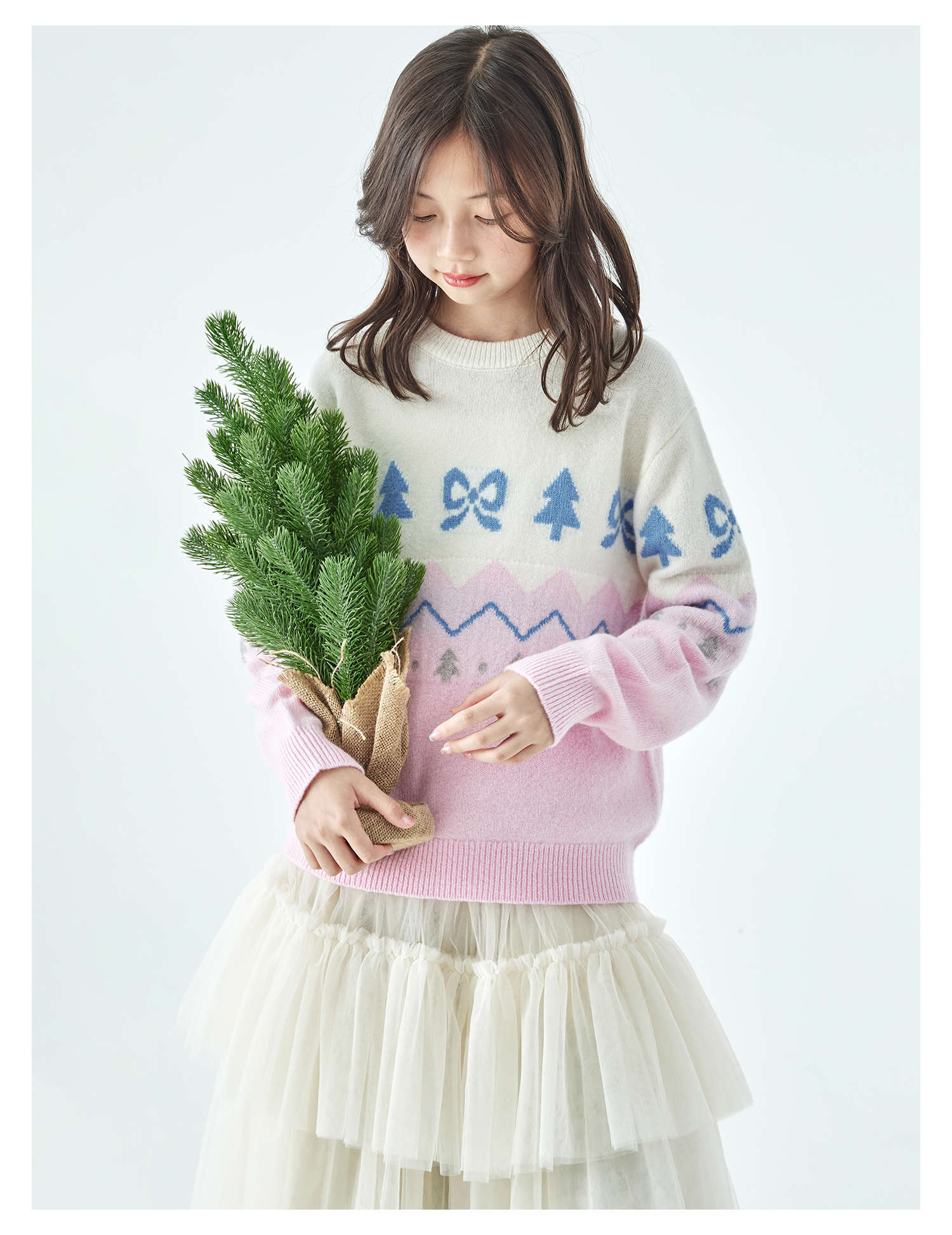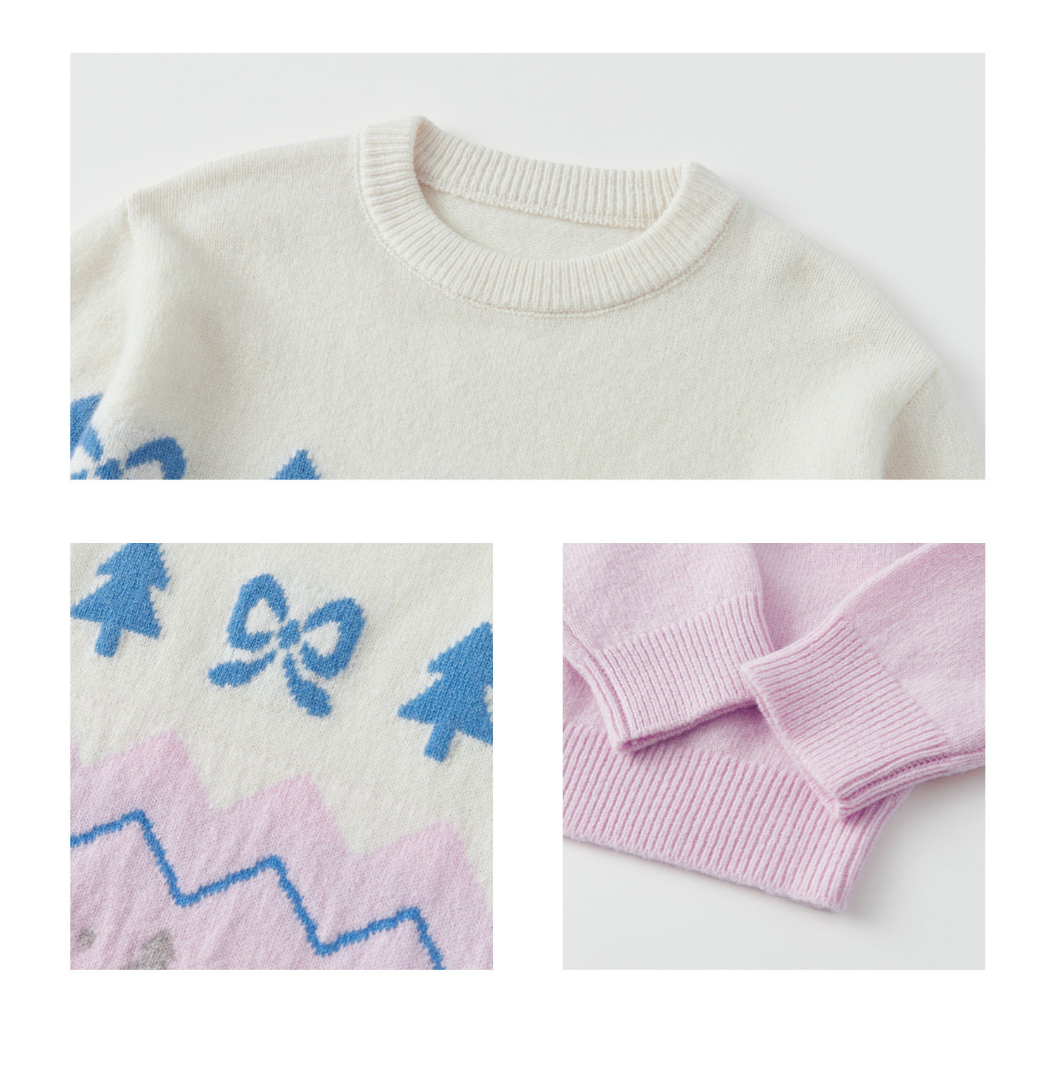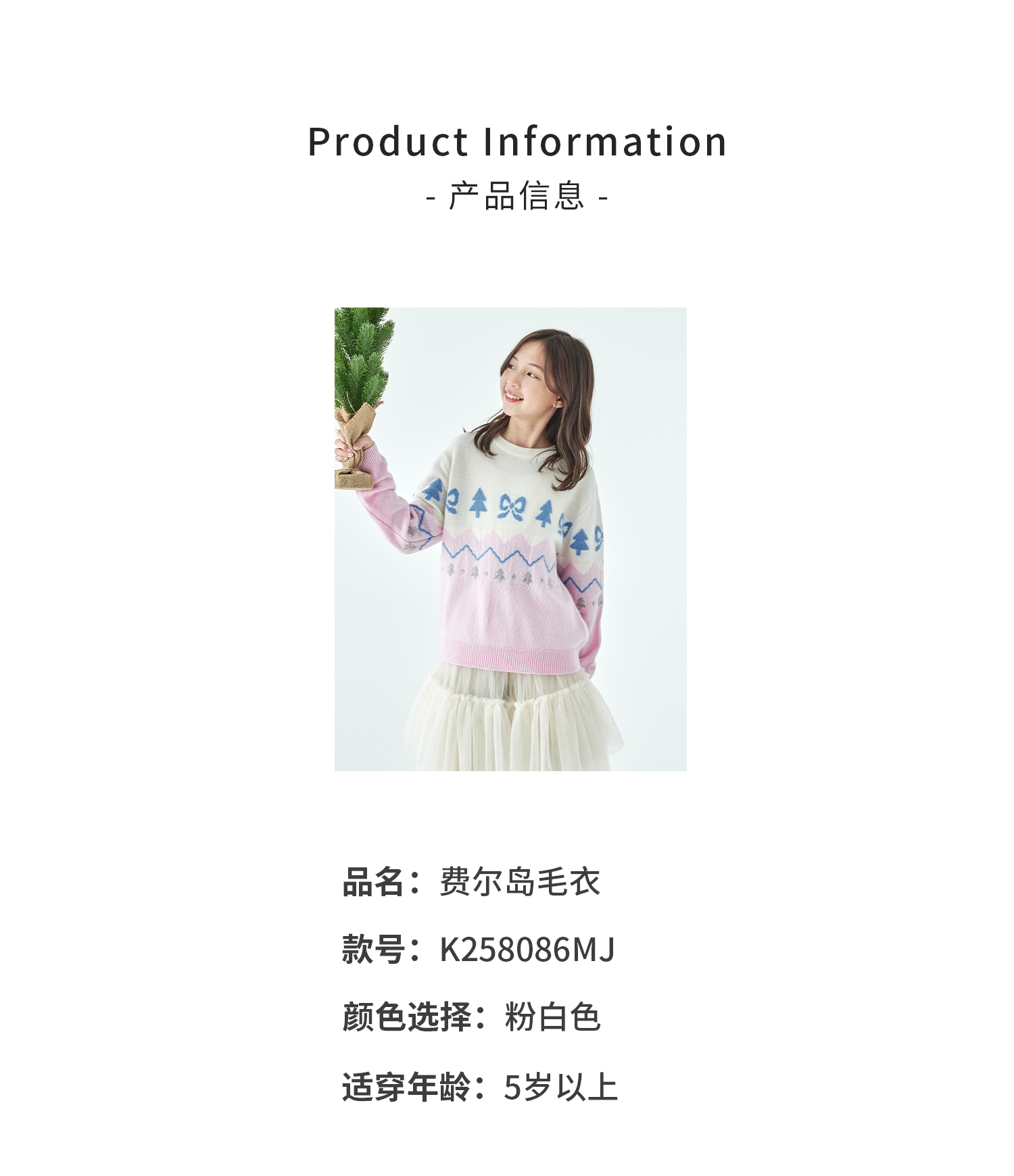 棵初2025年冬季新款亲子中大女童费尔岛几何花纹毛衣纯绵羊毛上衣