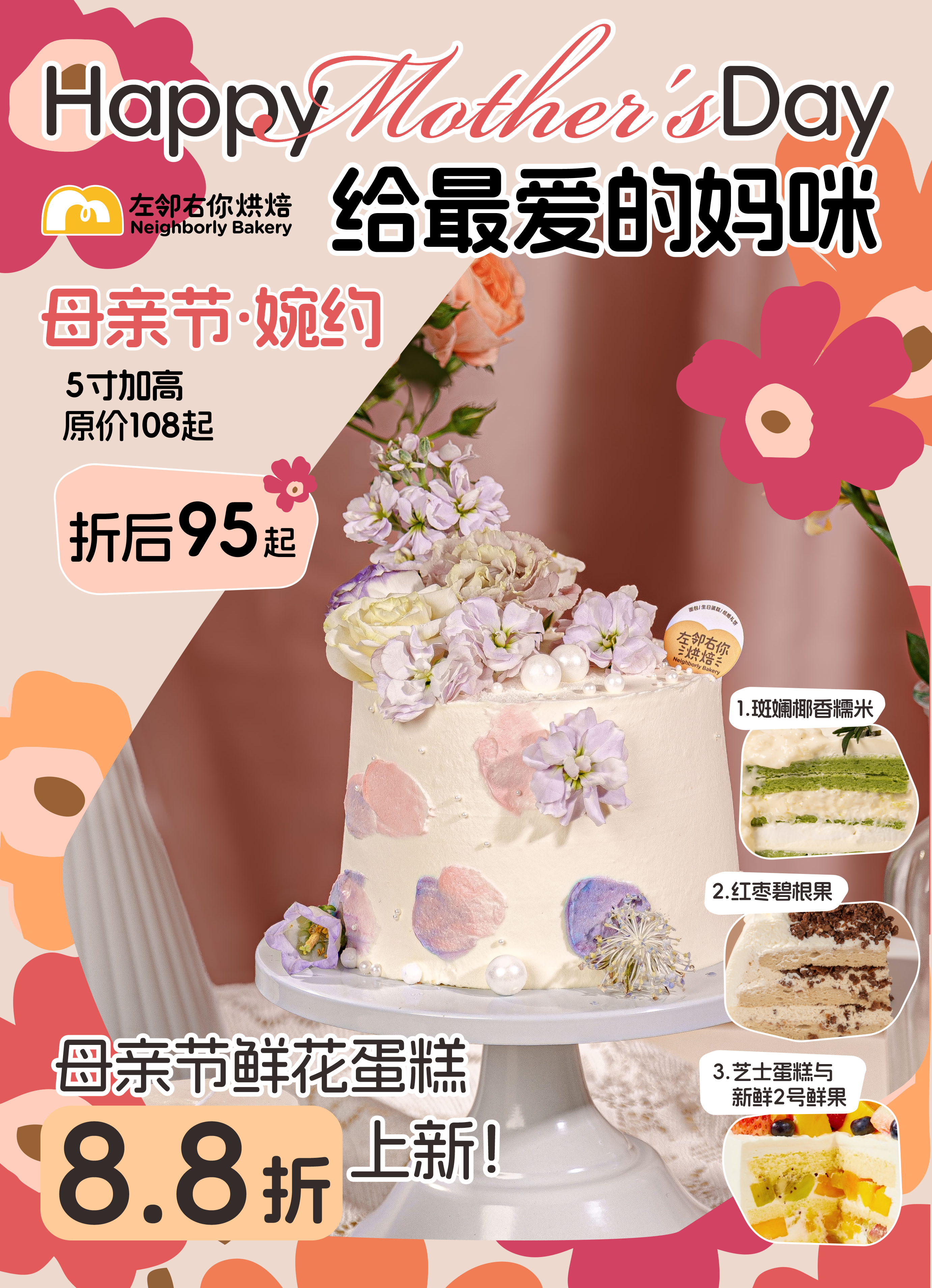【下架勿动】母亲节·婉约 3种口味 鲜花蛋糕