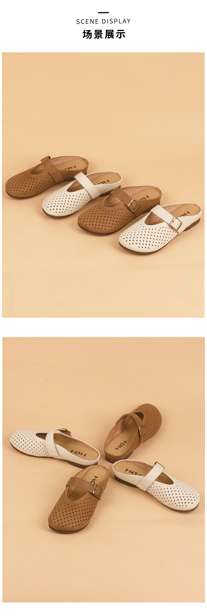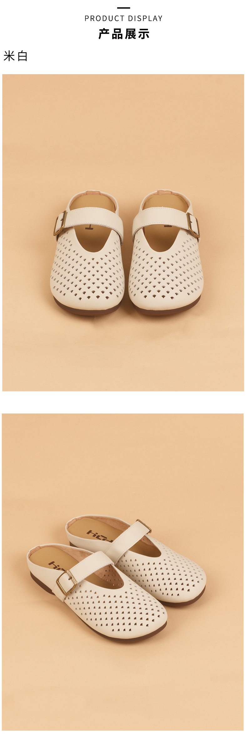 和诚行2026夏季新款法式包头半拖镂空洞洞鞋一字扣带女式拖鞋1930128