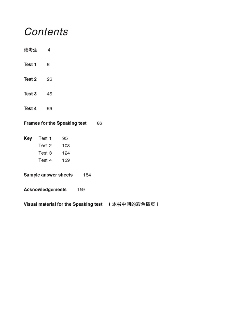 《剑桥通用五级考试PET官方真题4》是剑桥通用五级考试PET考试(Cambridge English: Preliminary或Preliminary English Test [PET])的官方真题集,这是第四辑,包含以下内容: