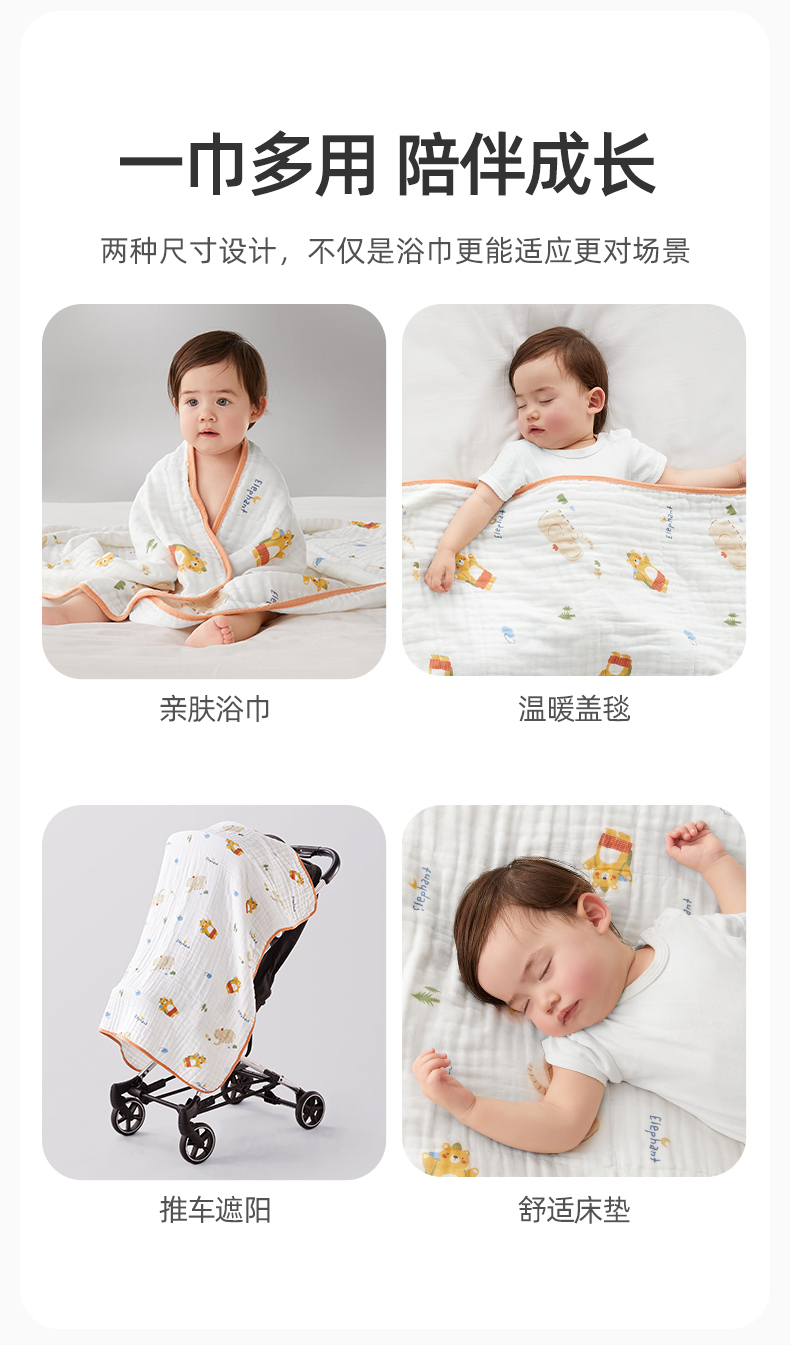 婴儿纯棉浴巾宝宝盖毯 赠【全棉方巾3条】