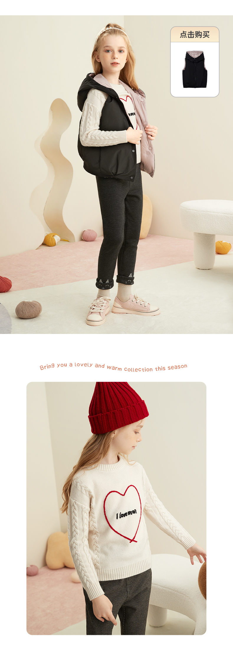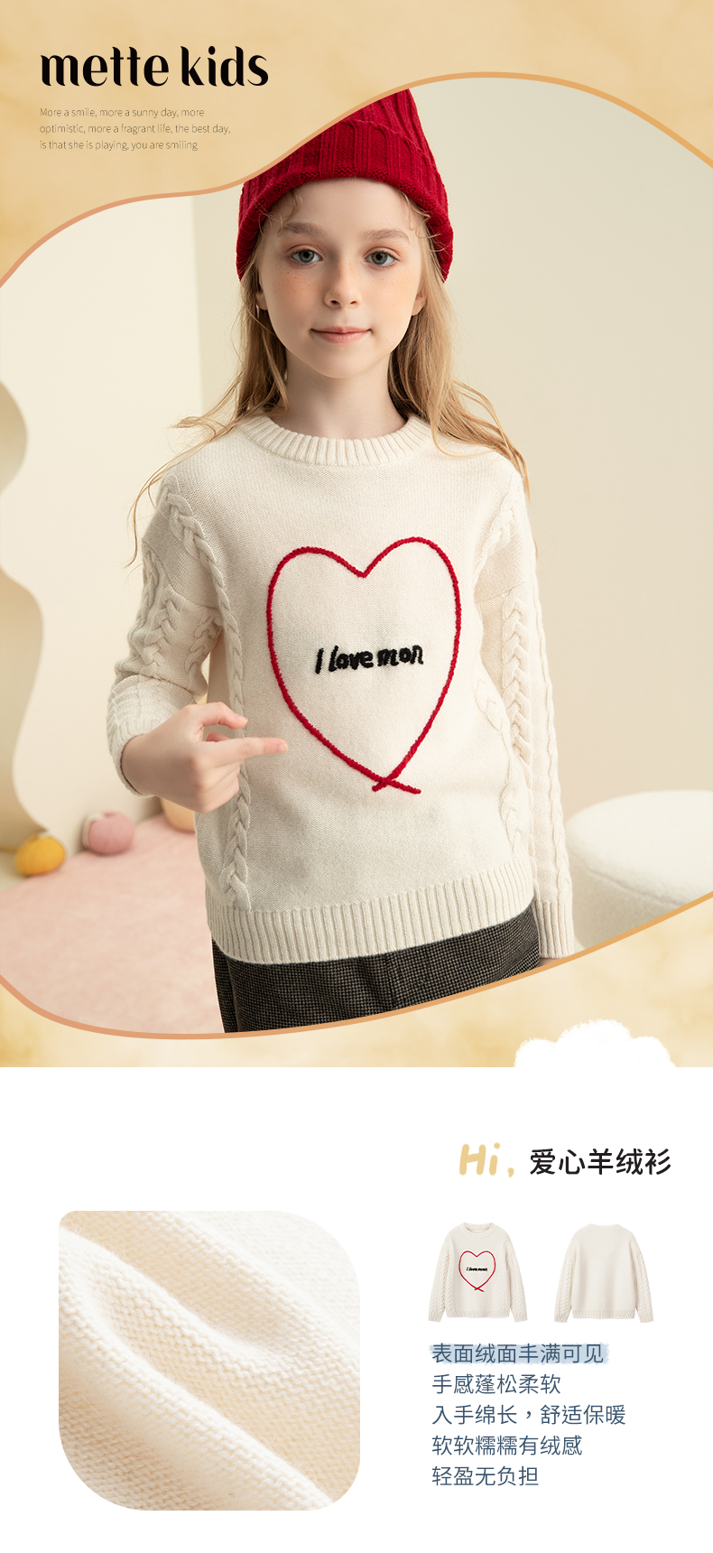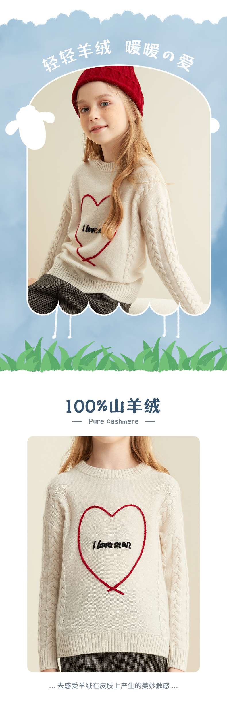 【爱心绞花童装羊绒套衫】羊绒世家童装100%山羊绒内搭加厚保暖针织毛衣