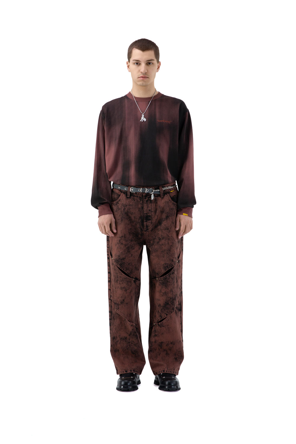 RANDOMEVENT(RDET) 21SS3467BRN 仿旧洗水镂空长袖T恤