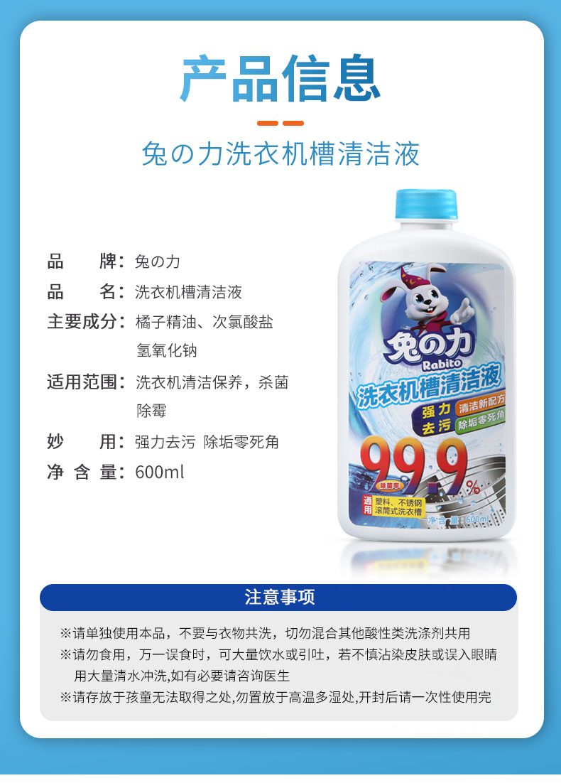 兔之力洗衣机槽清洁液600ml(买一得二)
